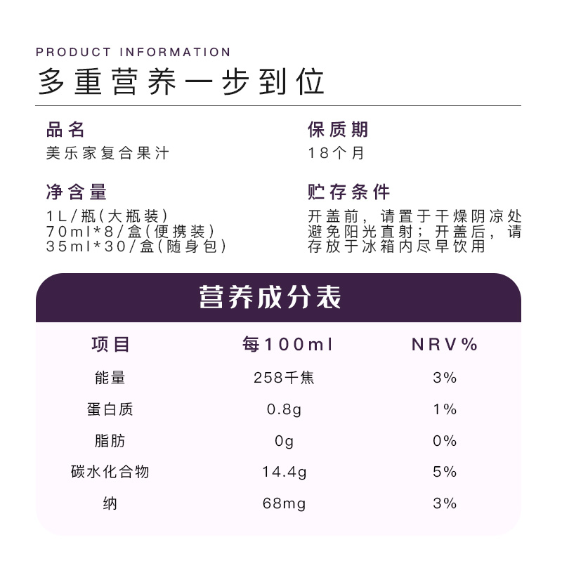 美乐家复合果汁饮料1L大瓶诺丽果汁酵素随身包便携装非官方旗舰店