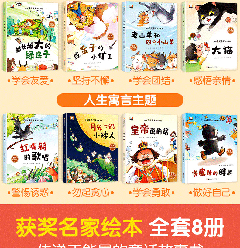 中国获奖名家绘本系列第四辑全8册 月光下的小矮人越长大越大的绿房子挖金子的小矿工老山羊和四只小山羊 大猫红嘴鸭的歌唱穿皮鞋Z