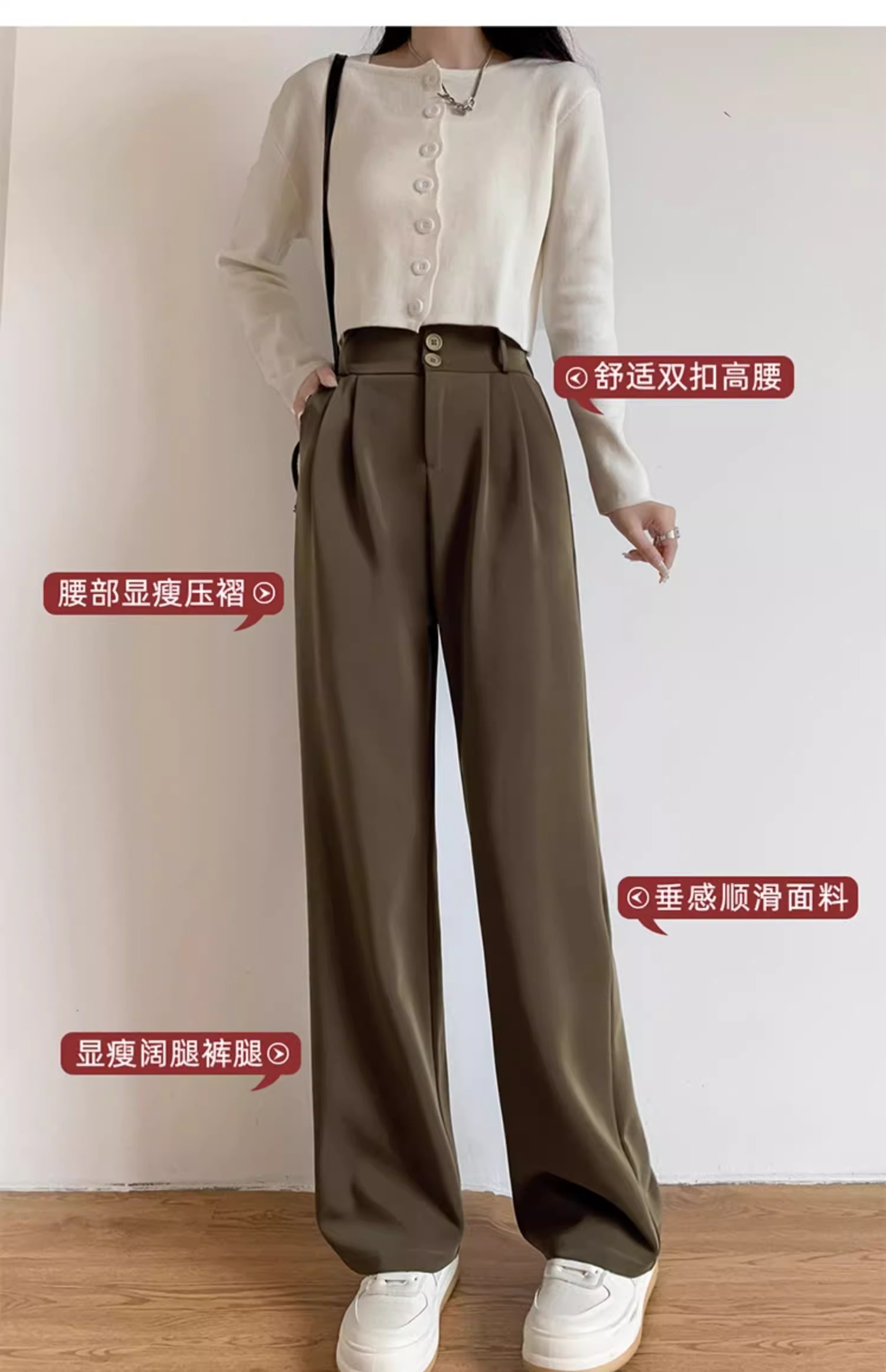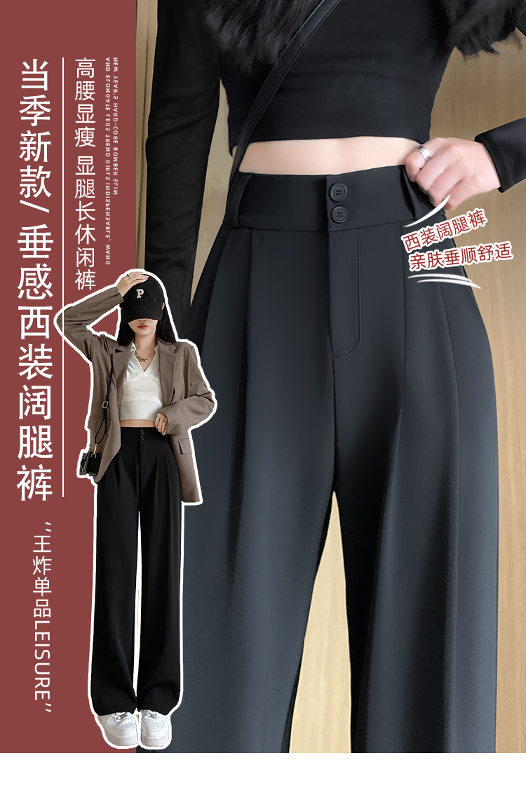 黑色西装裤女裤春秋季2025新款高级感垂感西裤直筒小个子阔腿裤子