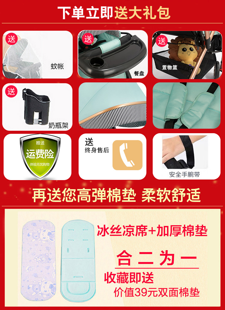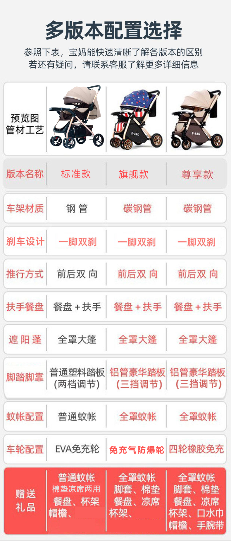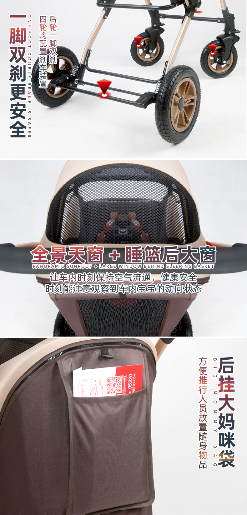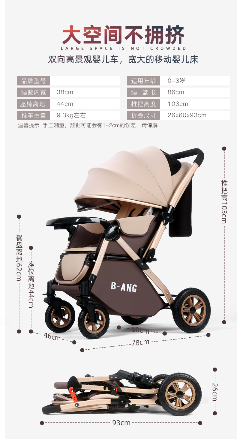 婴儿车可坐可躺轻便折叠双向新生儿童0-3岁宝宝减震高景观手推车