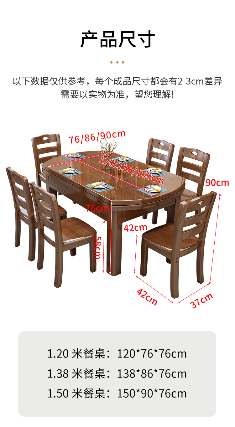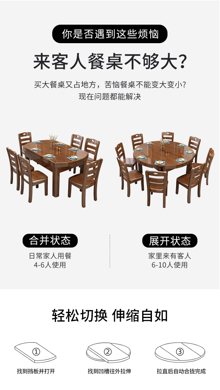 实木餐桌椅组合小户型家用饭桌子可伸缩折叠方形圆形餐桌现代简约
