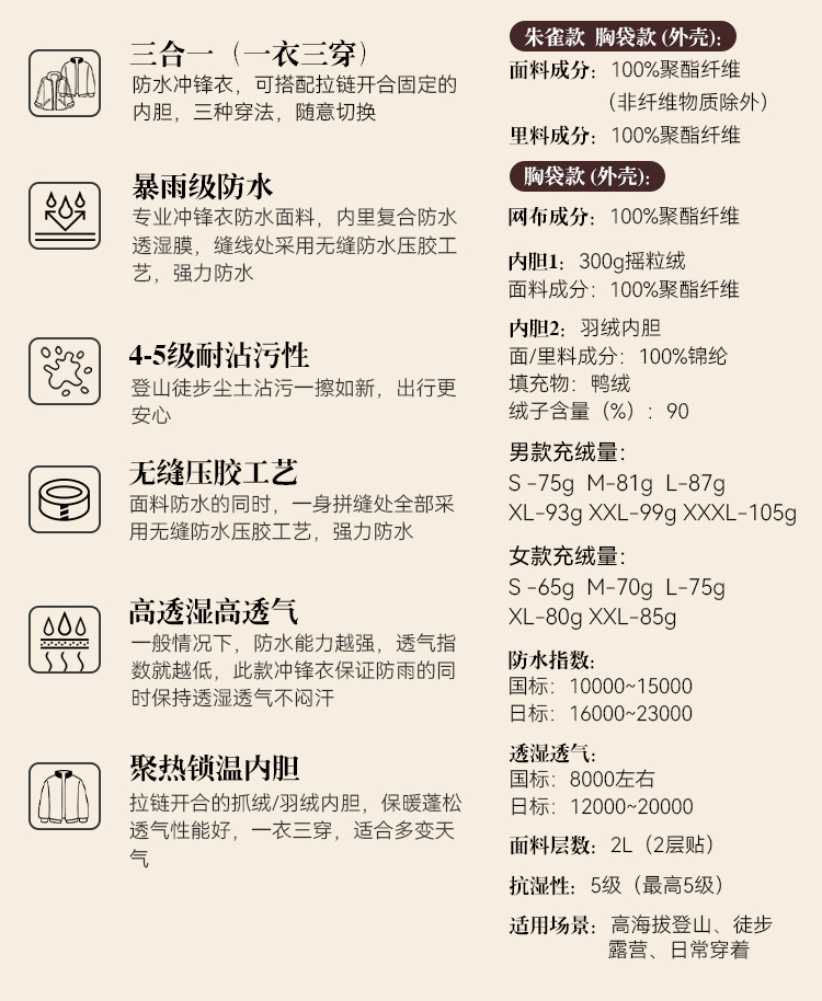 明星同款【朱雀冲锋衣】拓路者户外抓绒内胆三合一男女款防水外套