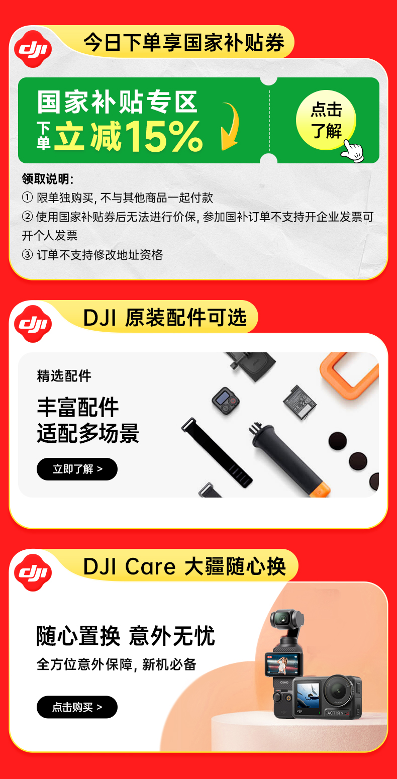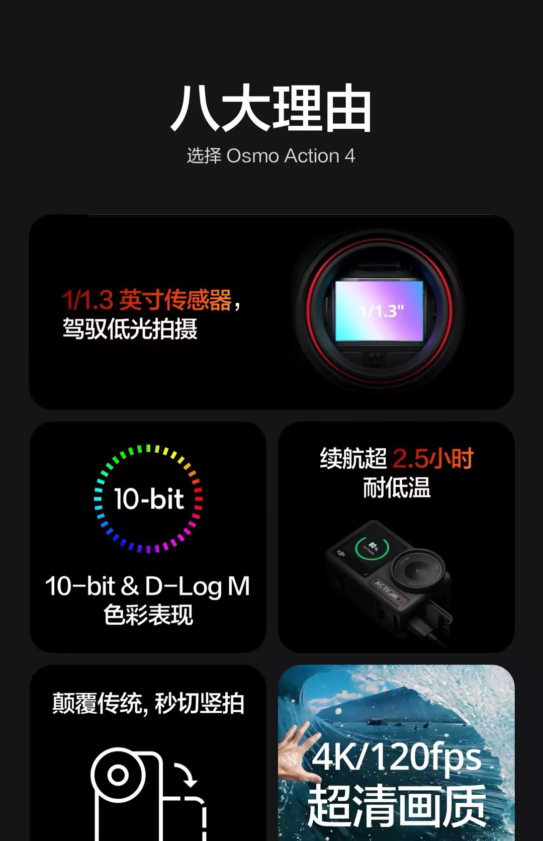 【双11直降】DJI 大疆 Osmo Action 4 vlog 手持运动相机 4K 防抖