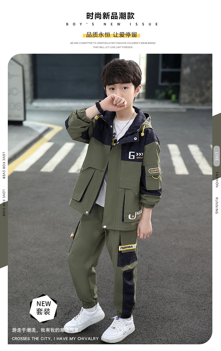 男童秋装套装2025新款春秋季中大儿童工装裤外套潮帅气时髦两件套