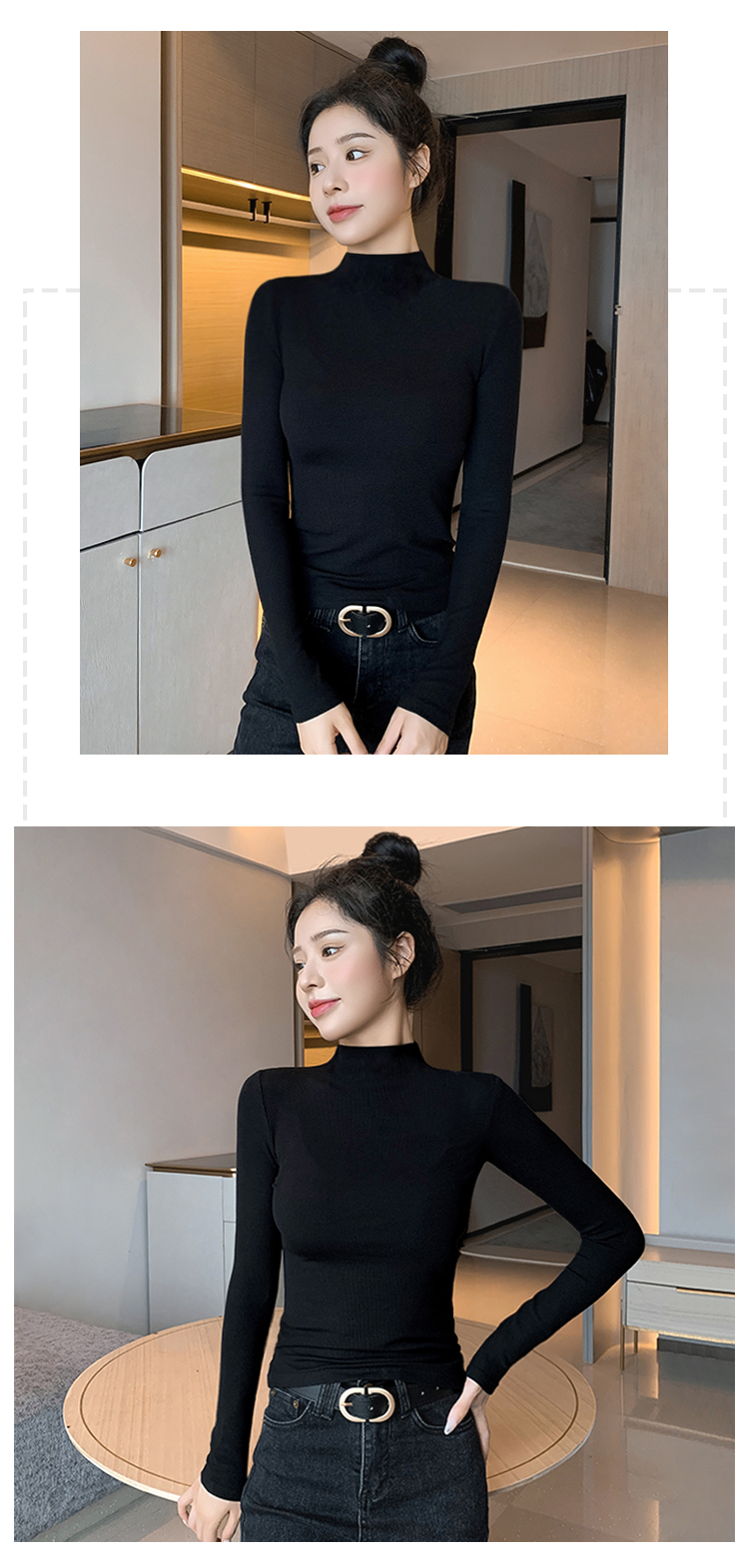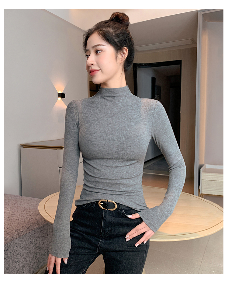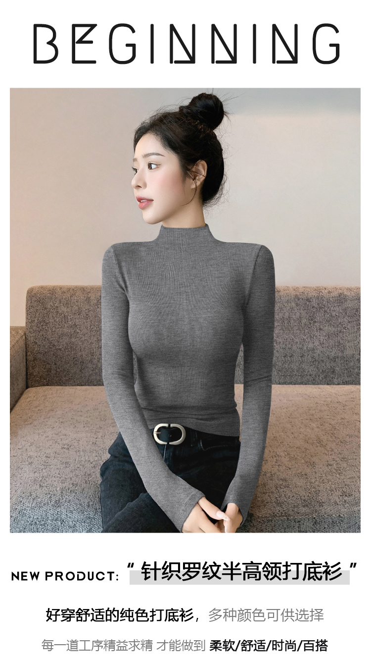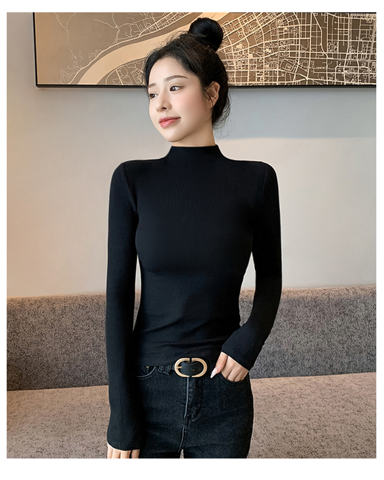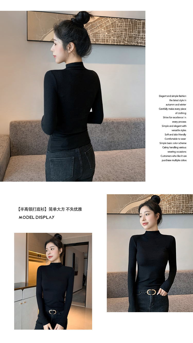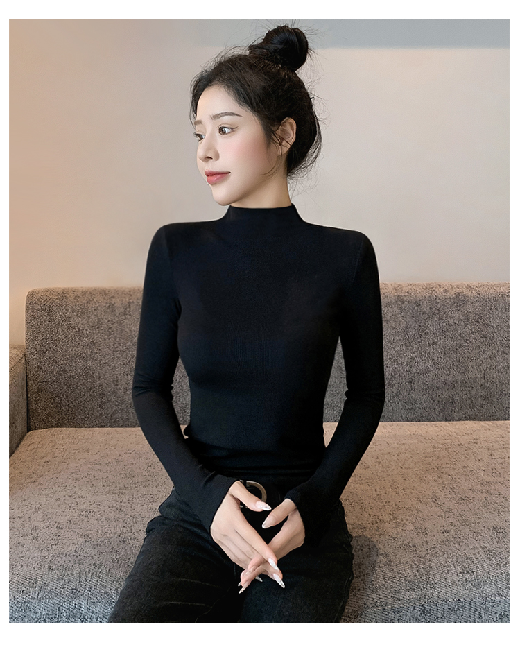 半高领打底衫女2025新款秋冬内搭加绒高级感修身薄款针织黑色上衣
