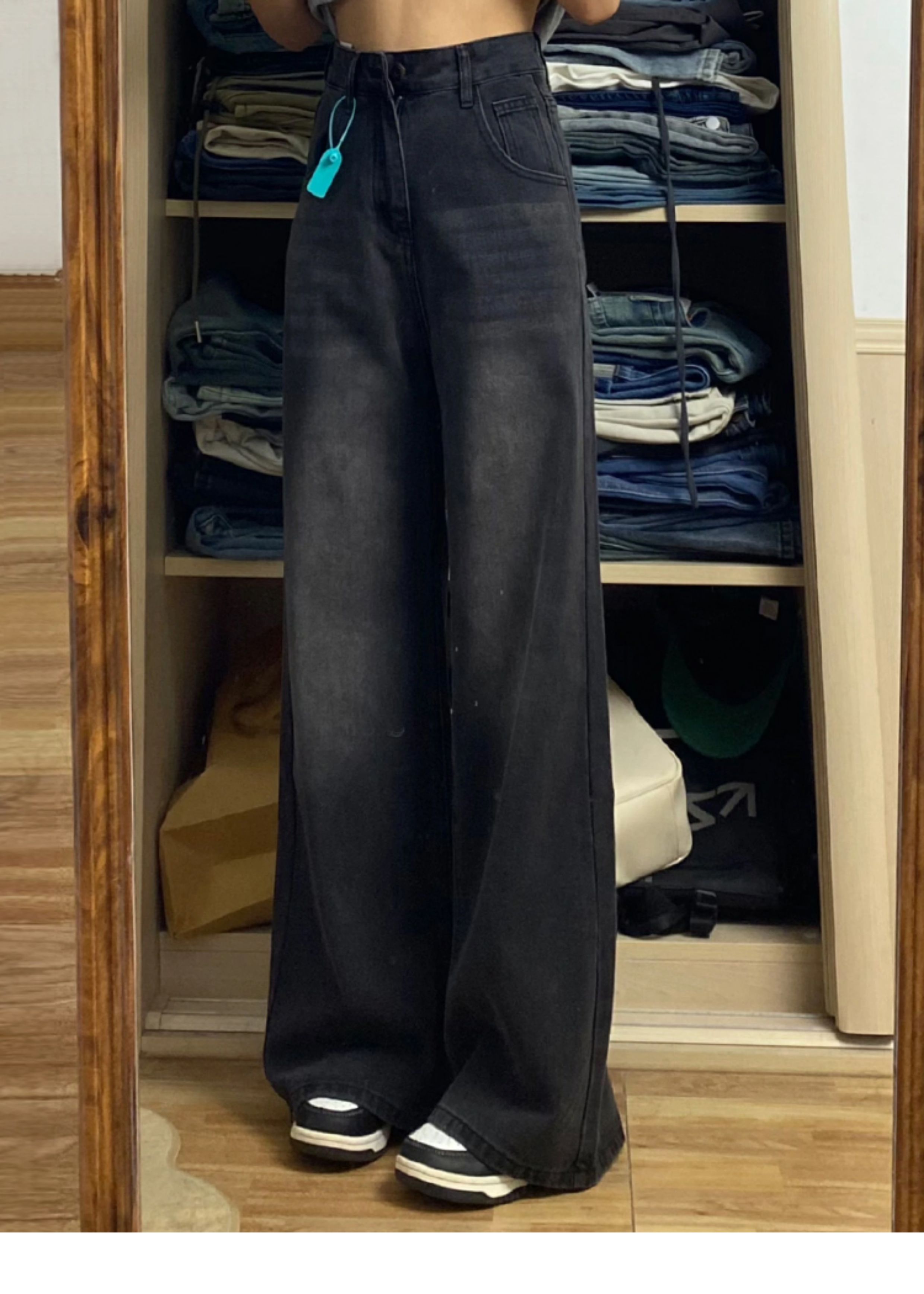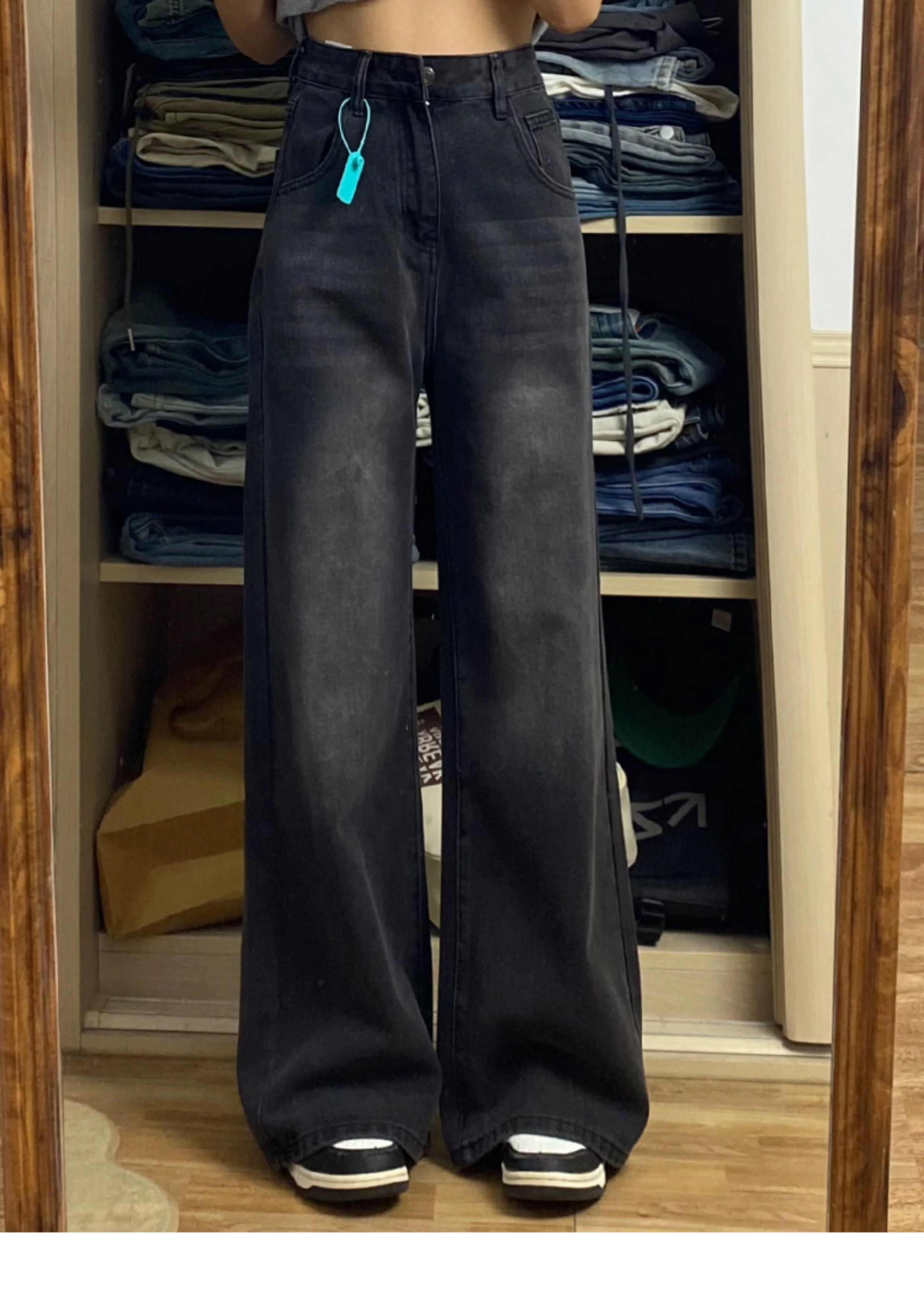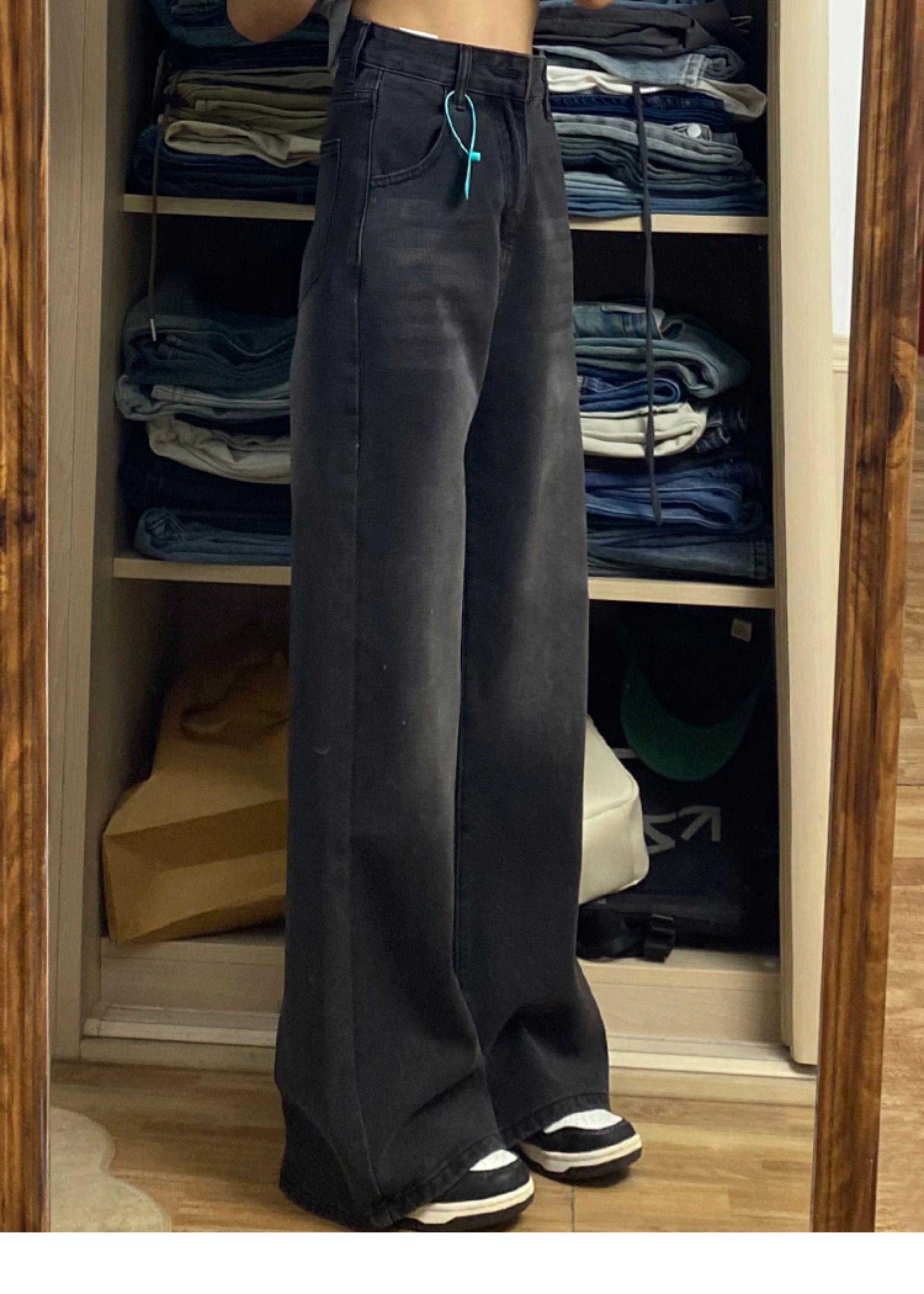 裤子女款大码胖mm小个子直筒牛仔裤2025新款宽松bf慵懒显瘦阔腿裤