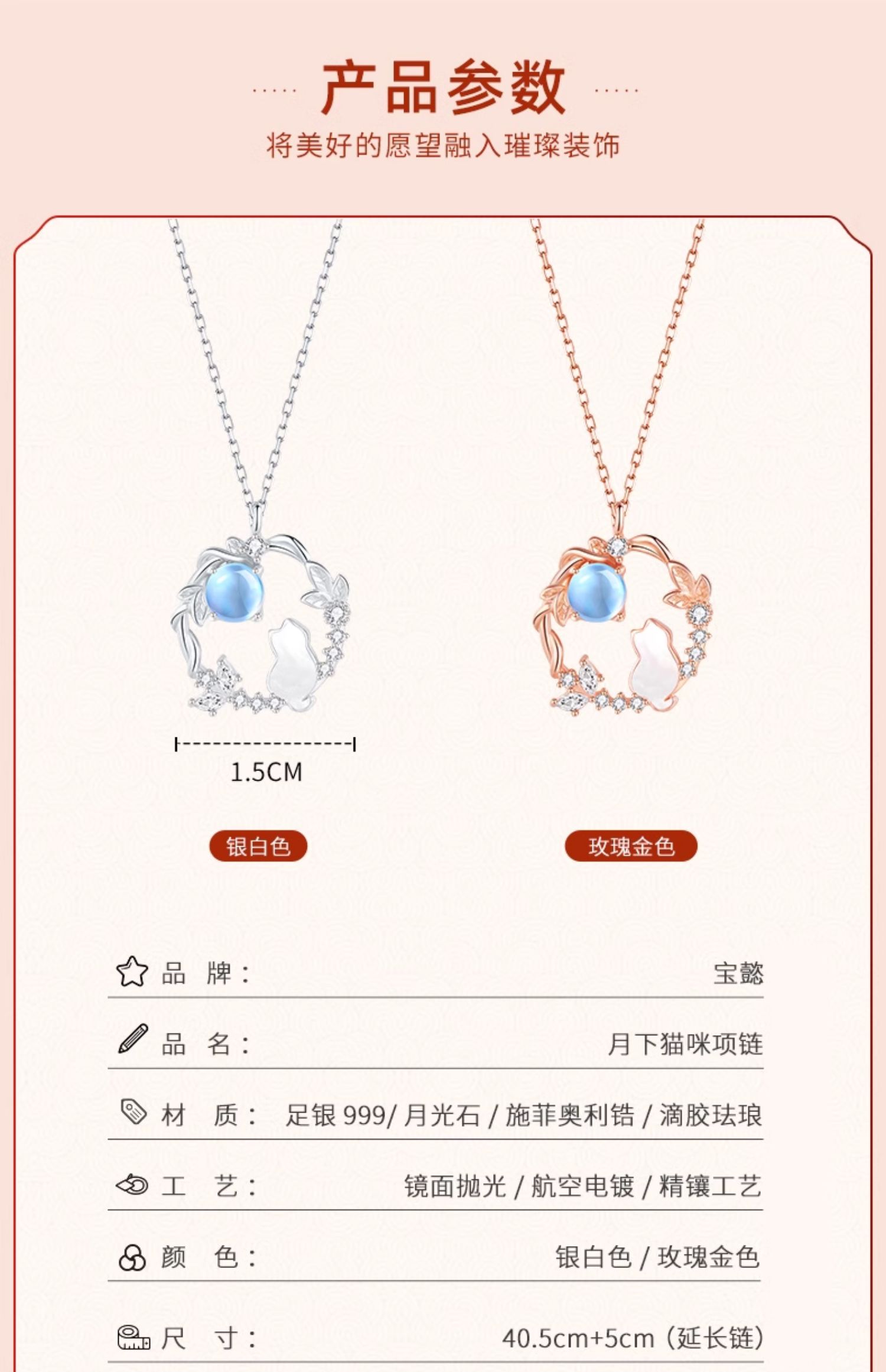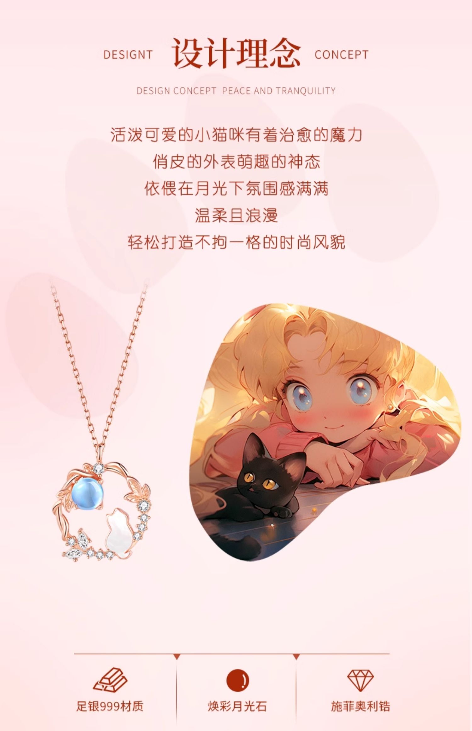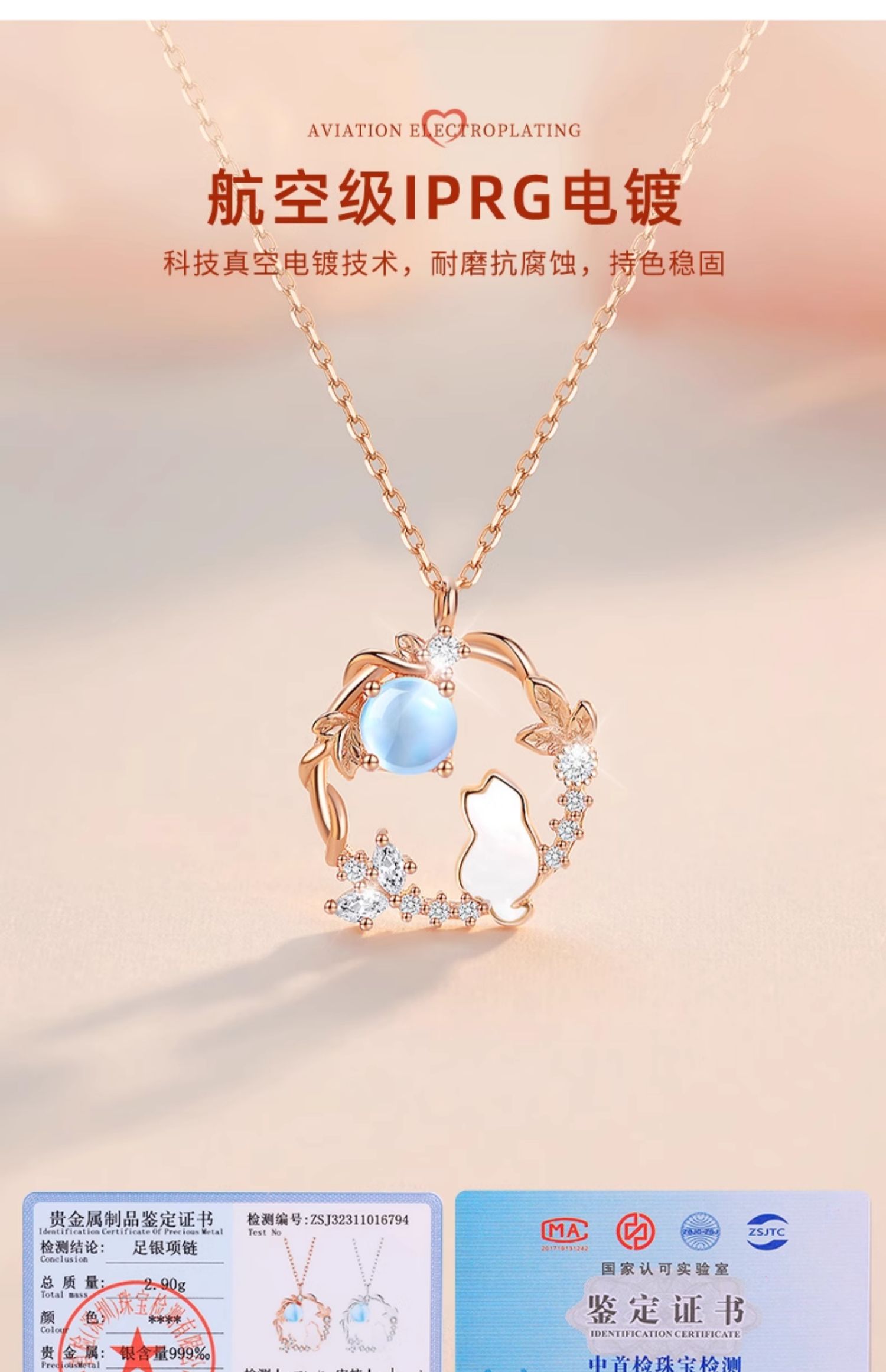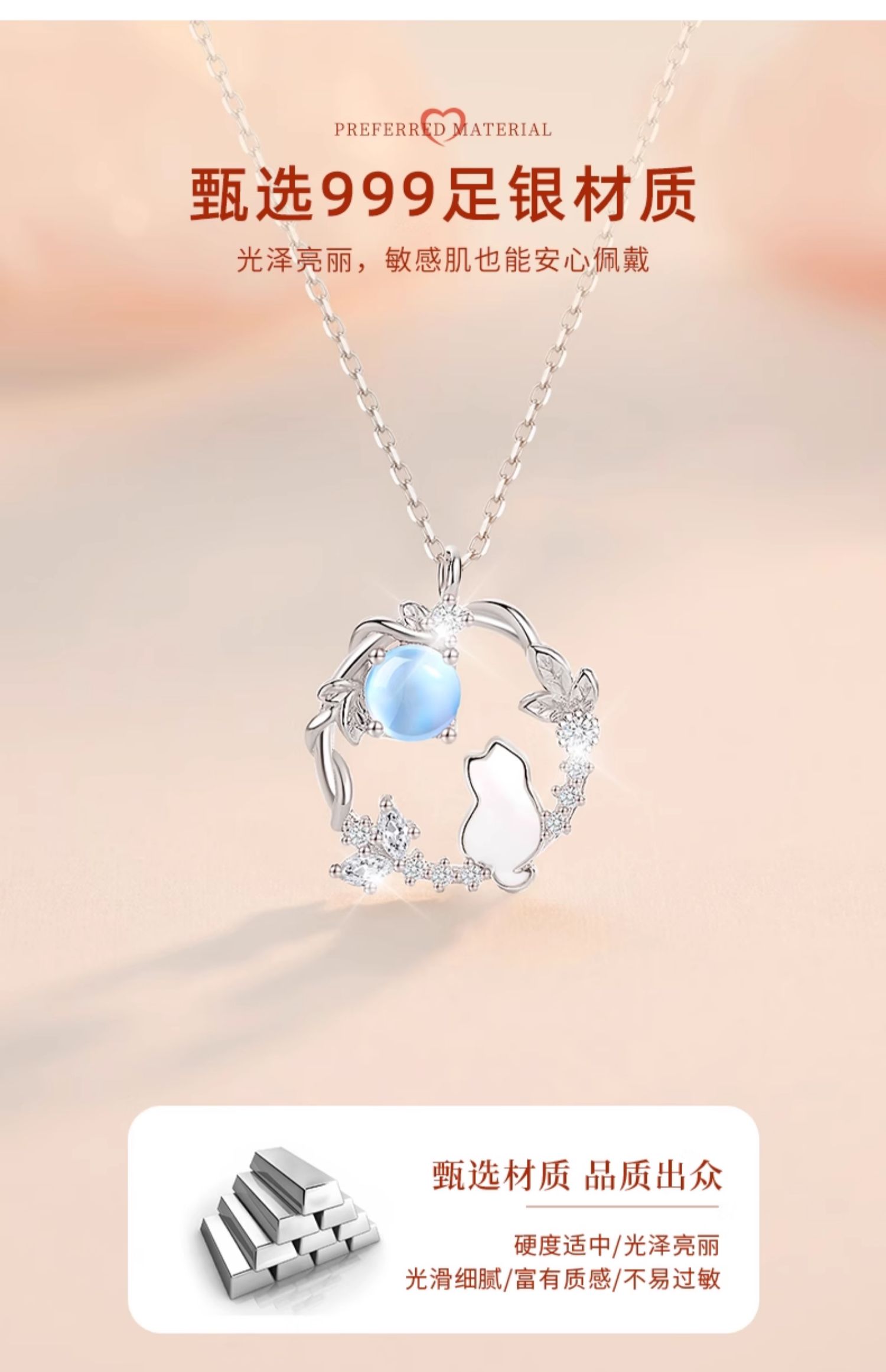 999纯银月下猫咪项链女款2025新款高级感轻奢夏天生日礼物送女友