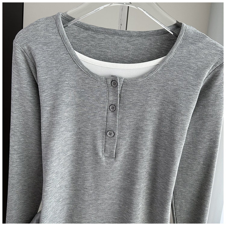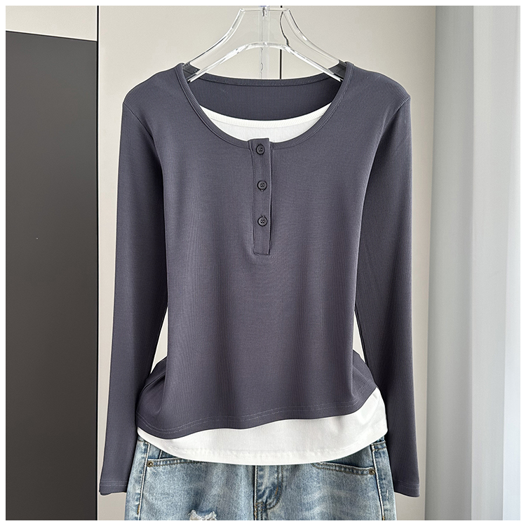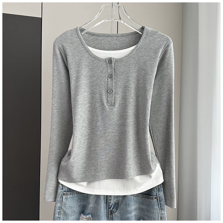 假两件长袖t恤女2025新款早初秋冬季薄款内搭打底衫宽松外穿上衣
