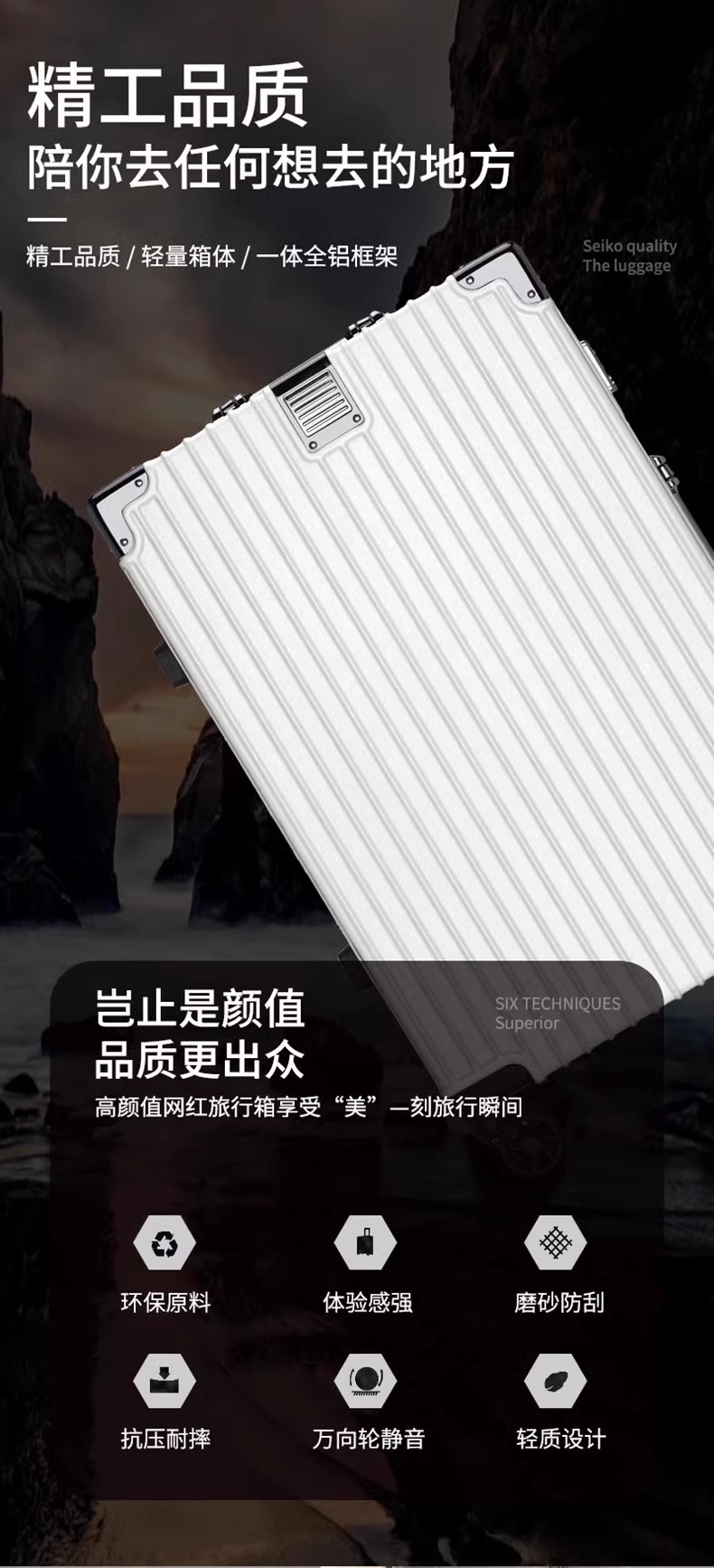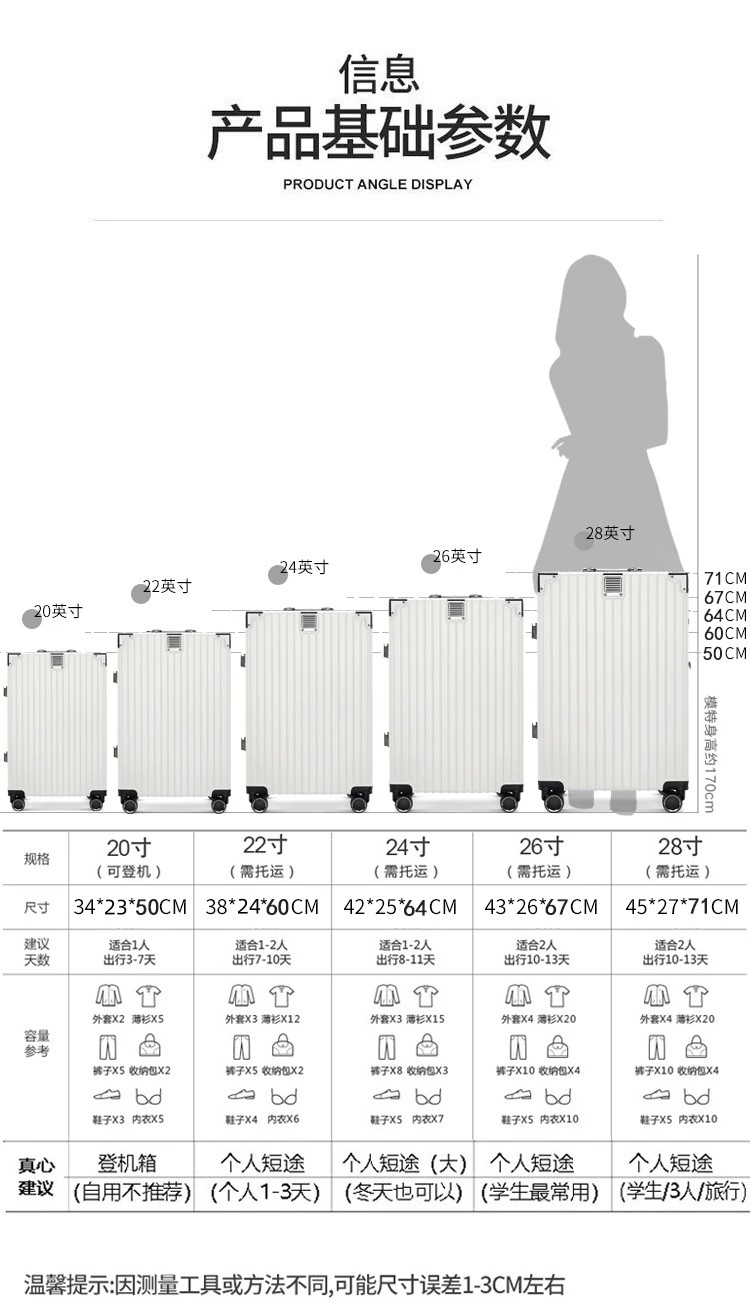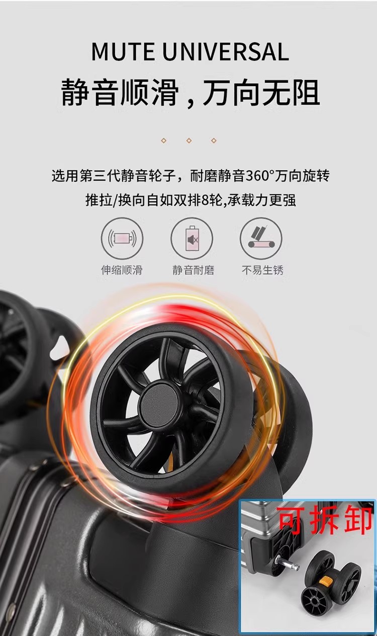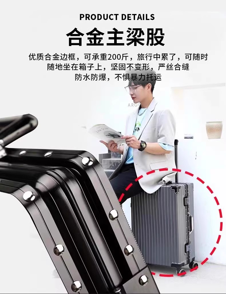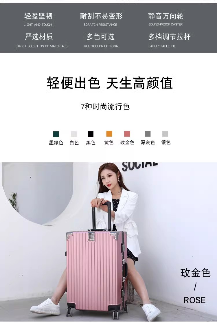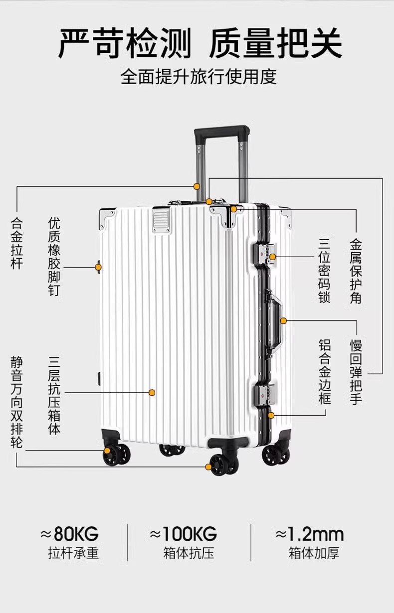 行李箱女20子母铝框拉杆箱大容量可登机旅行箱男24结实耐用万向轮