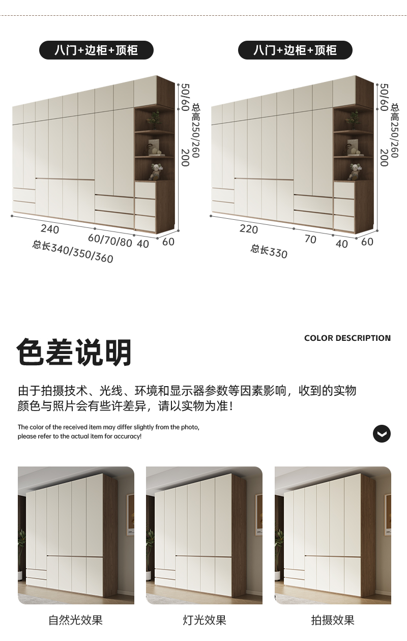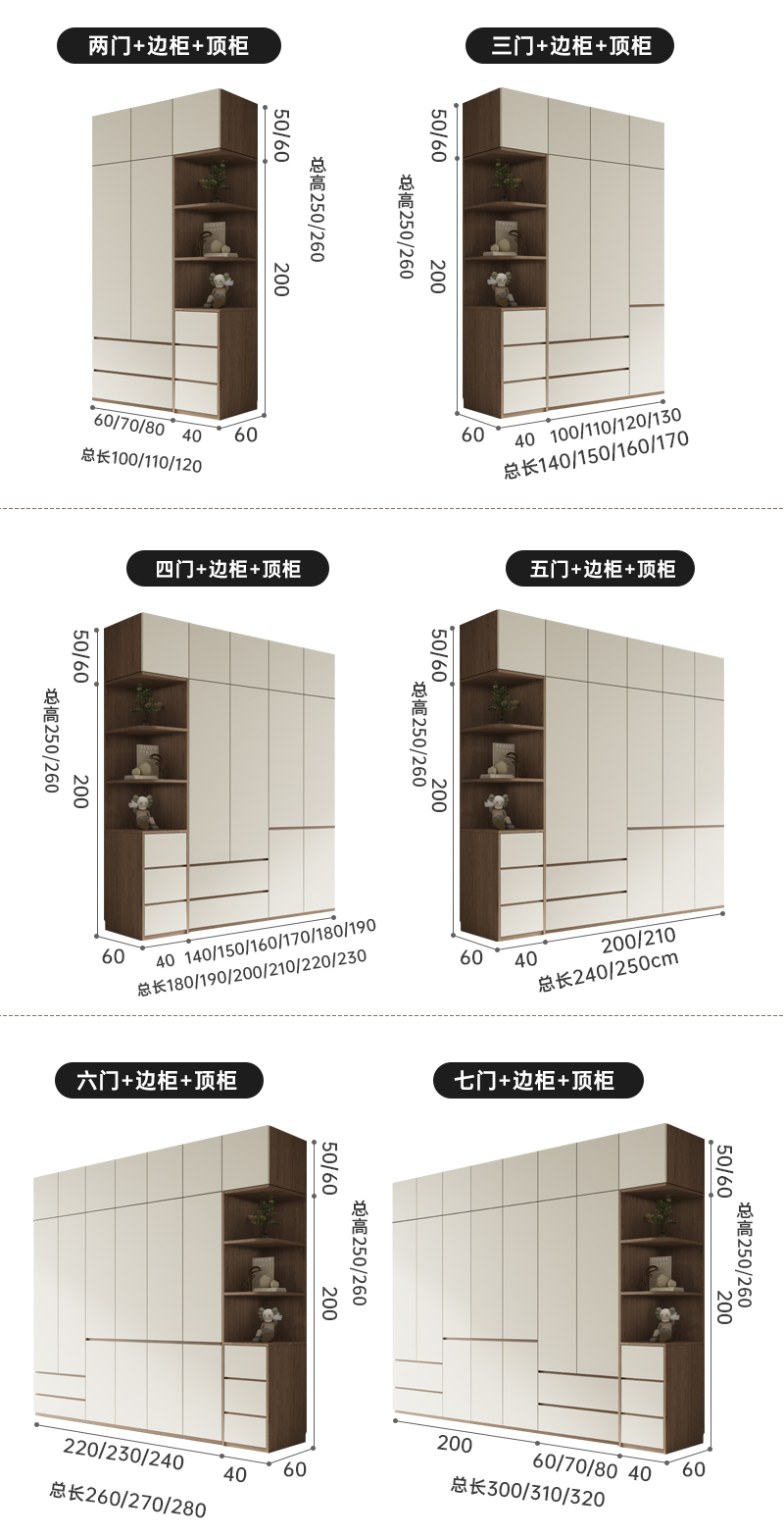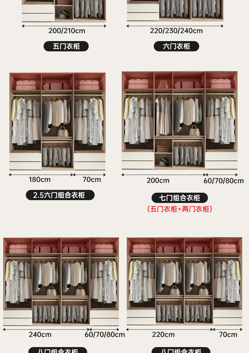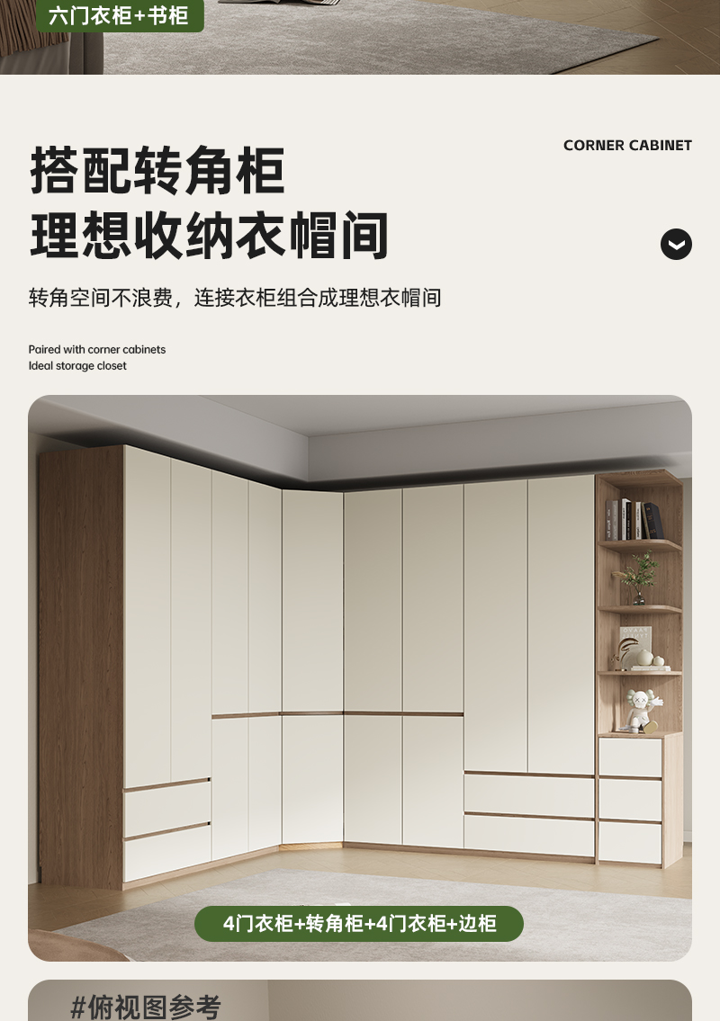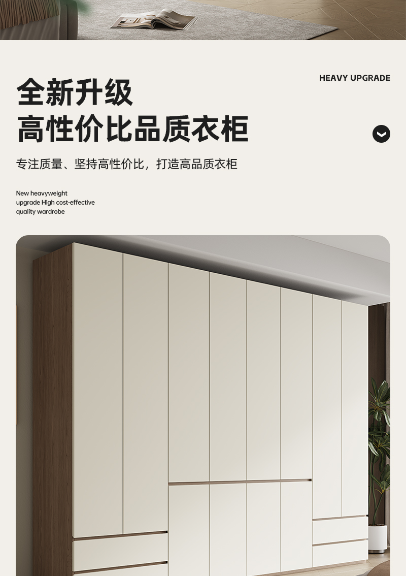 分段衣柜奶油白肤感门18mm厚胡桃色柜体L形转角组合收纳家用卧室