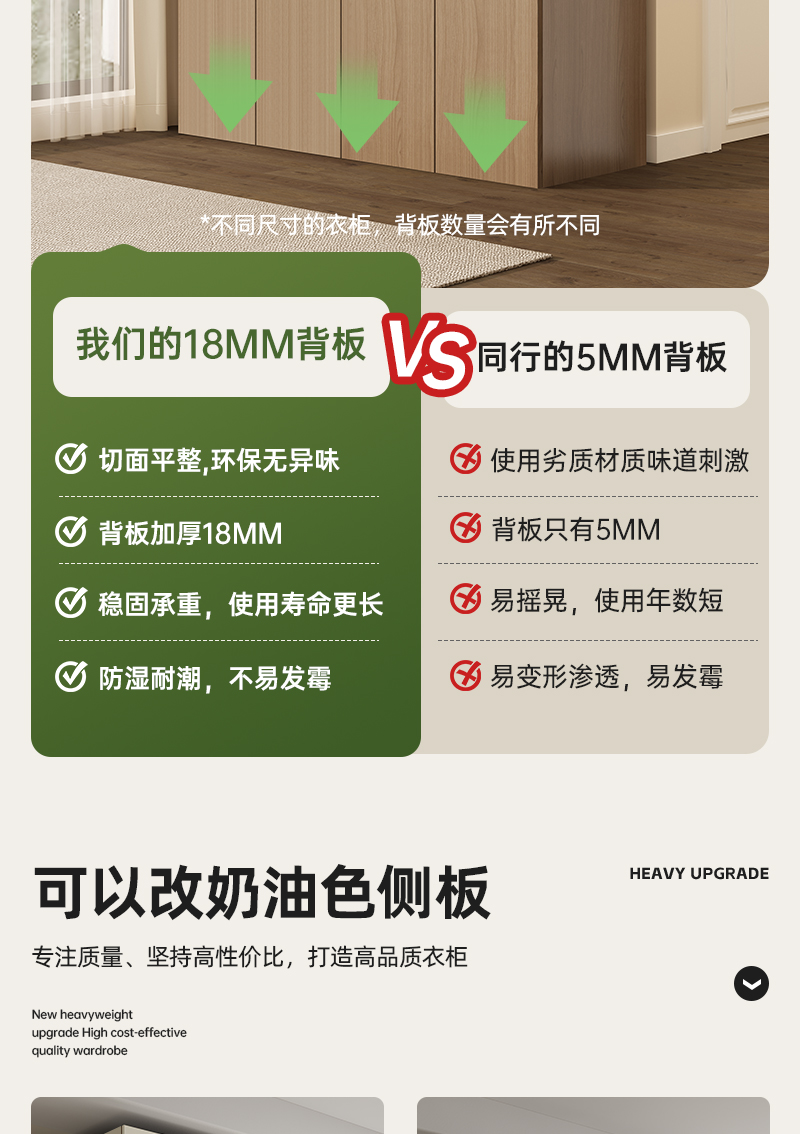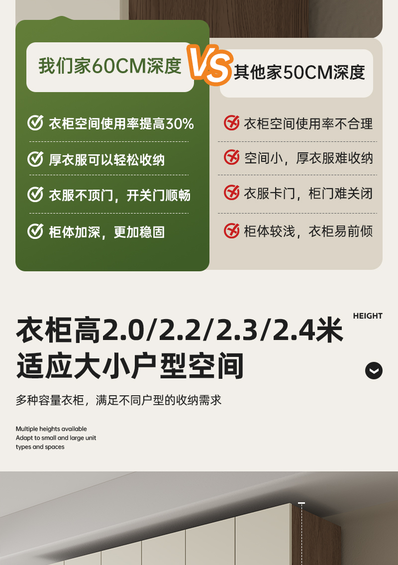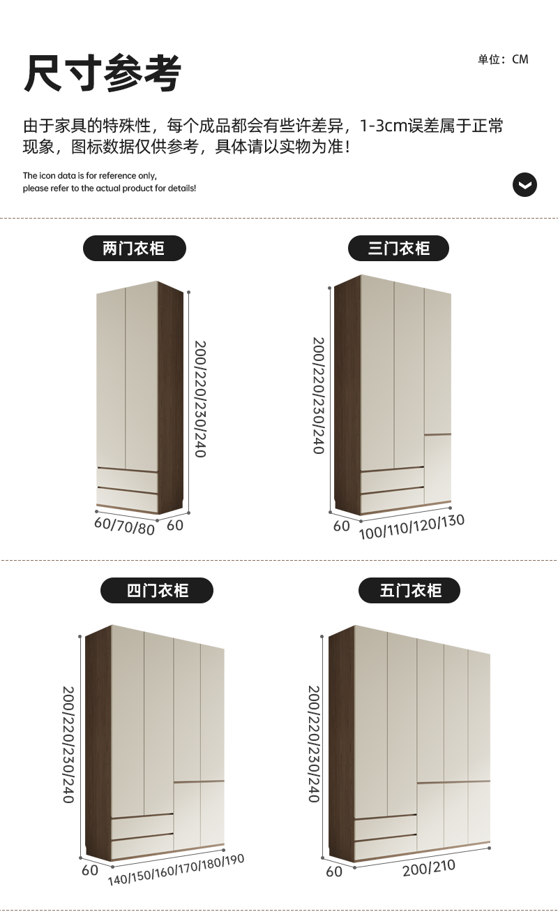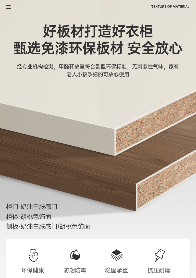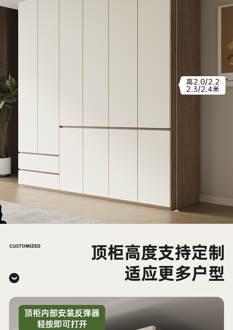 分段衣柜奶油白肤感门18mm厚胡桃色柜体L形转角组合收纳家用卧室