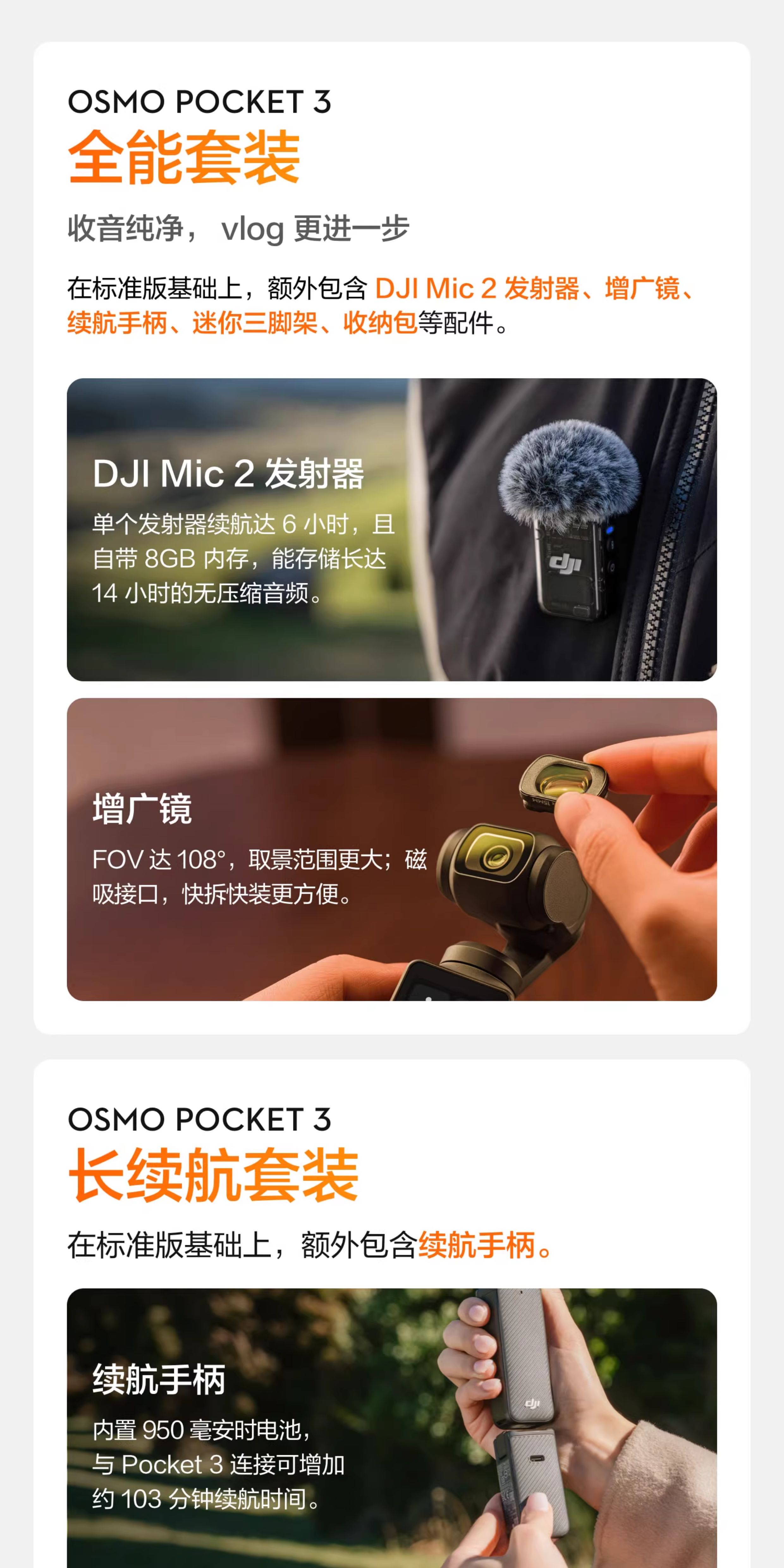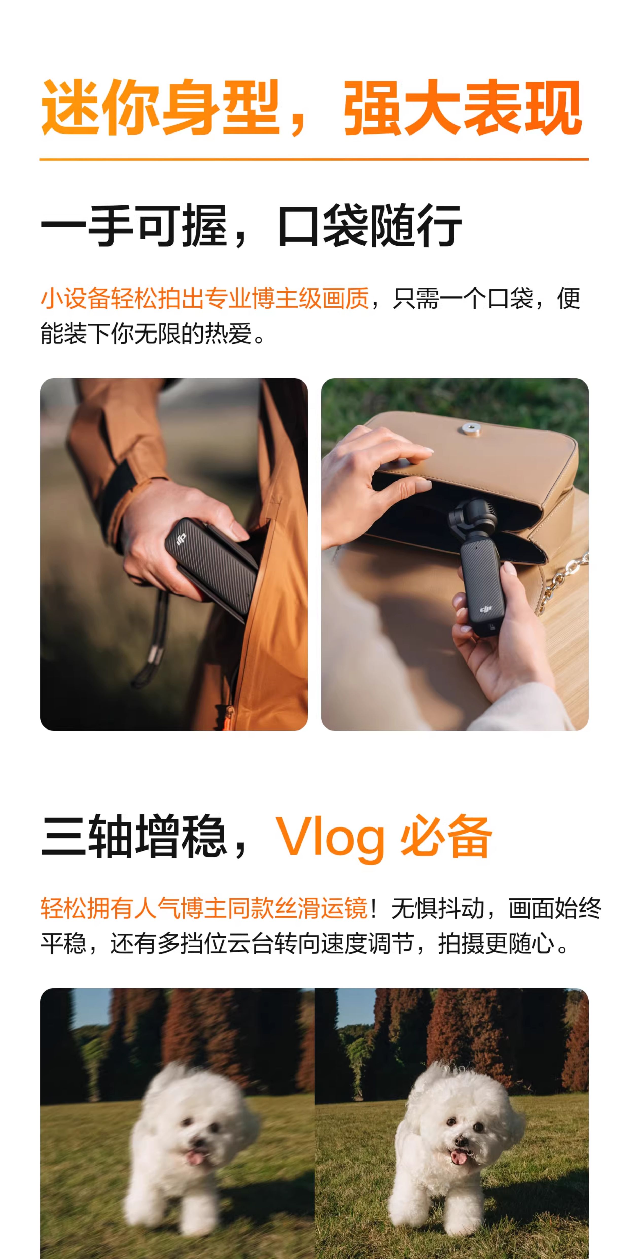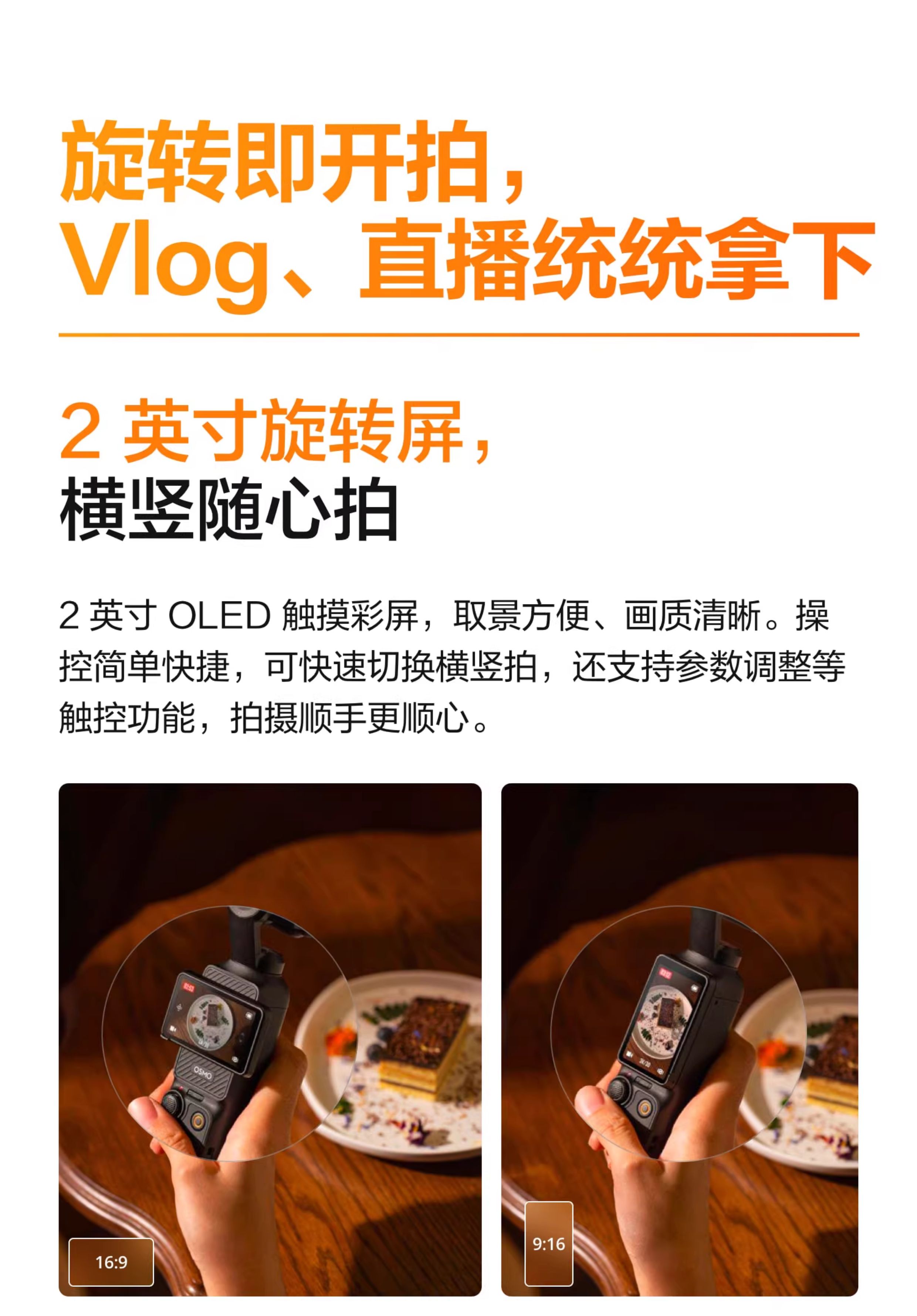DJI 大疆 Pocket 3 口袋云台 vlog 相机灵眸智能手持防抖摄像机
