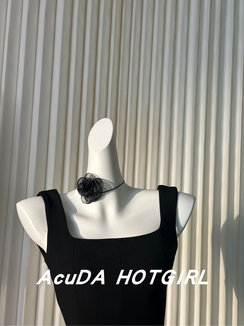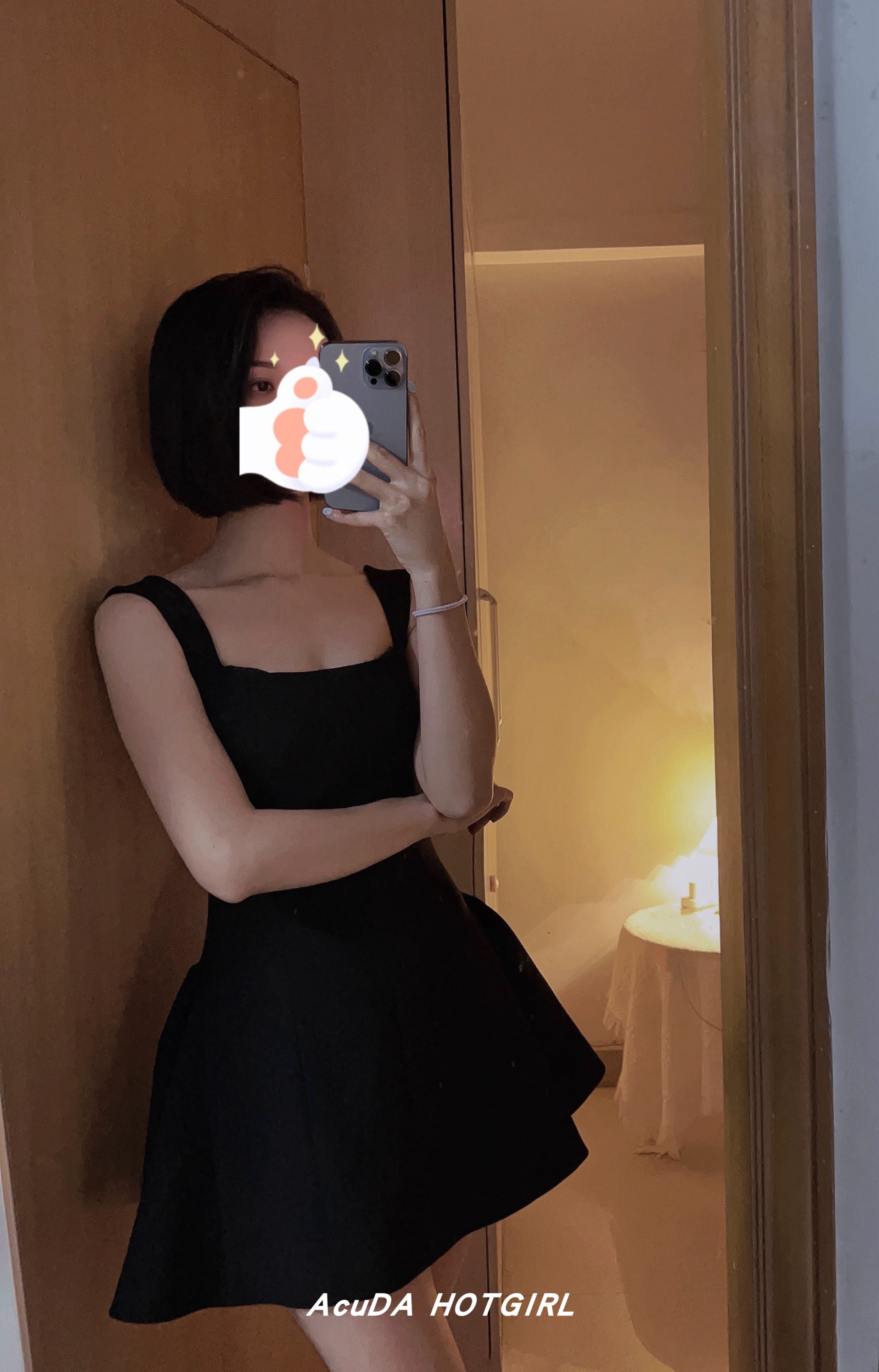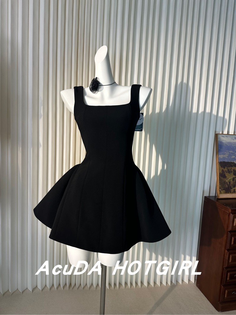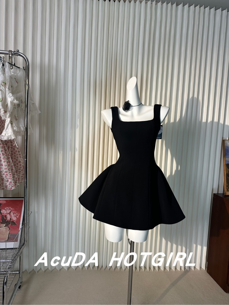 AcuDA布尔乔亚法式方领黑色吊带收腰显瘦夏季新款优雅复古小短裙