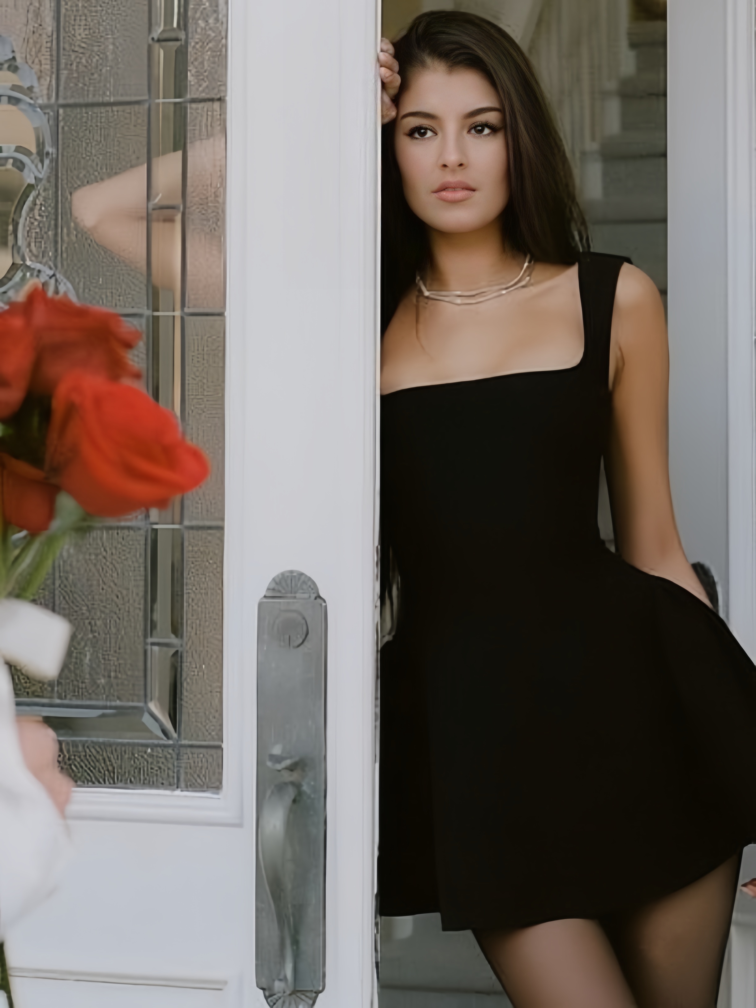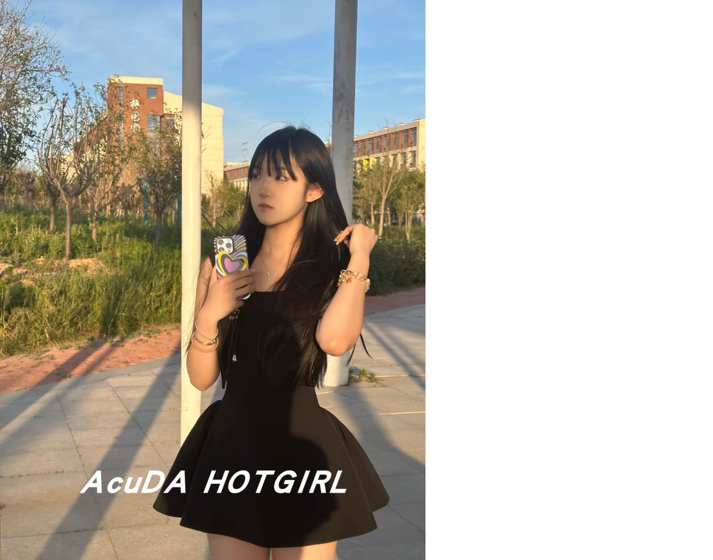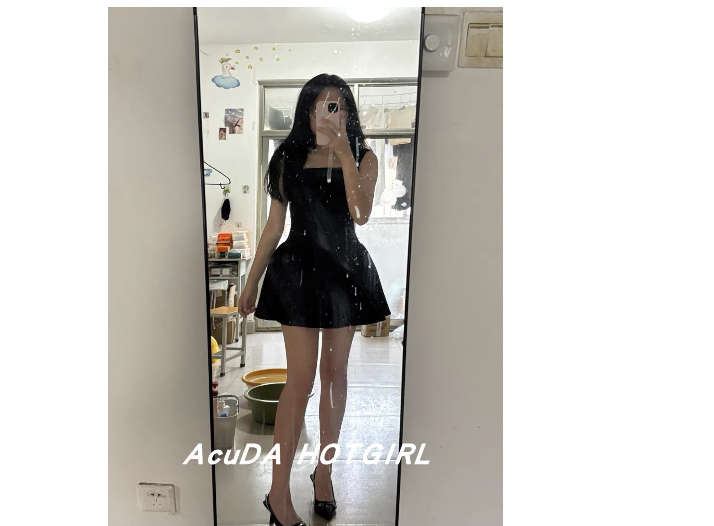AcuDA布尔乔亚法式方领黑色吊带收腰显瘦夏季新款优雅复古小短裙