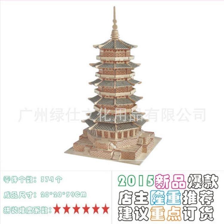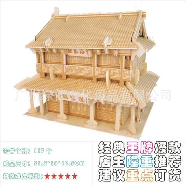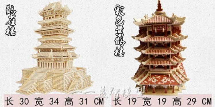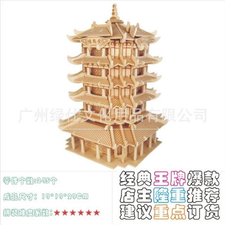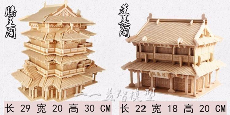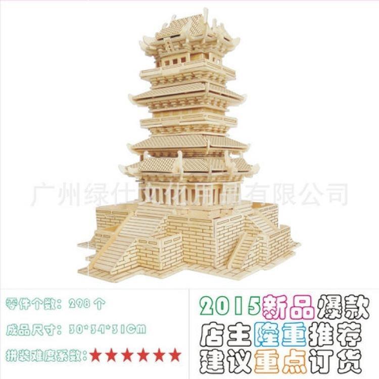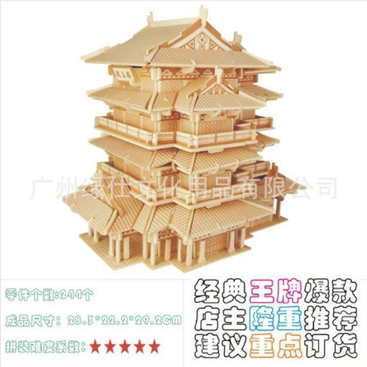 中国古楼模型榫卯结构拼接木质拼图手工益智diy木制房子立体制作