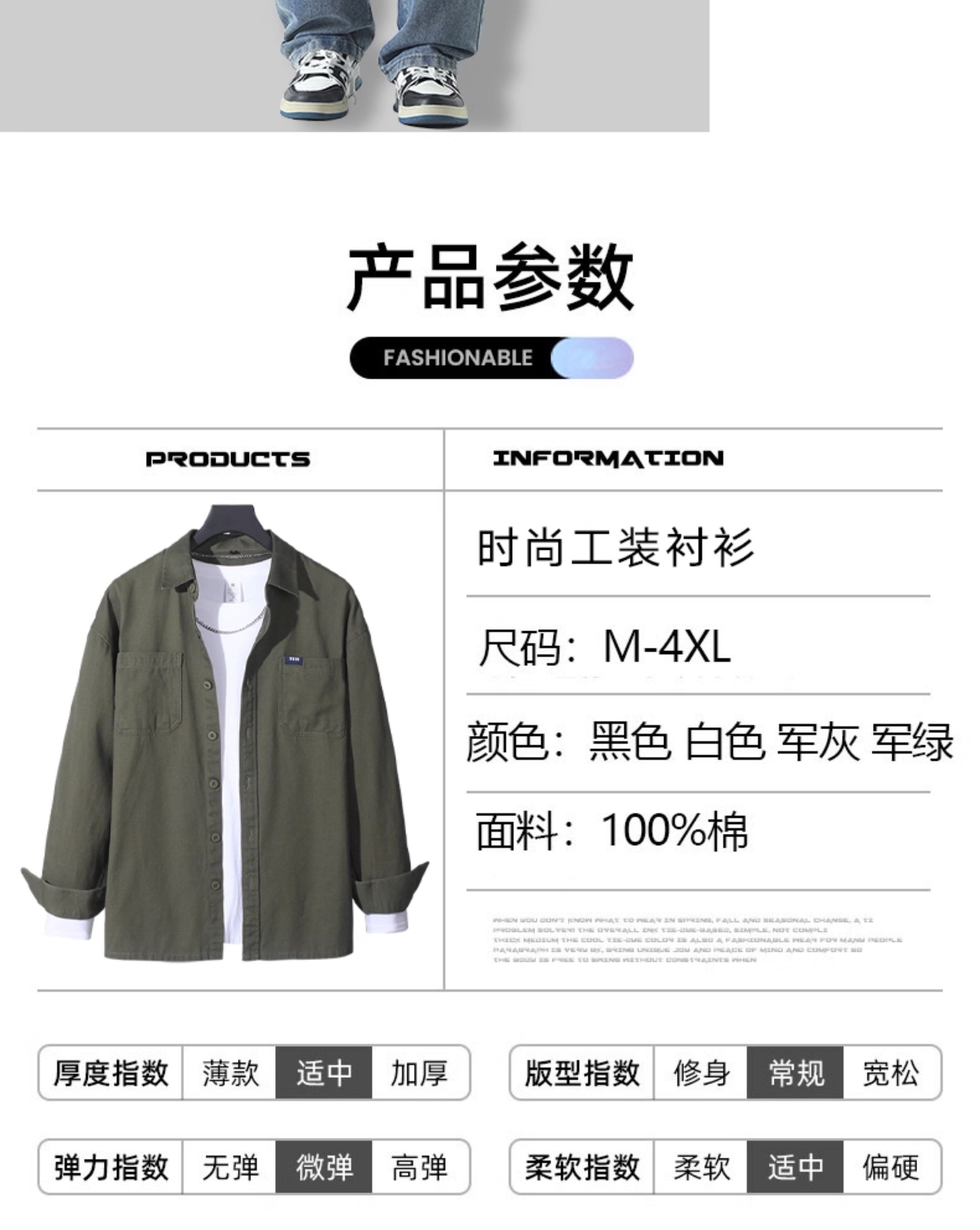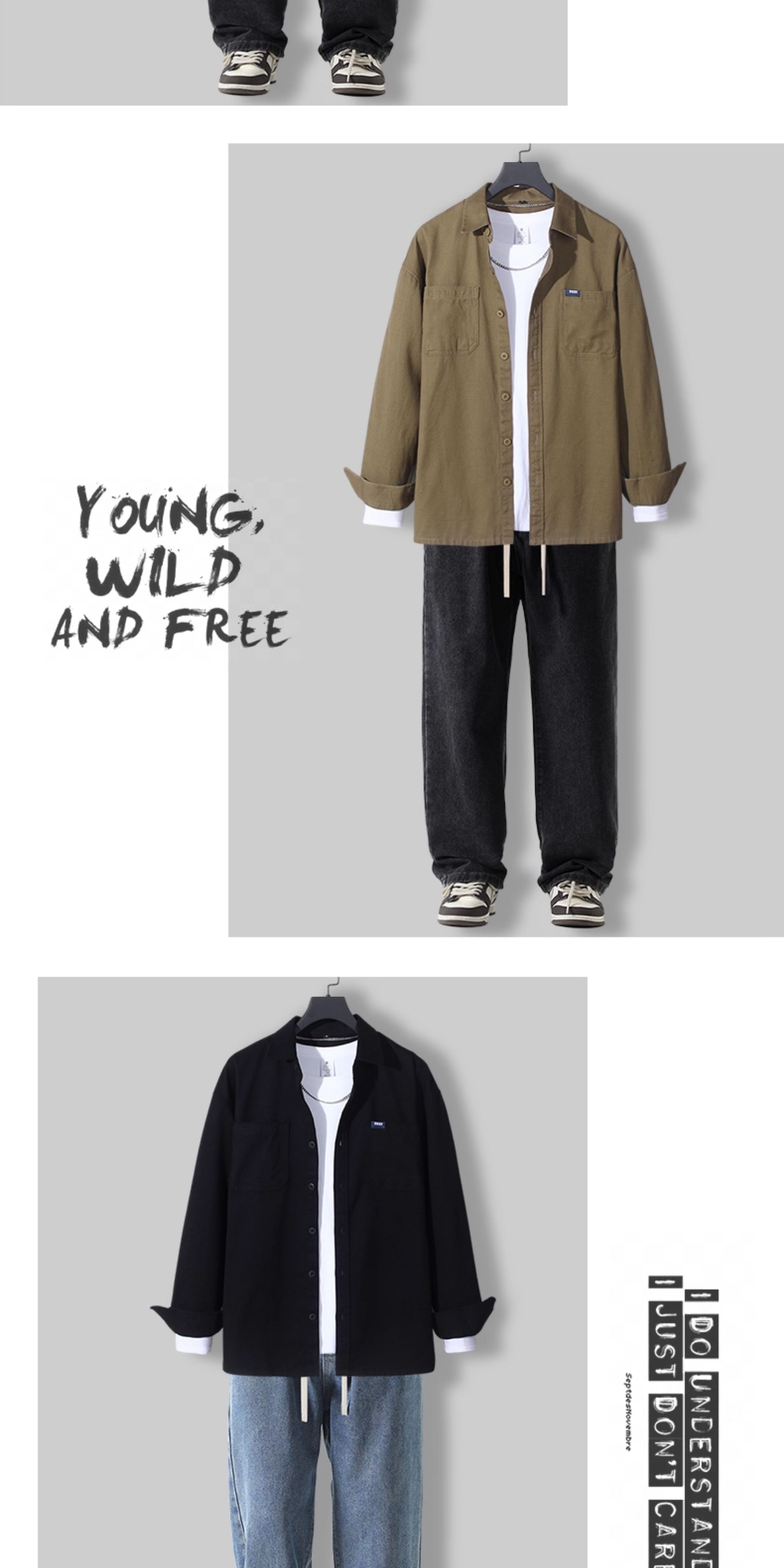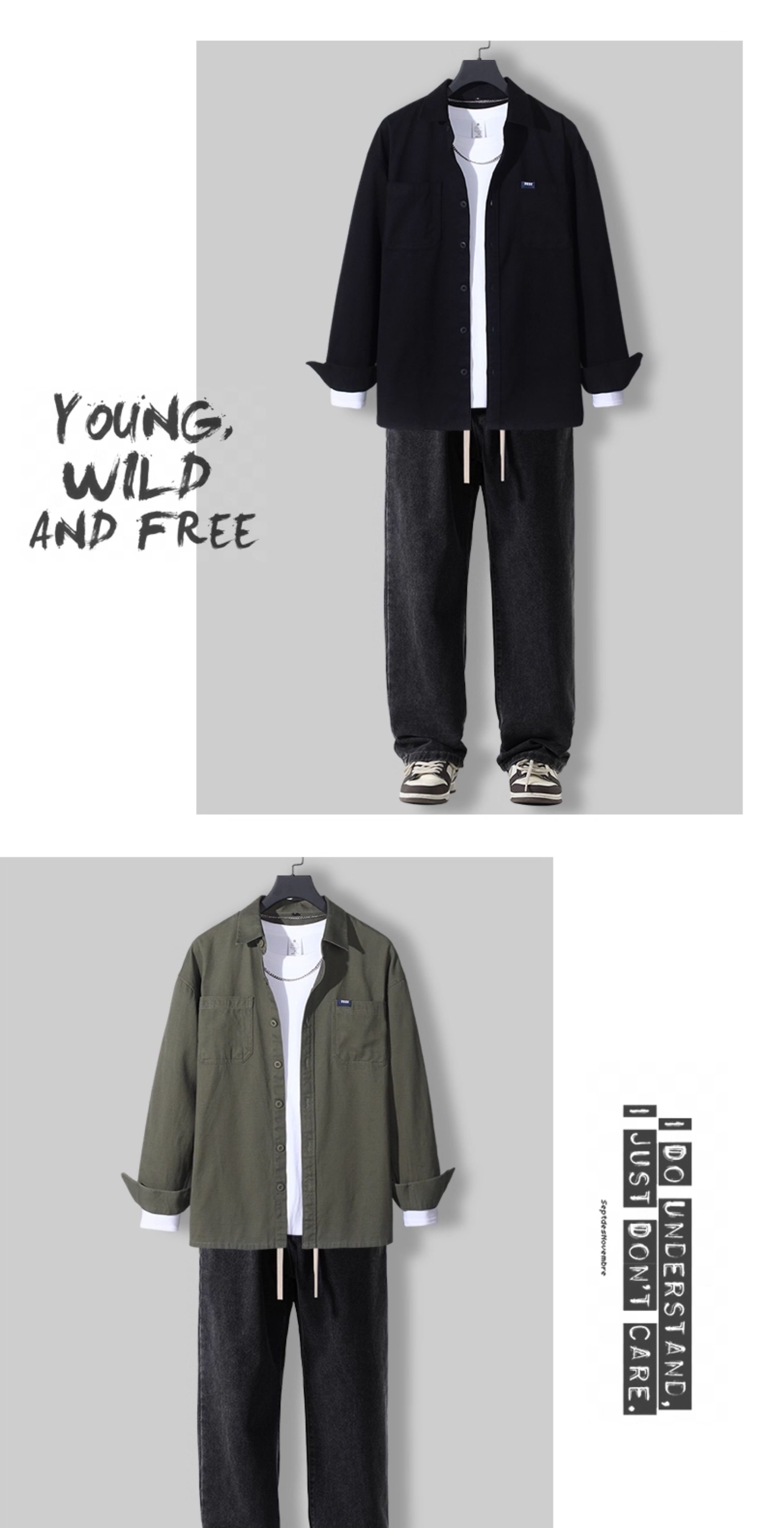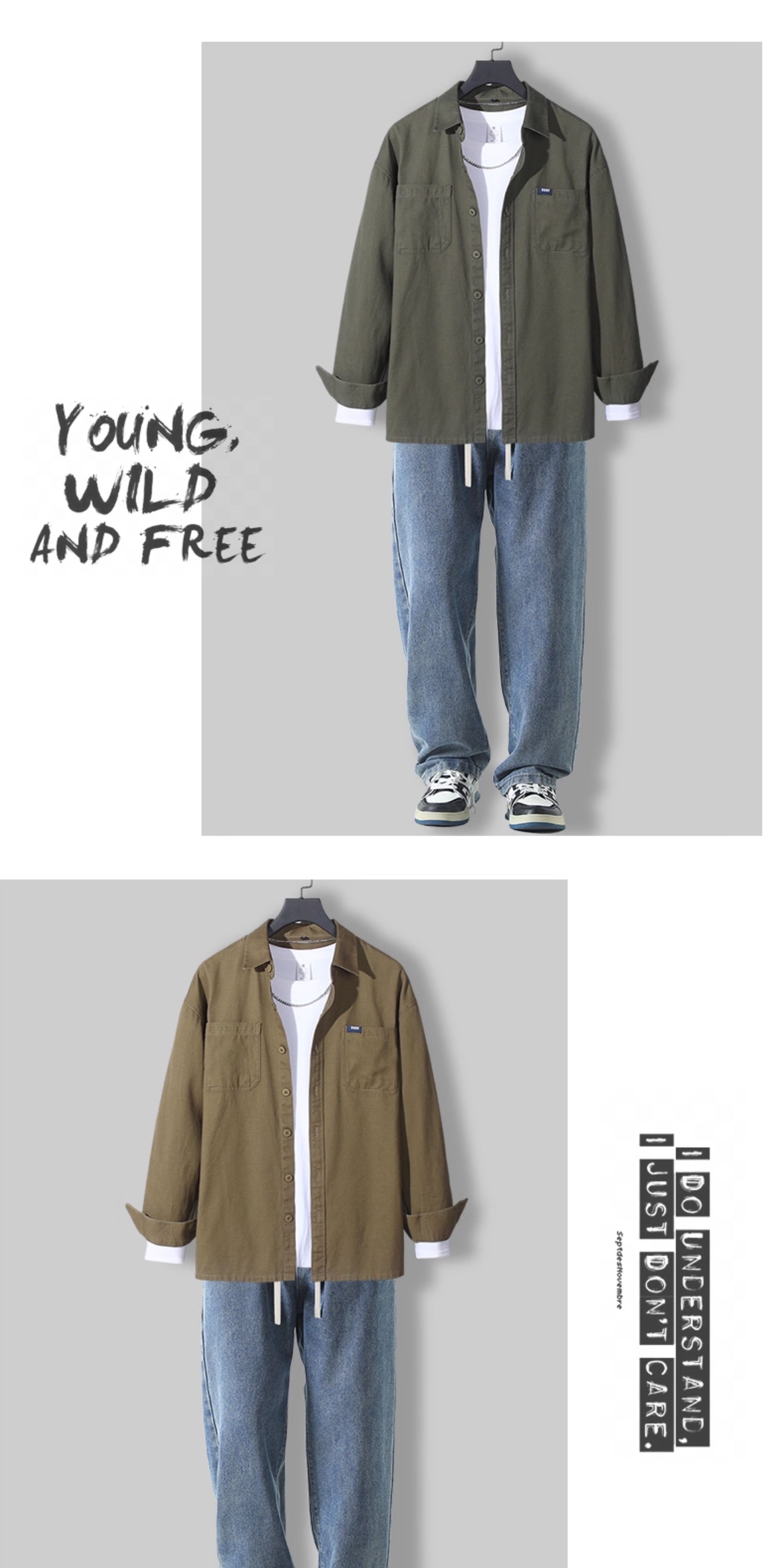 春季新款纯棉衬衫男士长袖休闲套装日系工装春秋潮流痞帅男装一套