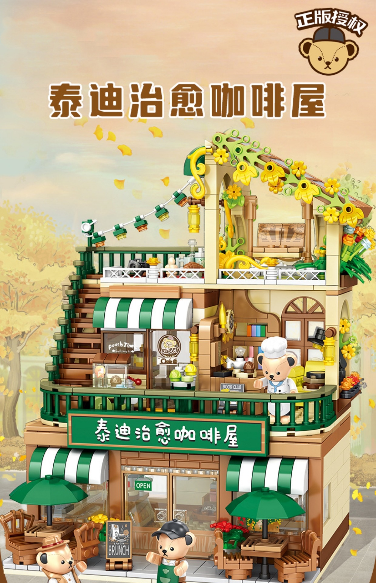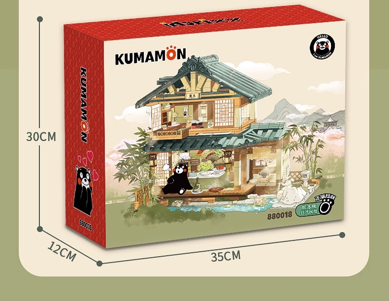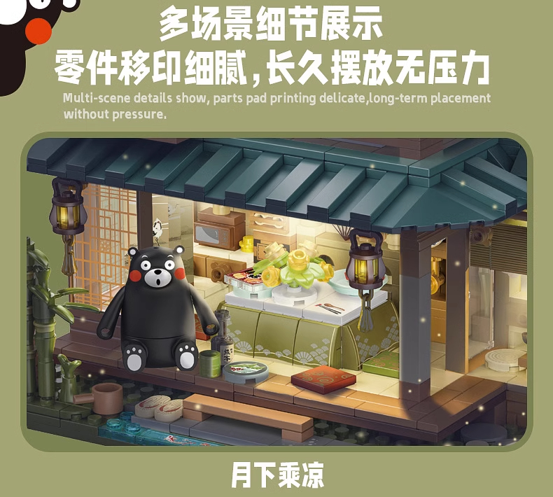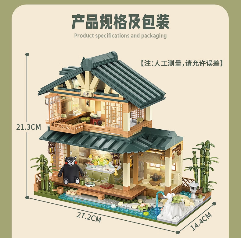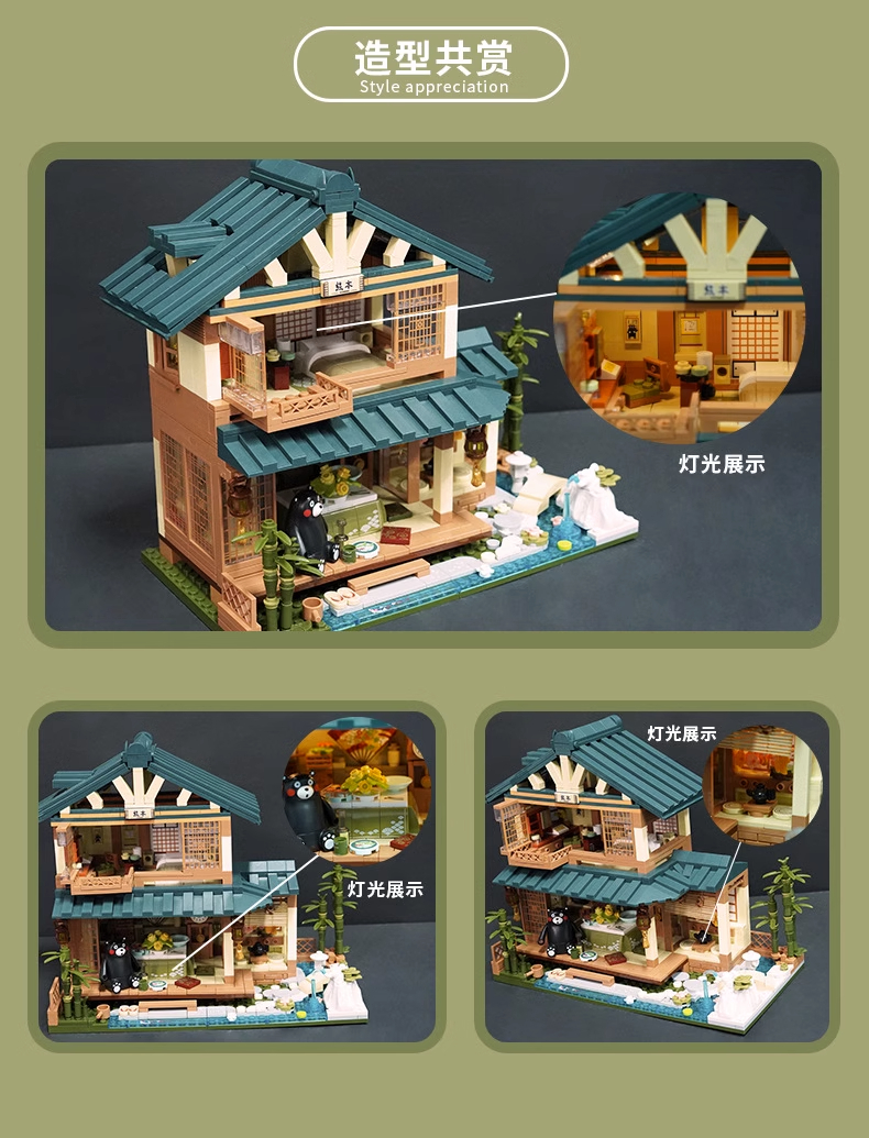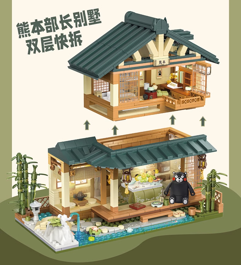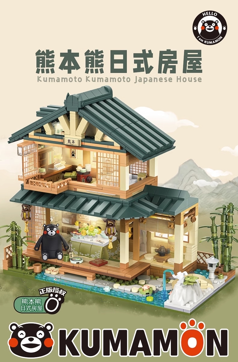 熊本熊街景积木日式小屋咖啡屋别墅模型女孩diy拼装儿童益智玩具