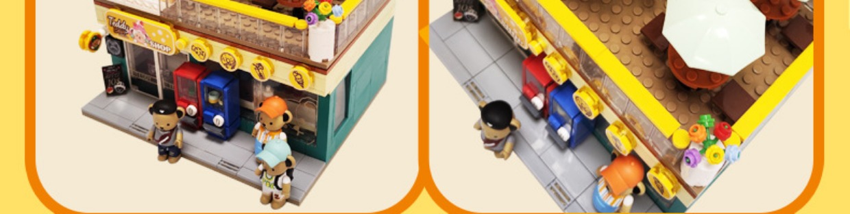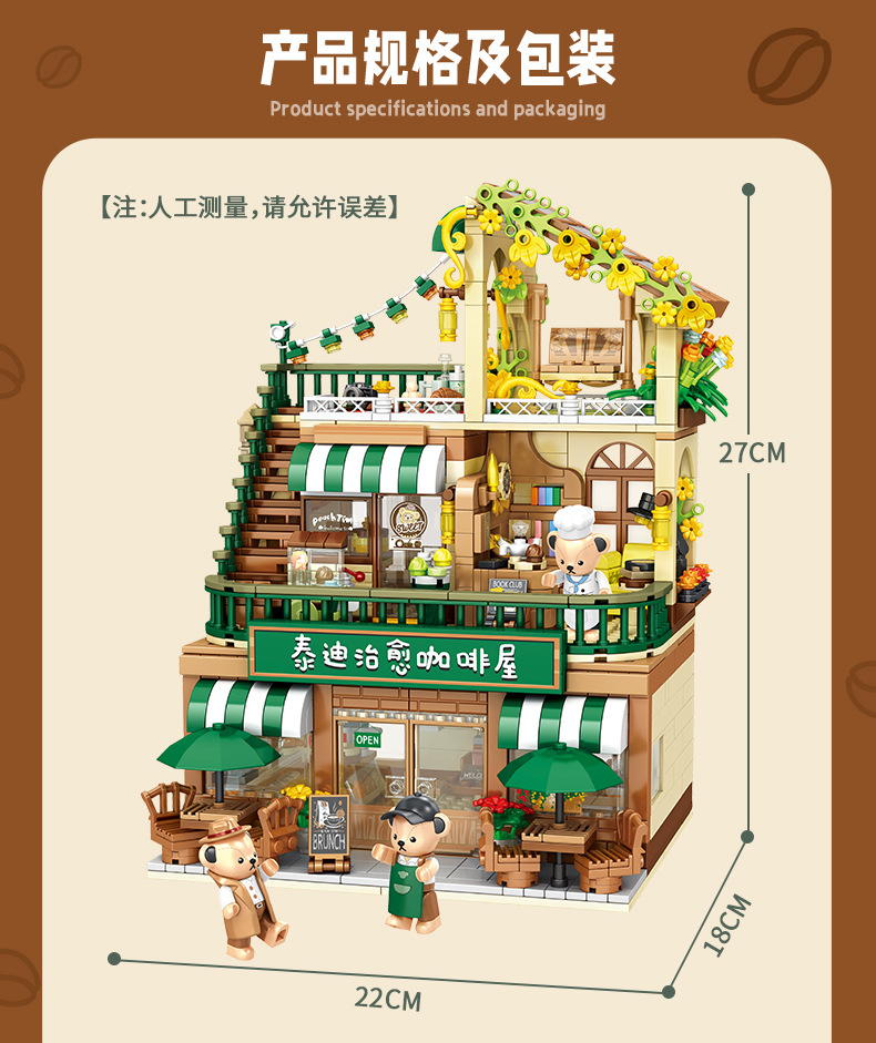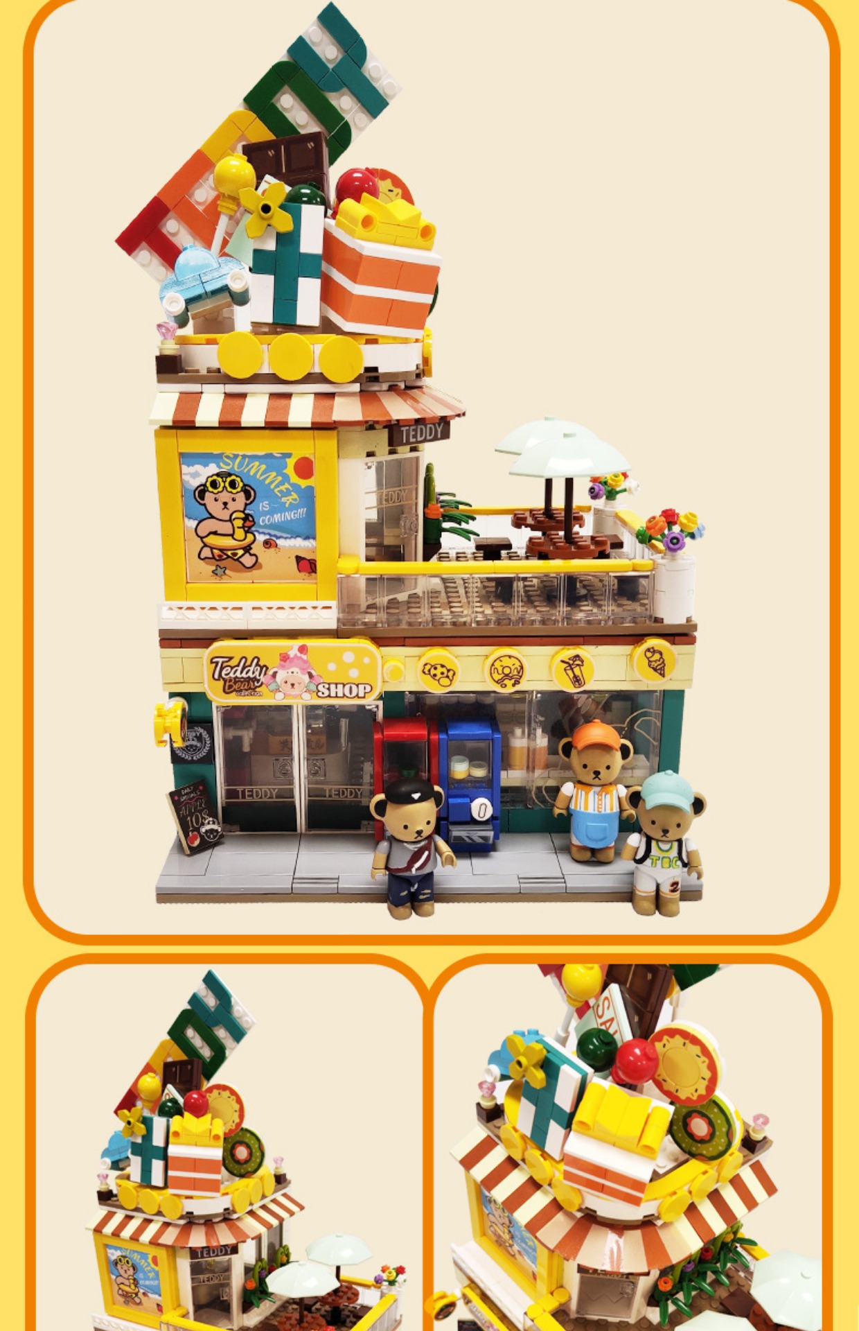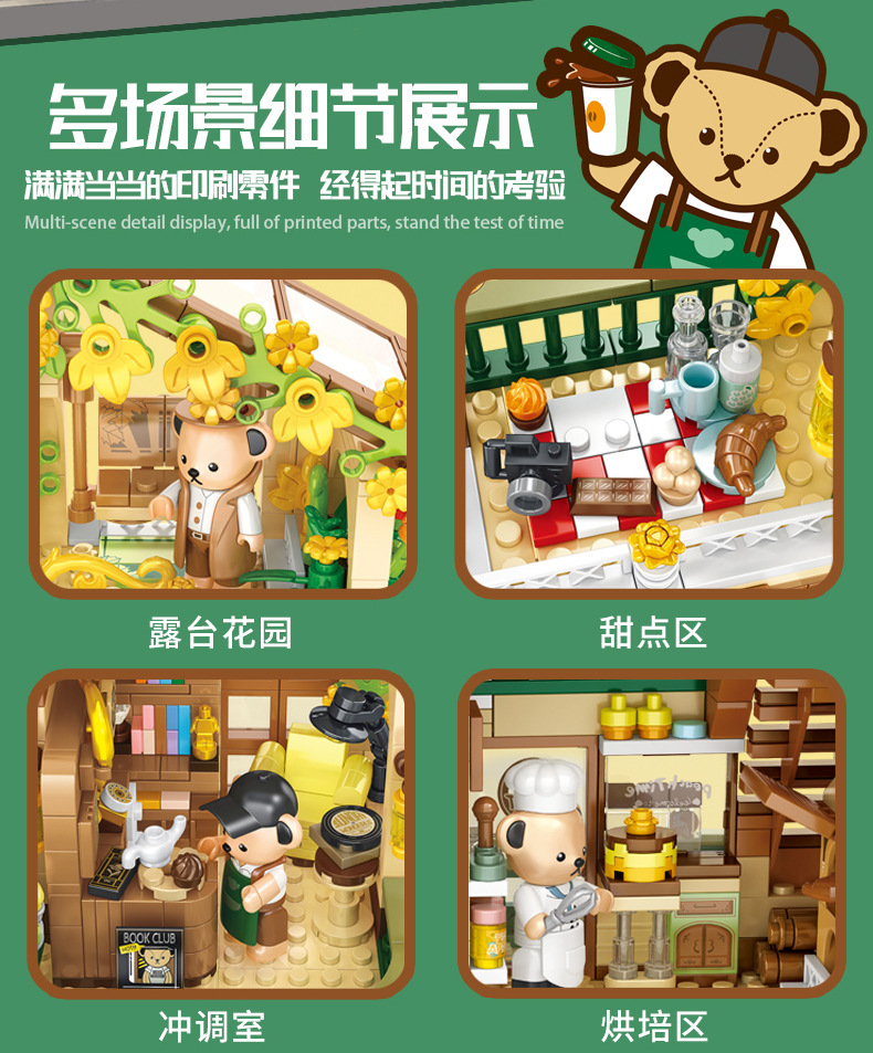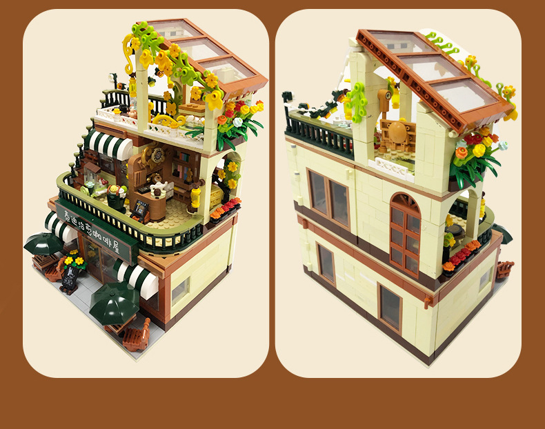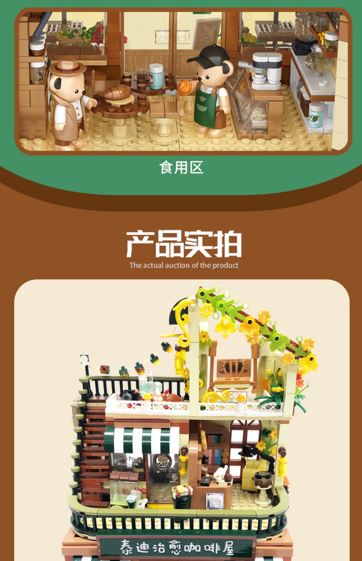 熊本熊街景积木日式小屋咖啡屋别墅模型女孩diy拼装儿童益智玩具