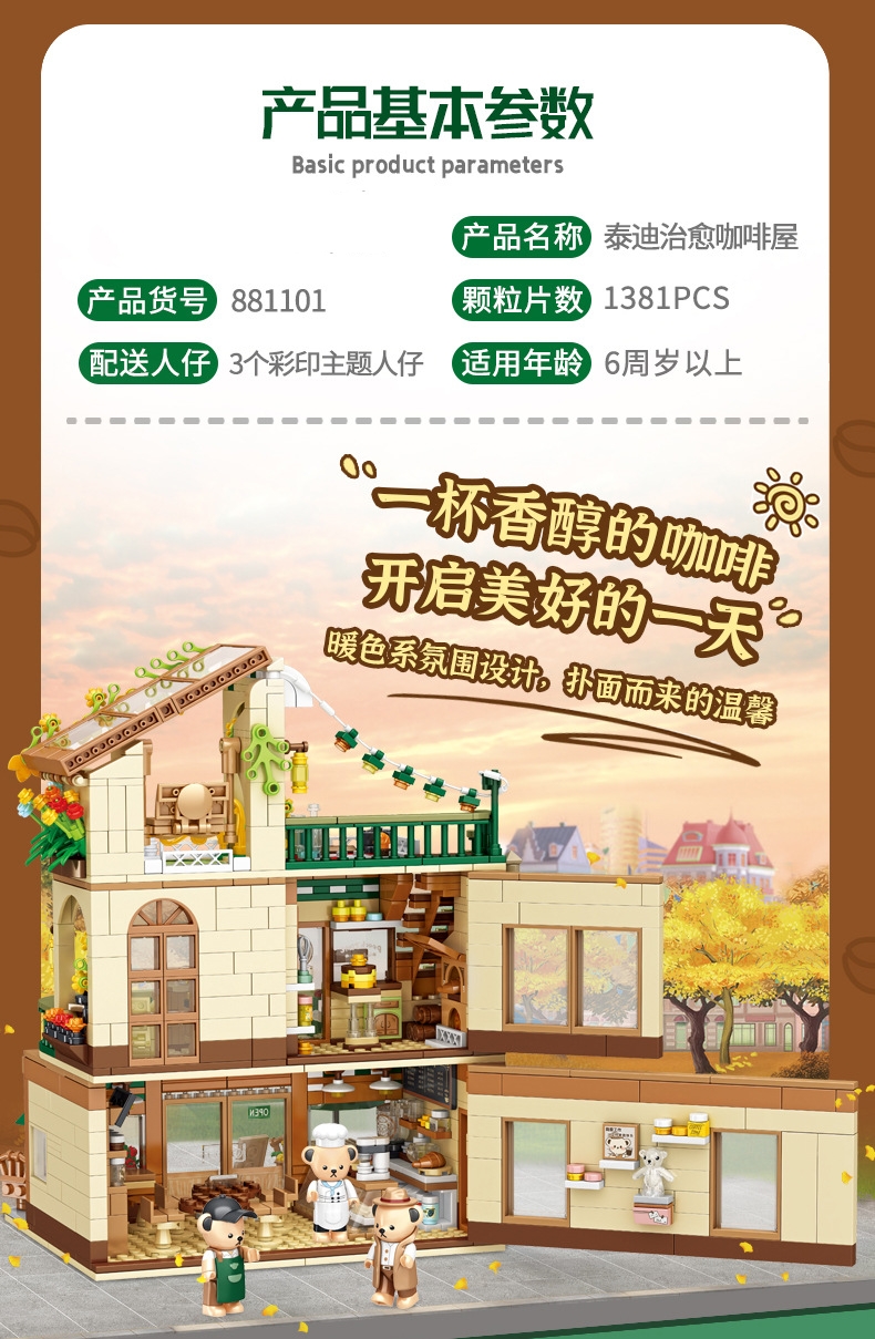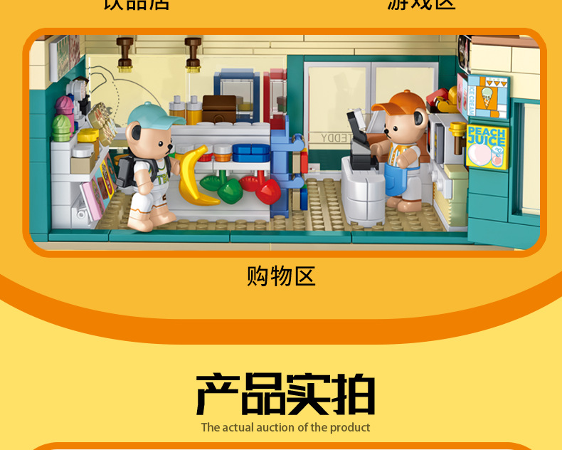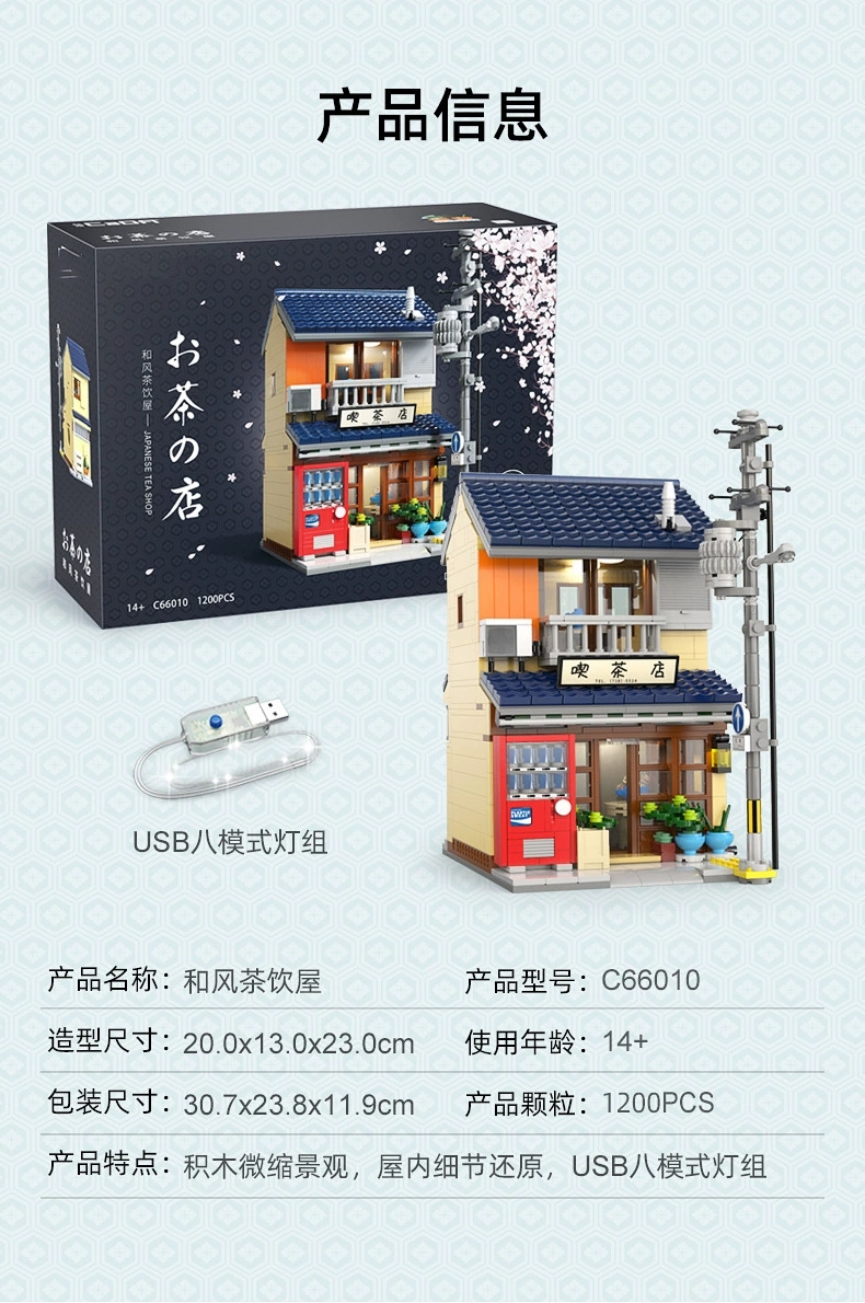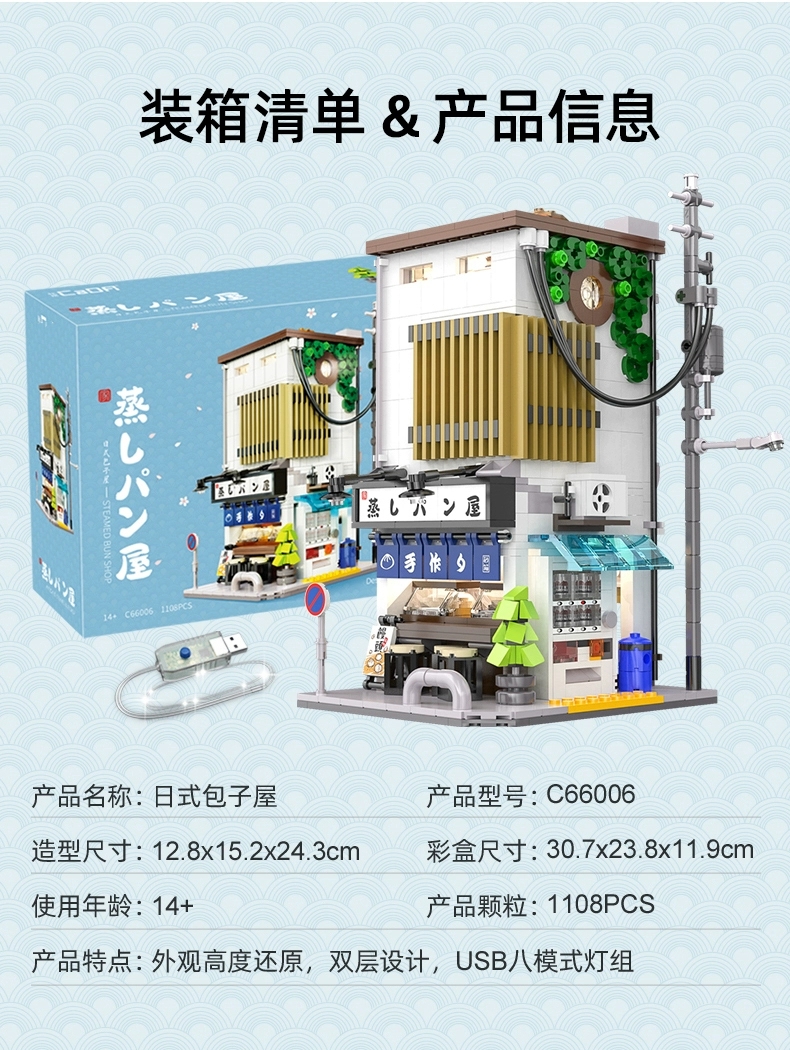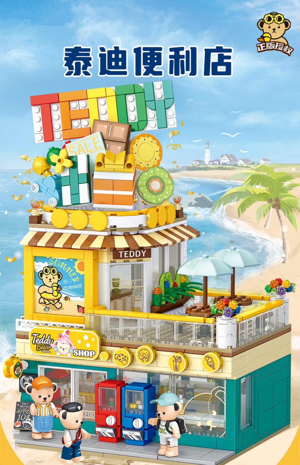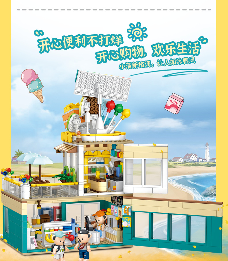 熊本熊街景积木日式小屋咖啡屋别墅模型女孩diy拼装儿童益智玩具