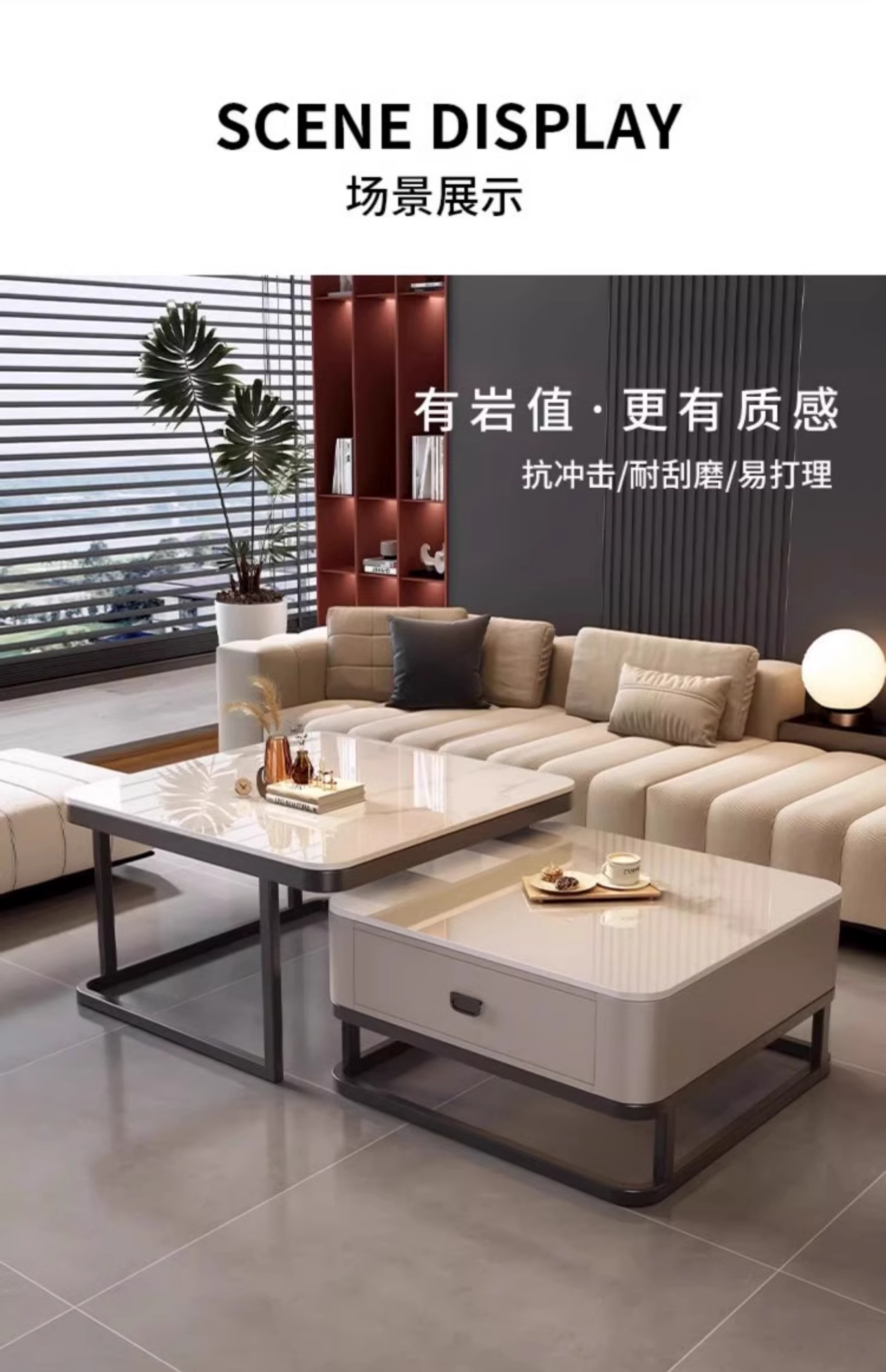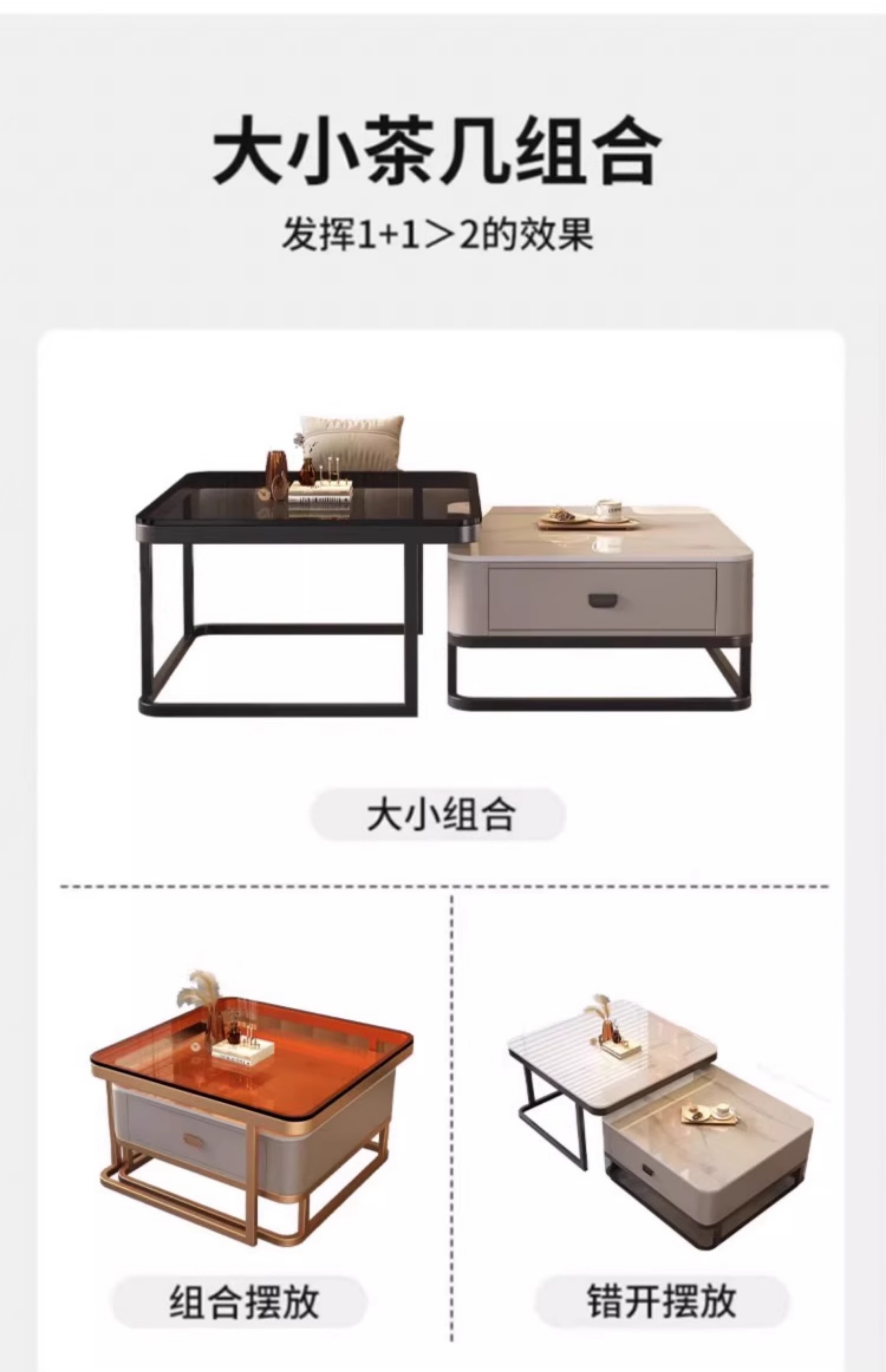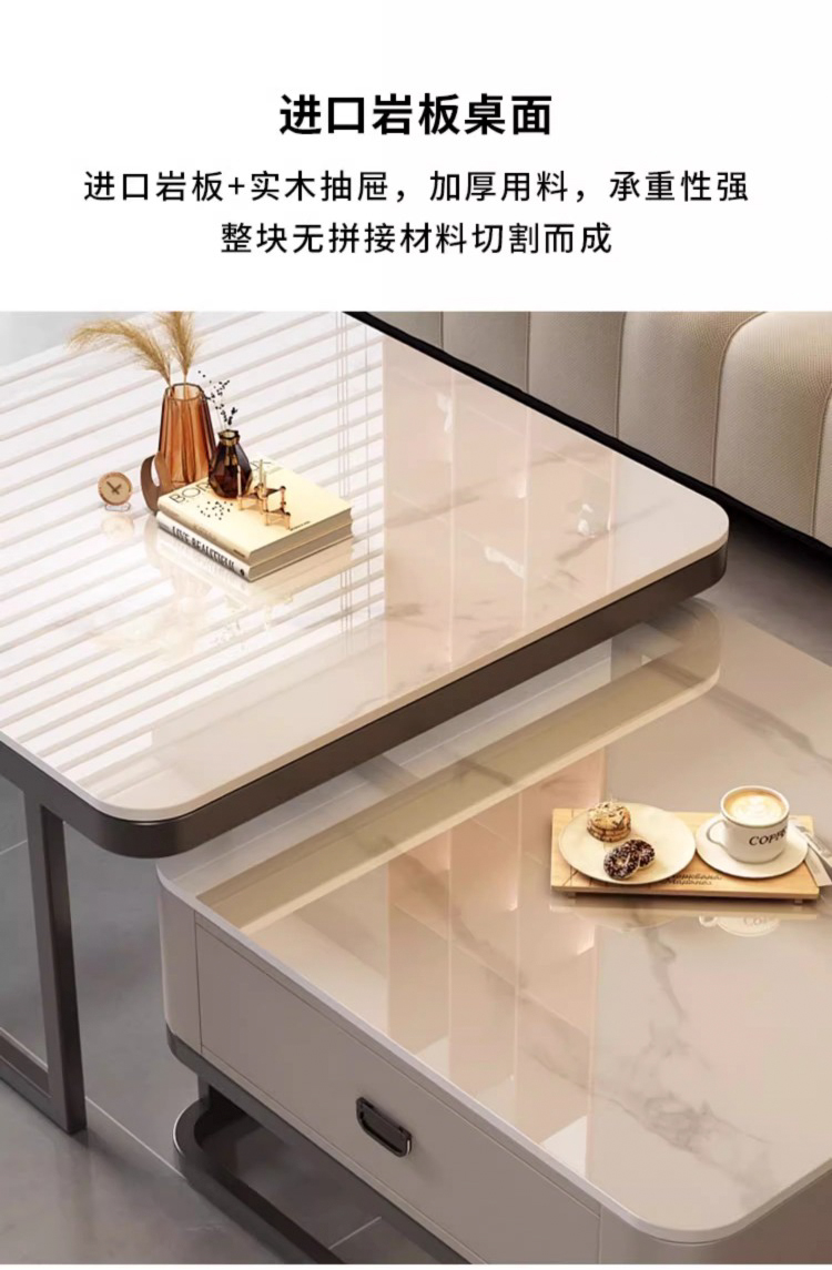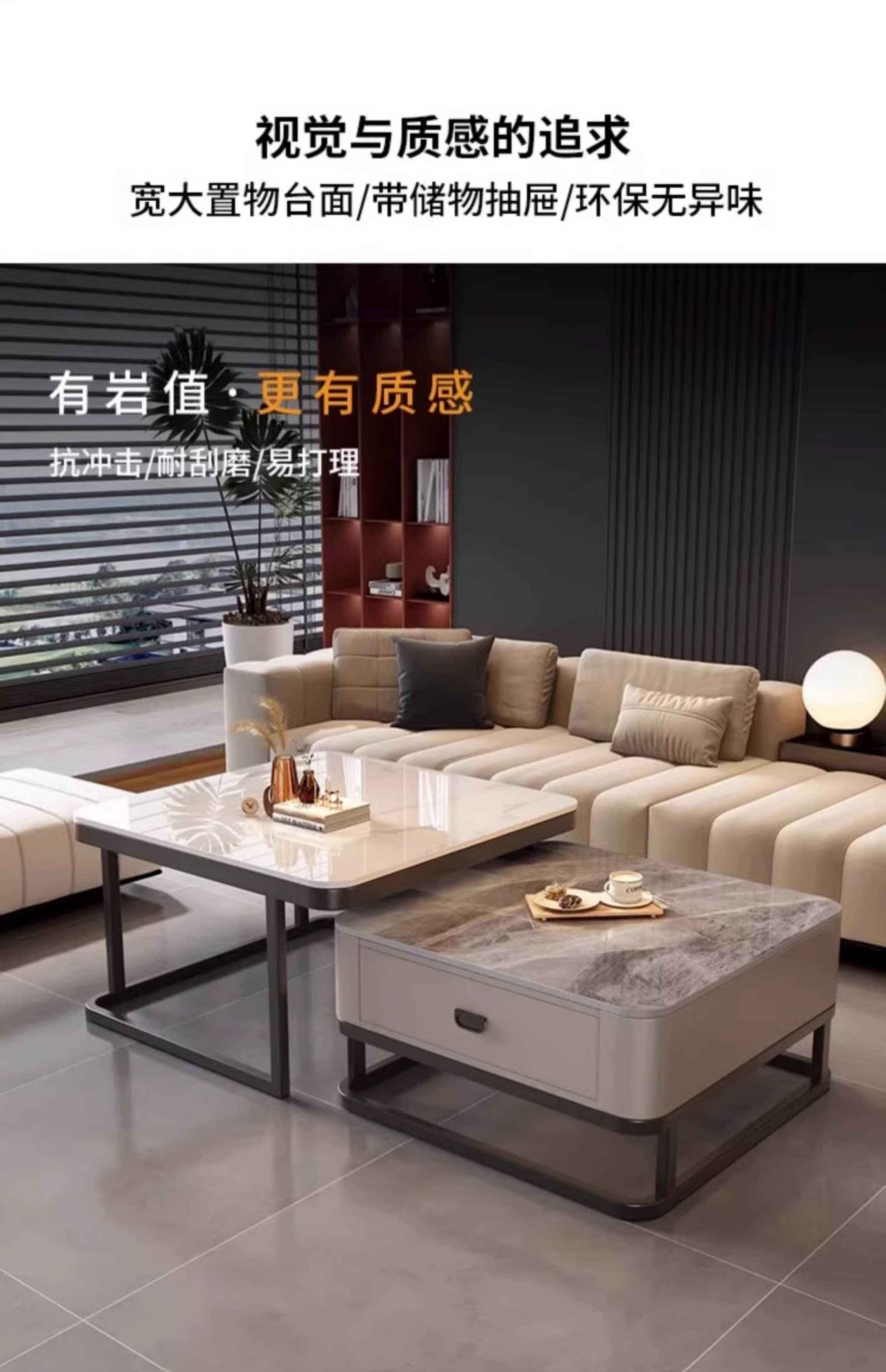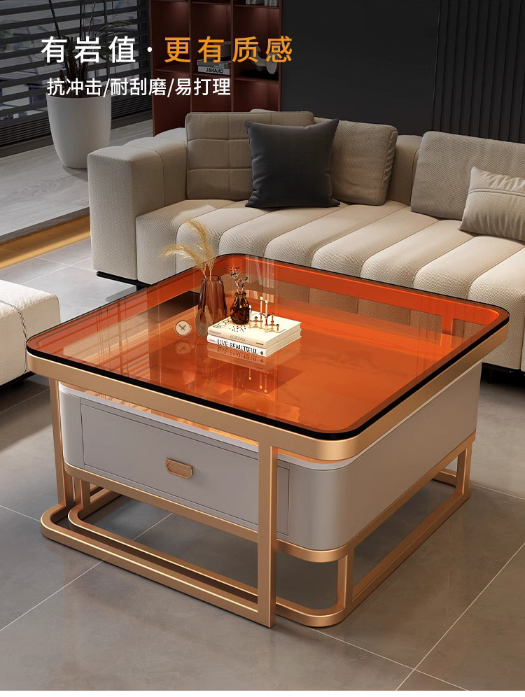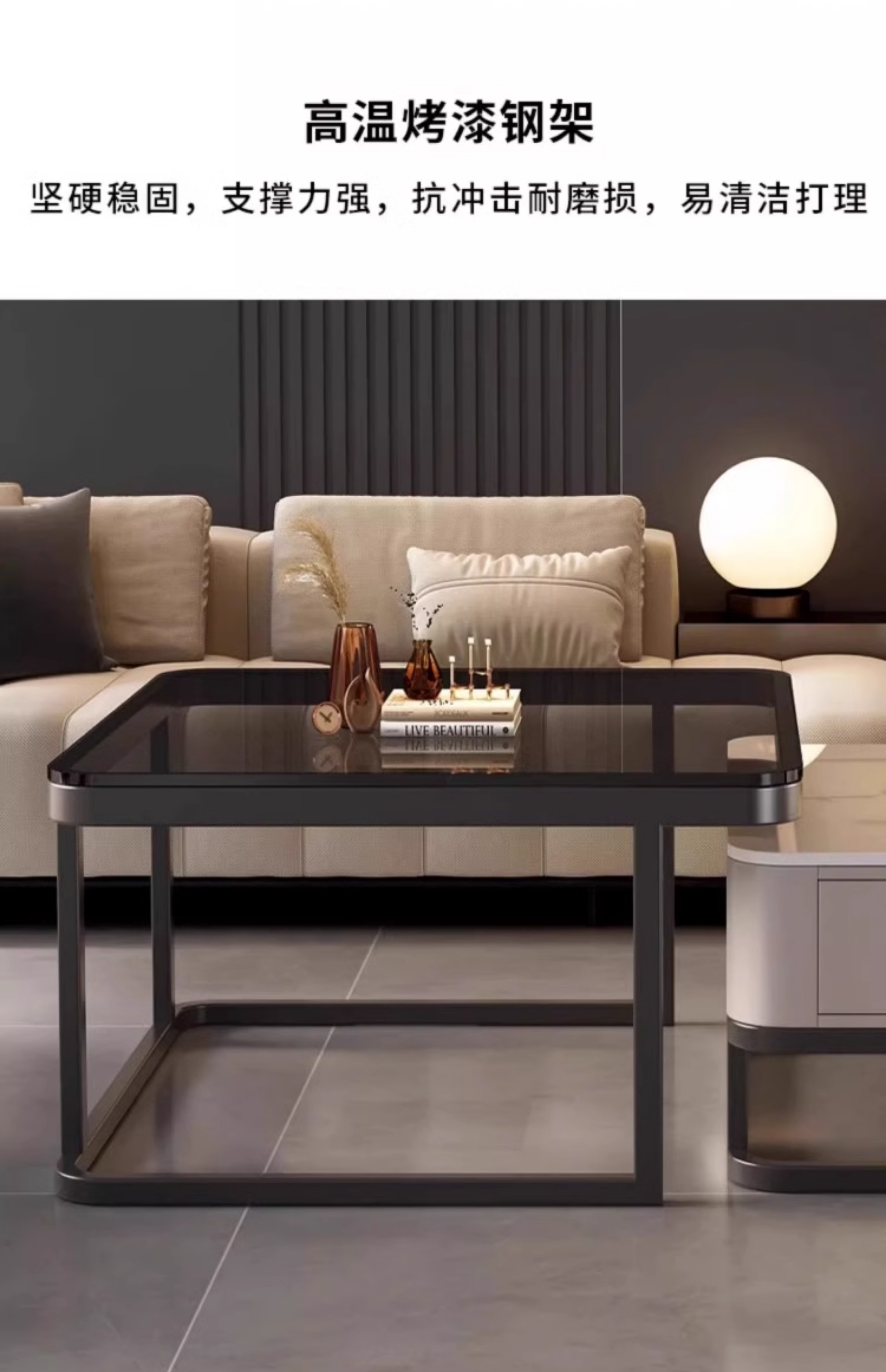 轻奢茶几客厅家用现代简约小户型2025新款网红方形岩板玻璃茶几桌
