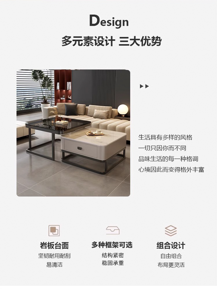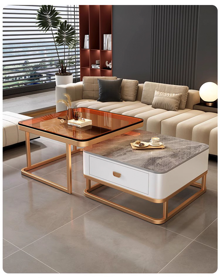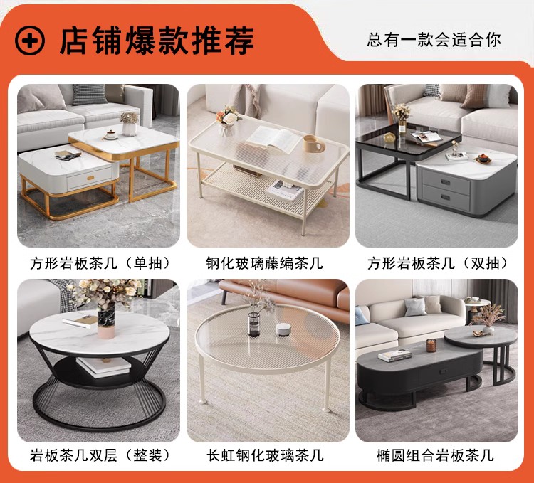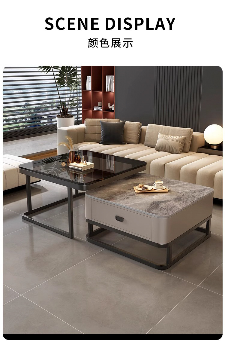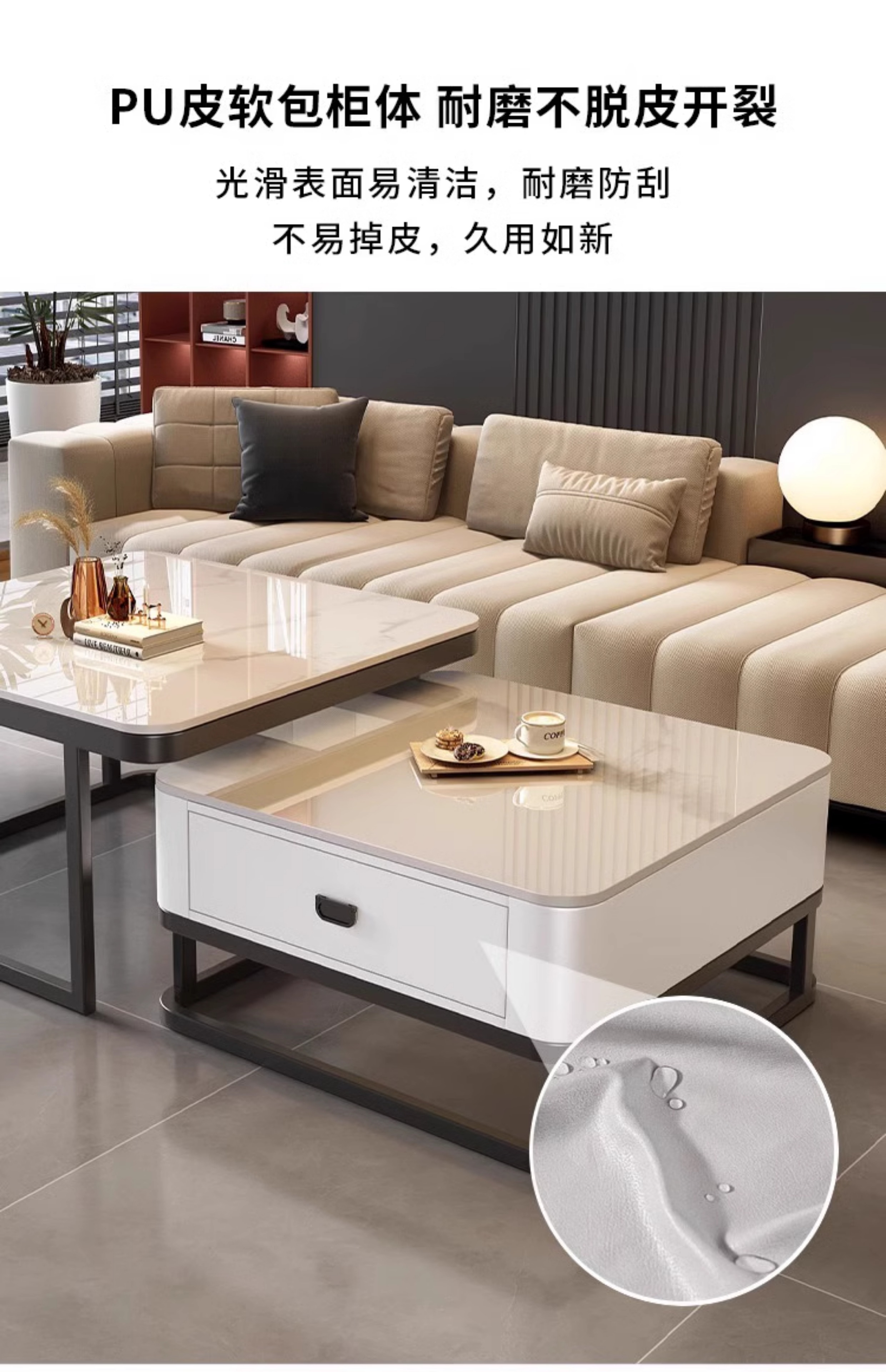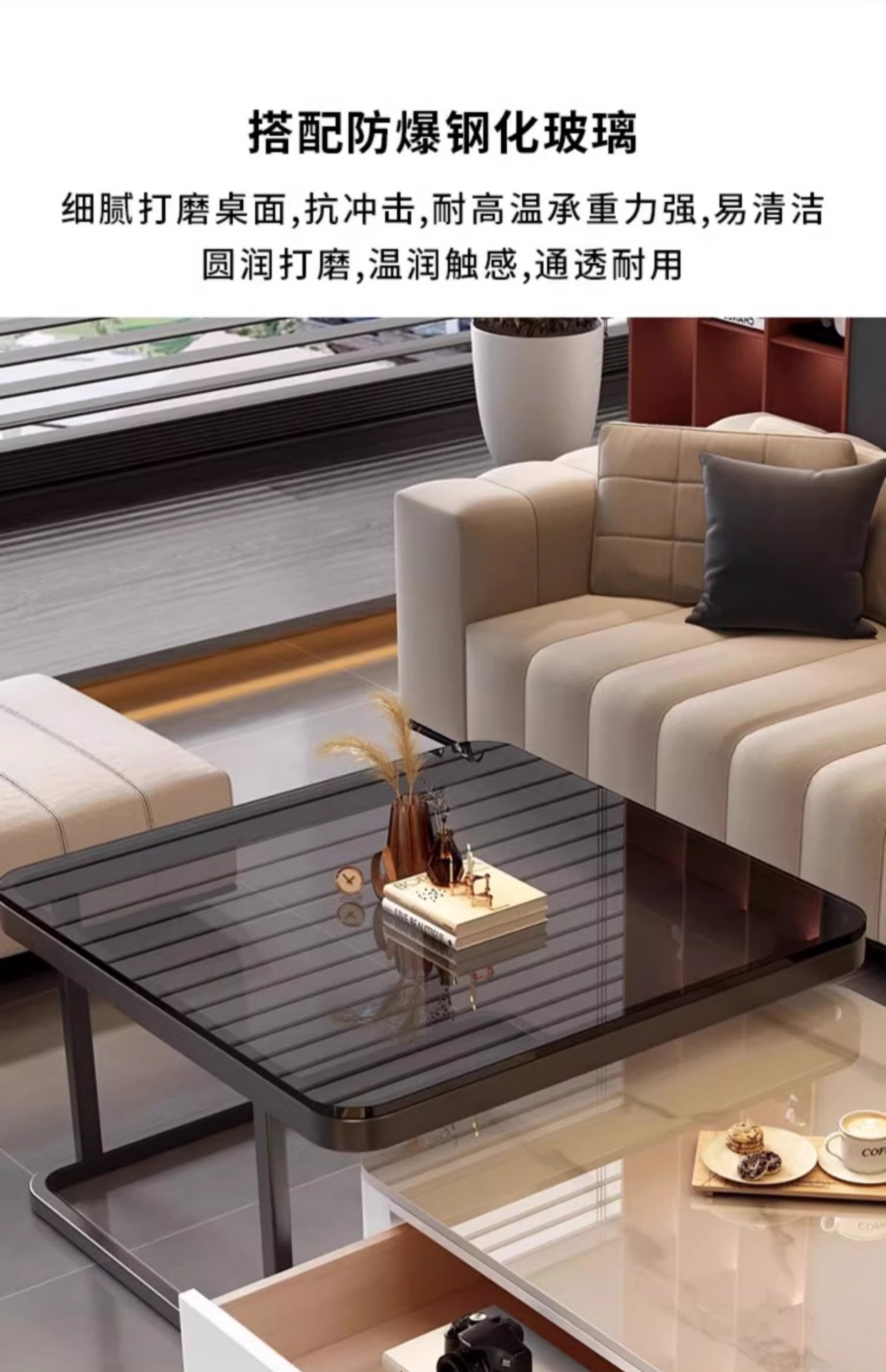 轻奢茶几客厅家用现代简约小户型2025新款网红方形岩板玻璃茶几桌