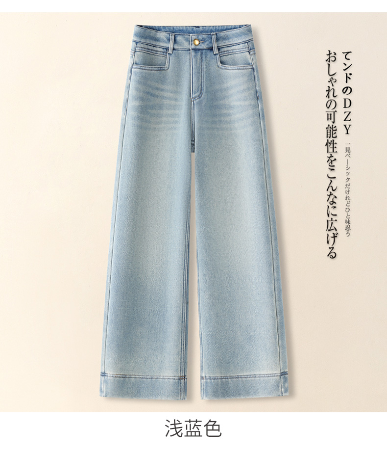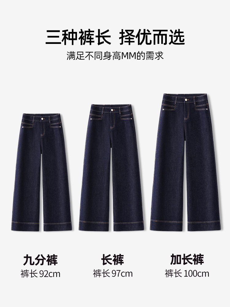 高端丹宁蓝牛仔裤女秋冬2025新款加绒小个子爆款九分直筒裤阔腿裤
