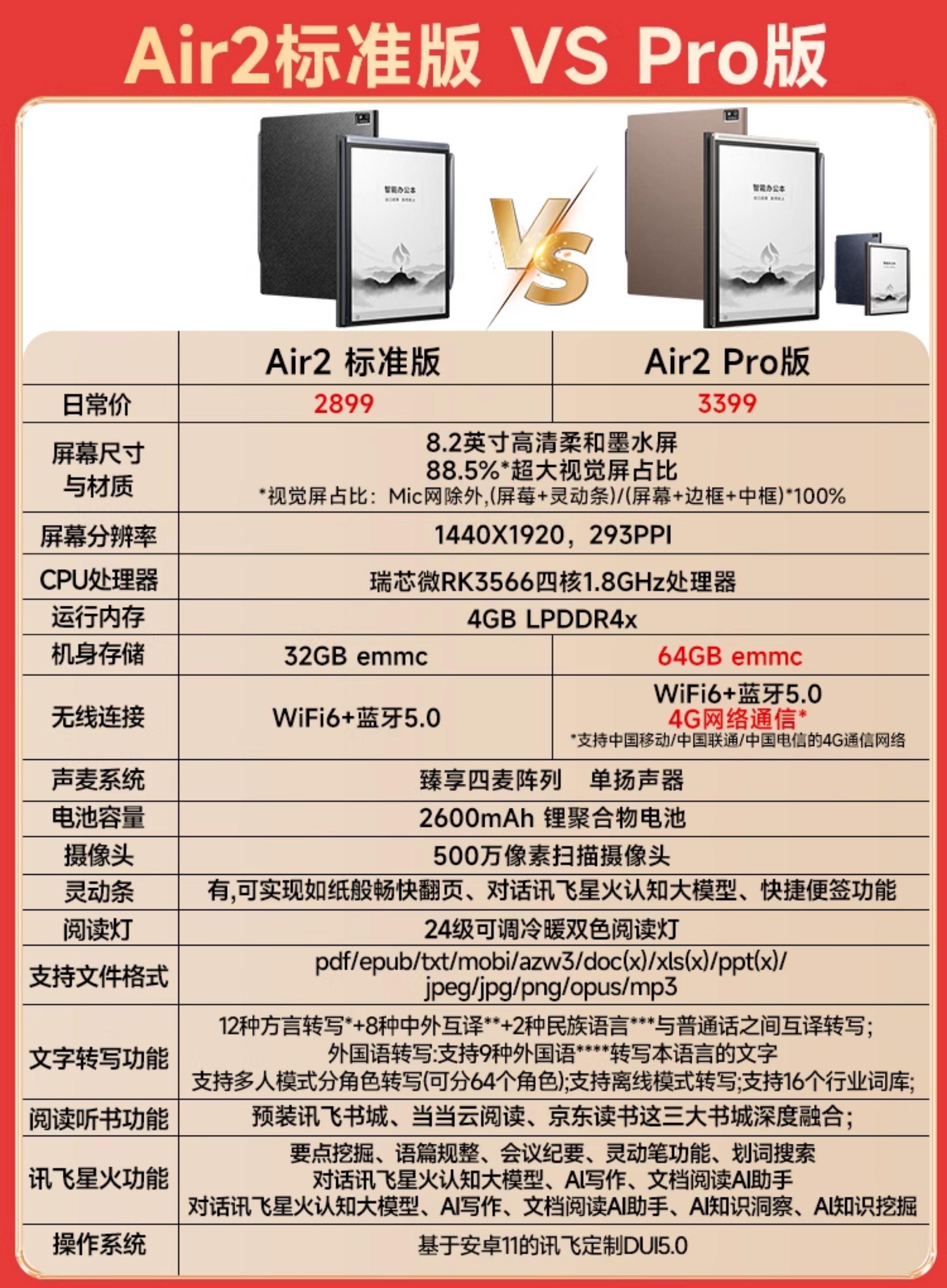 【咨询再减】科大讯飞智能办公本Air2Pro讯飞电子书手写记事本墨水墨屏平板电纸书会议记录语音转文字阅览器