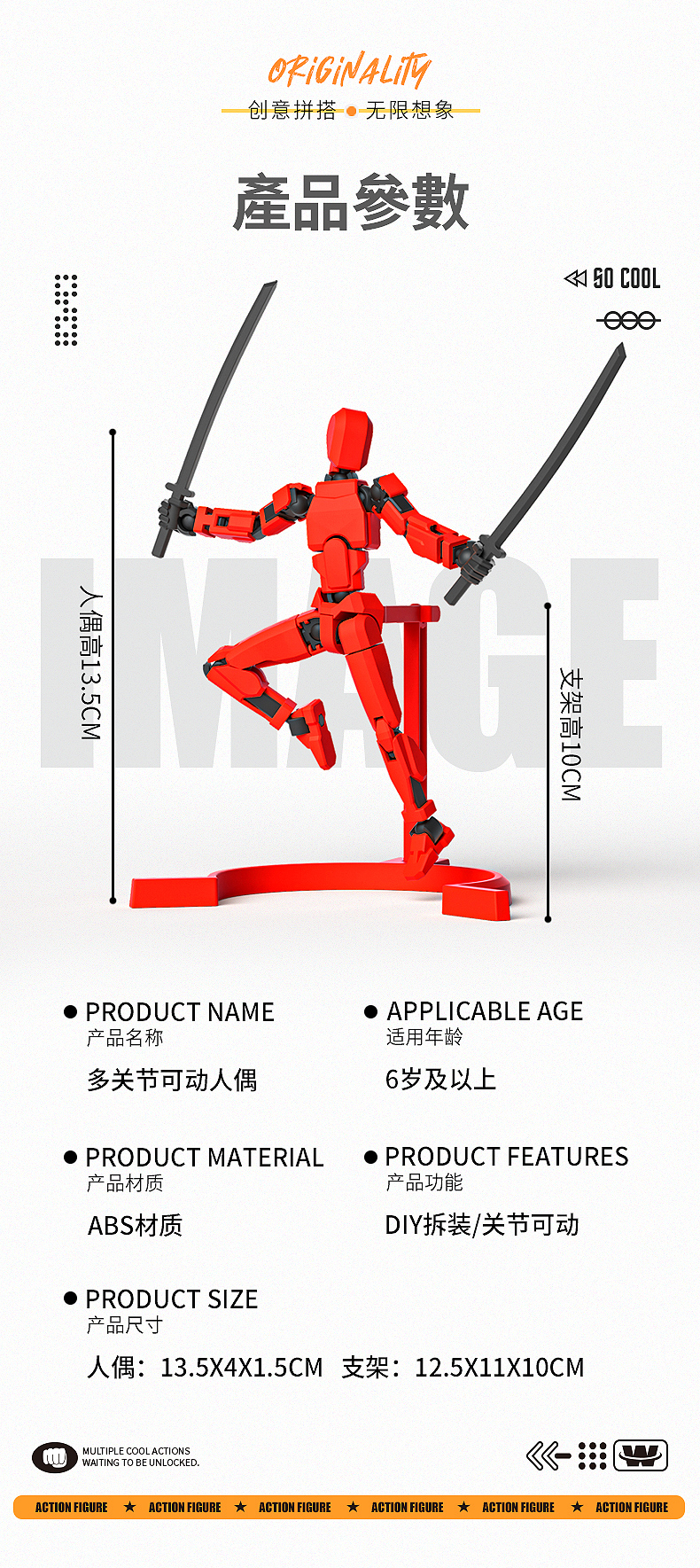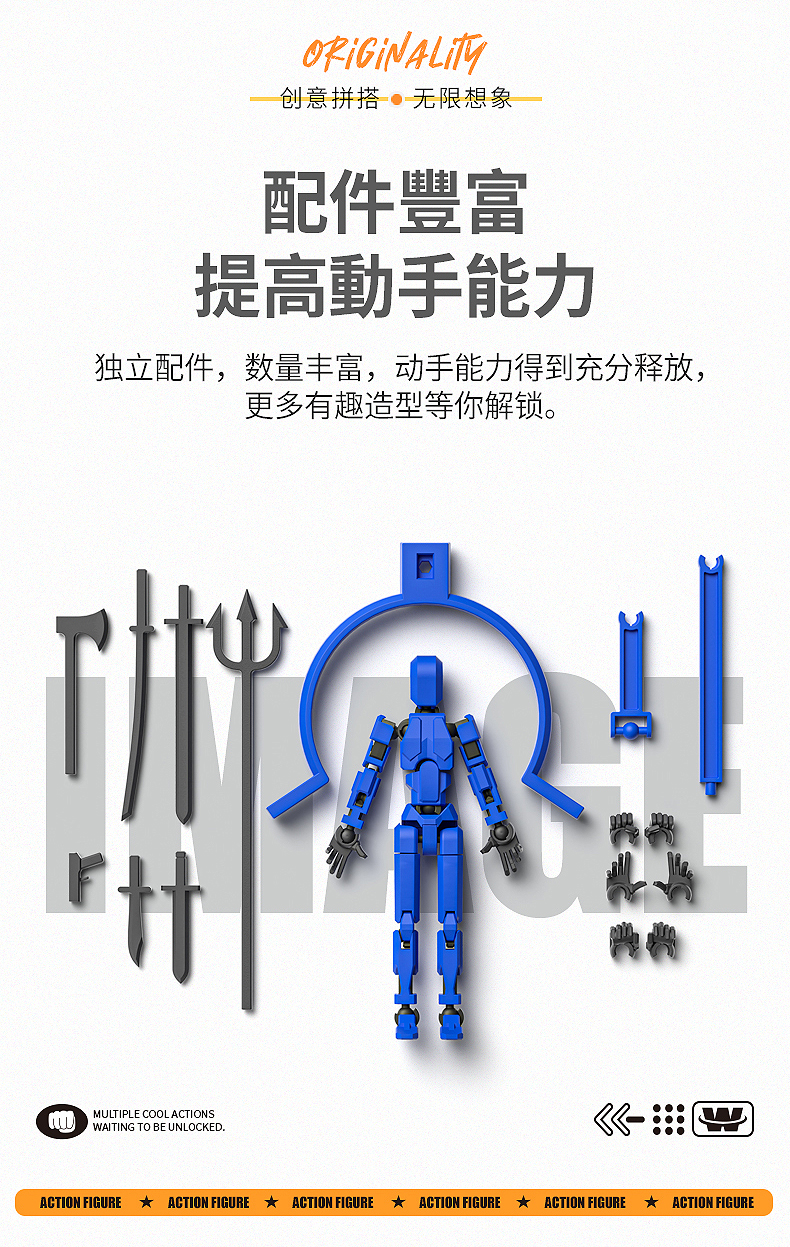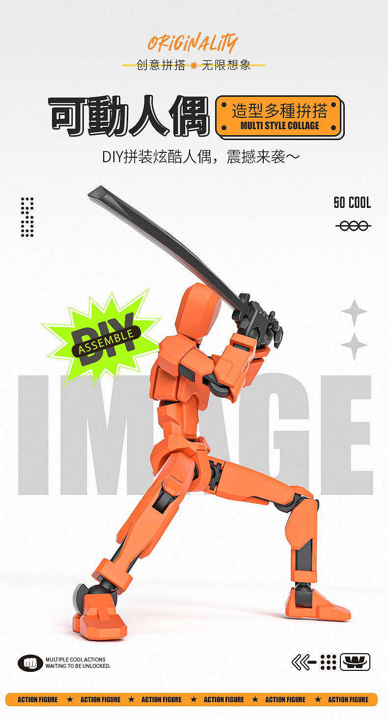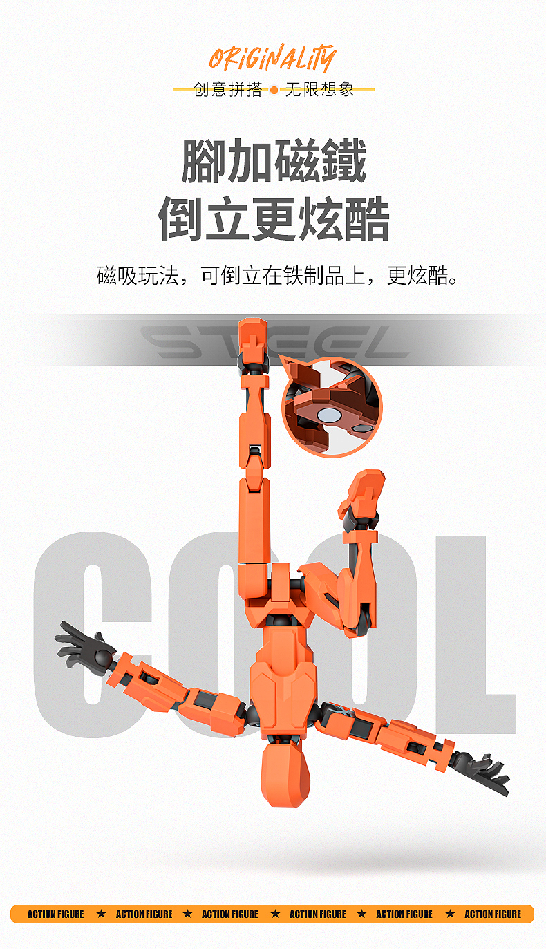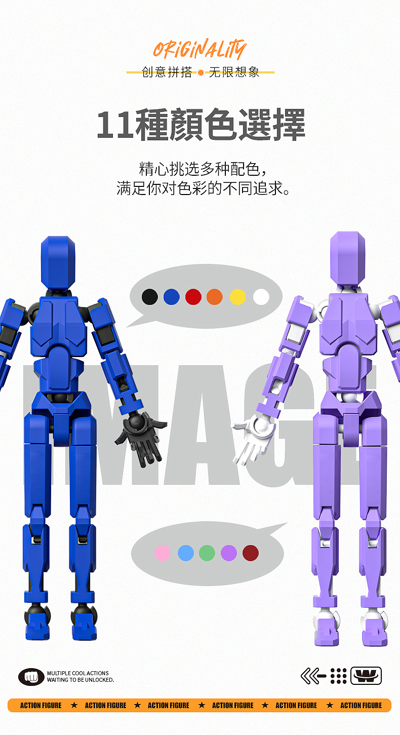 3d打印立体百变磁力多关节可动人偶dummy幸运13小人吸铁石玩具男