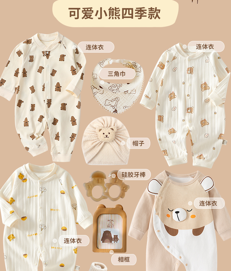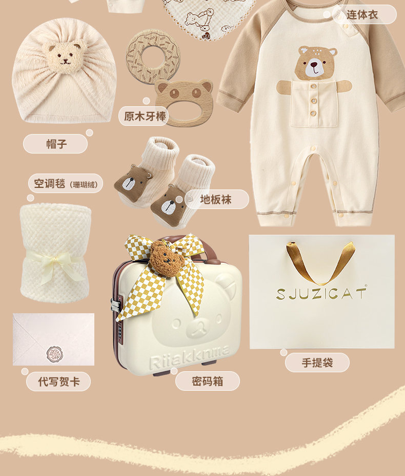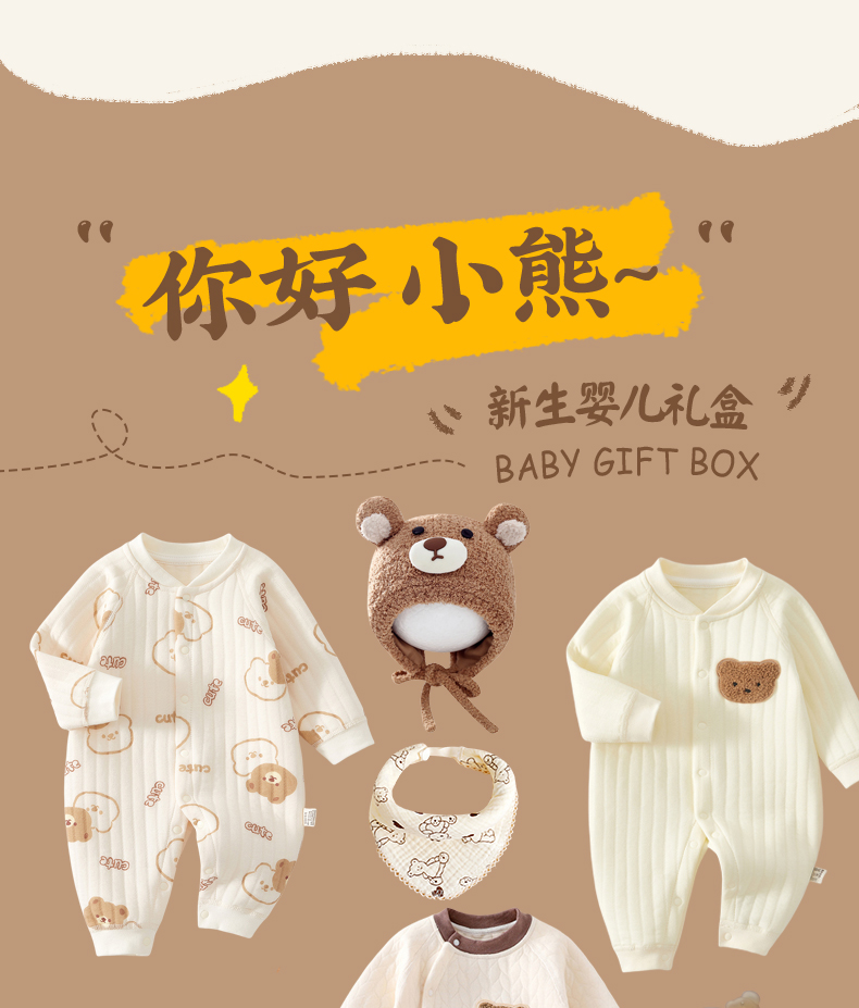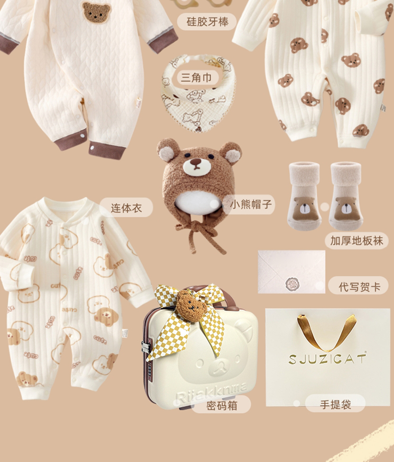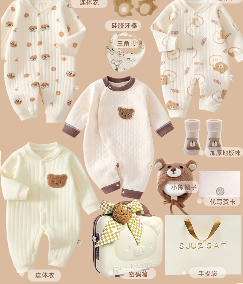 新生婴儿秋冬纯棉衣服套装刚出生宝宝满月见面礼物百岁周岁高档礼