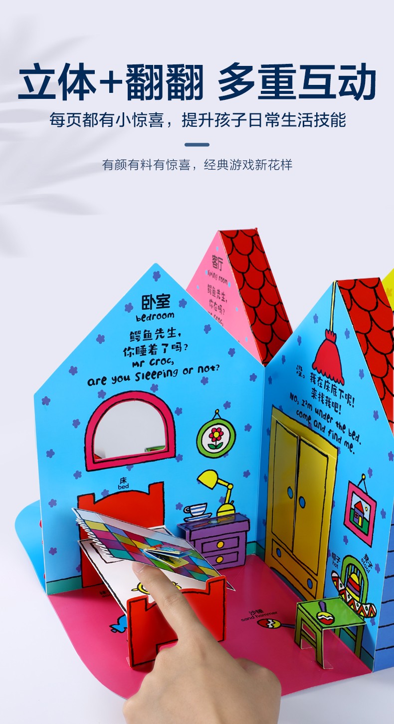 乐乐趣正品直发 鳄鱼先生立体游戏屋农场3d立体书0-3-6岁幼儿启蒙早教益智绘本宝宝机关房子送礼互动过家家益智游戏书配有鳄鱼玩偶