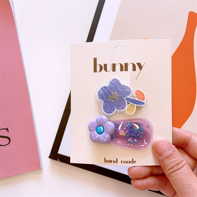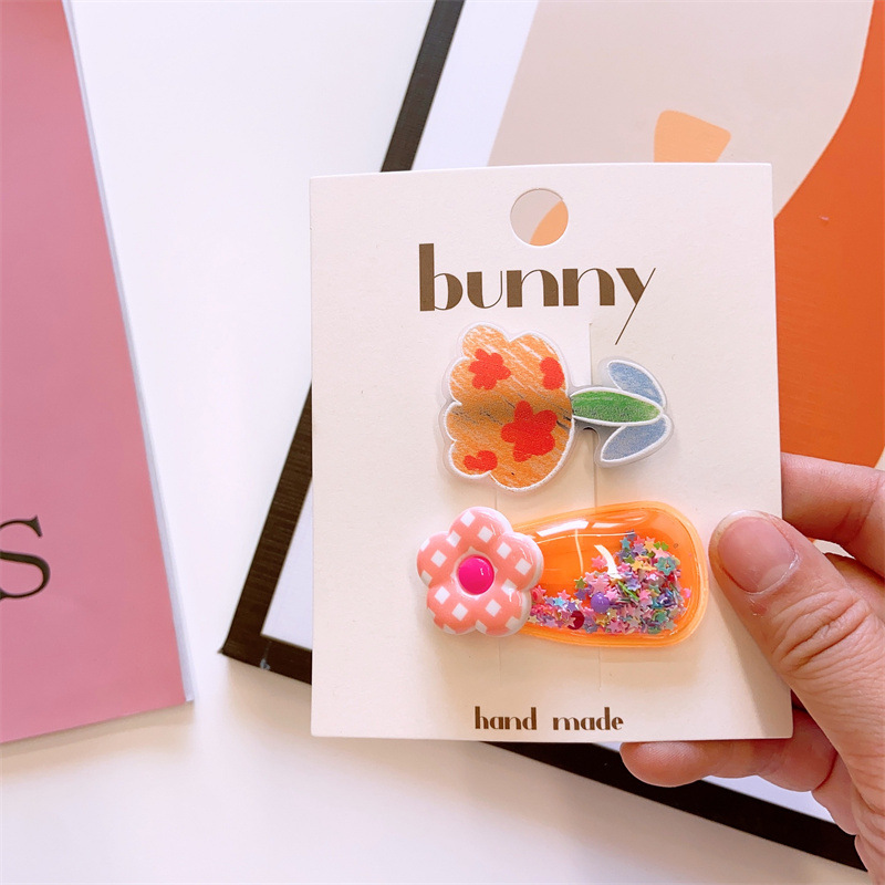 韩国新款夏日新款板材印花花朵发夹女童葱粉闪亮BB夹2件发饰头饰