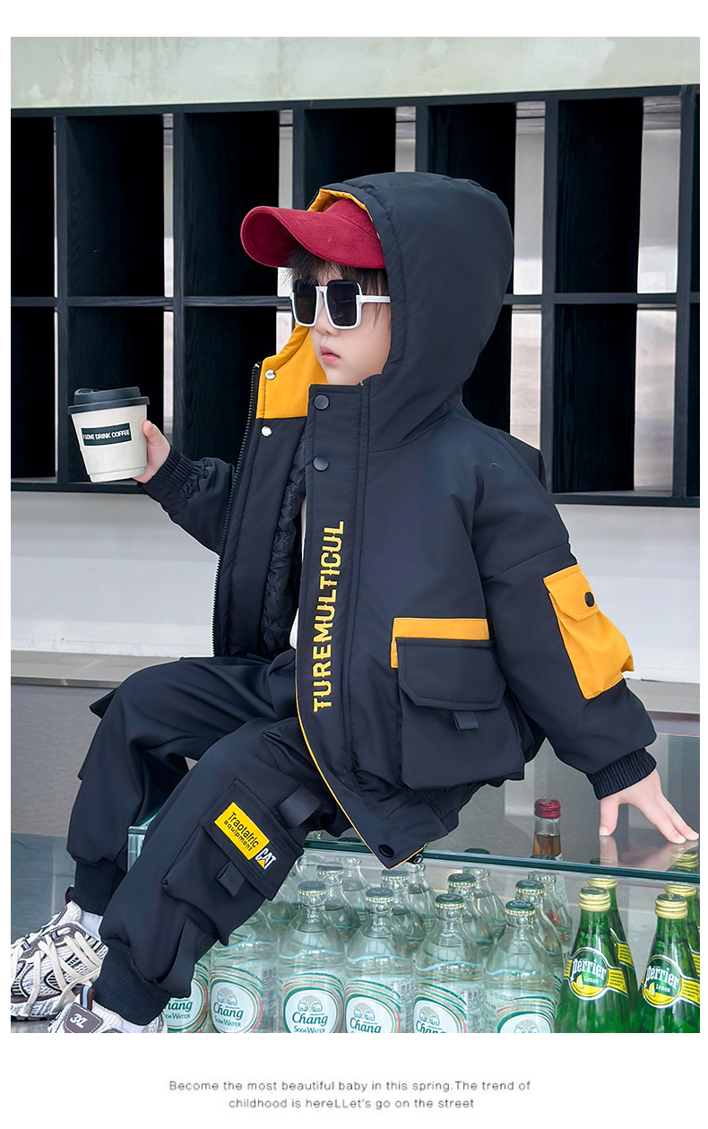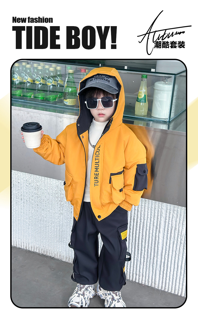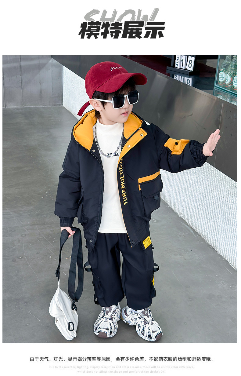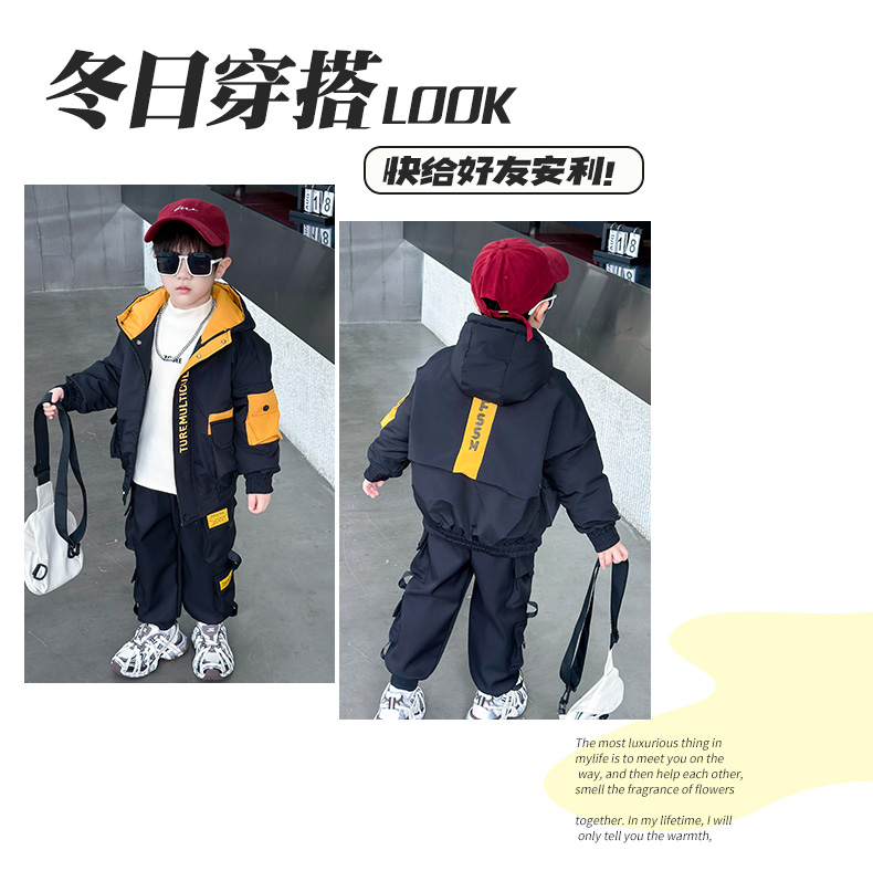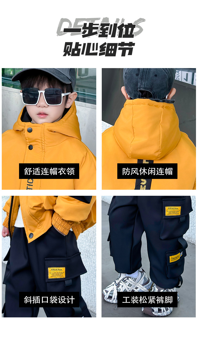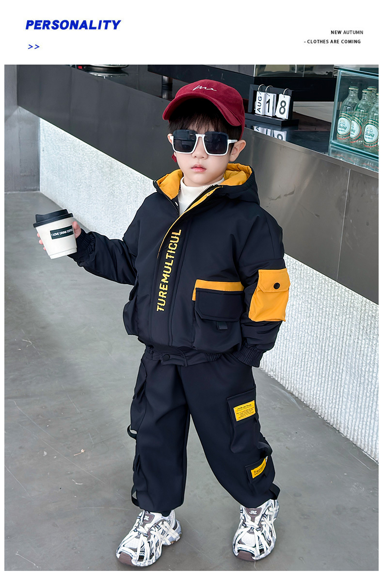 男童套装秋冬2025新款帅气儿童冬装男孩工装外套宝宝加绒两件套潮