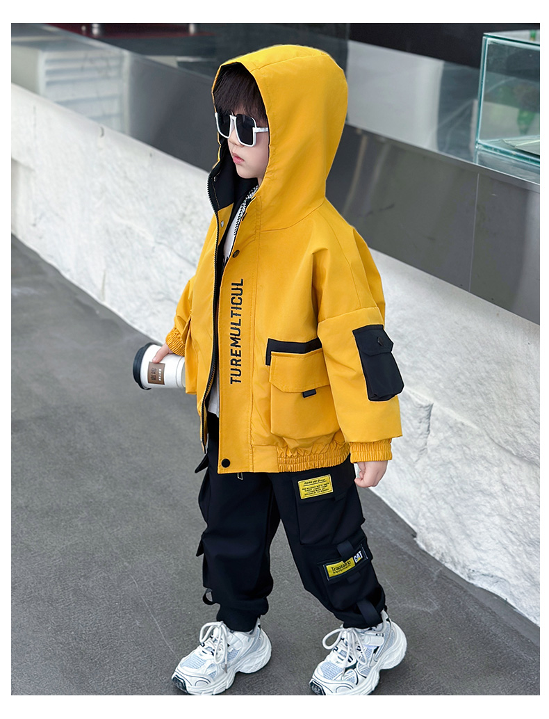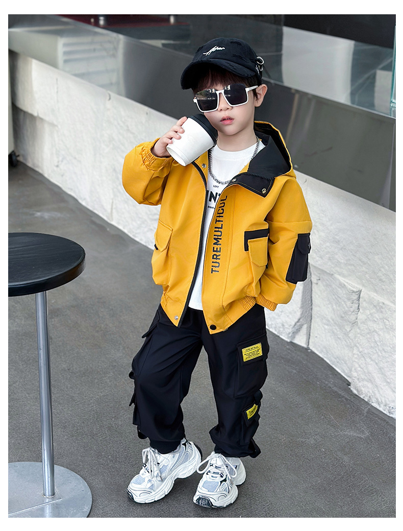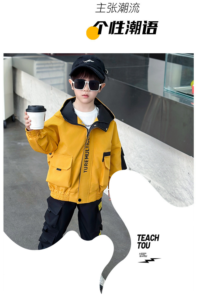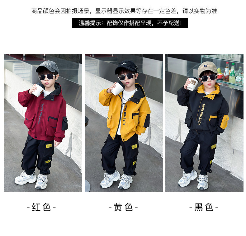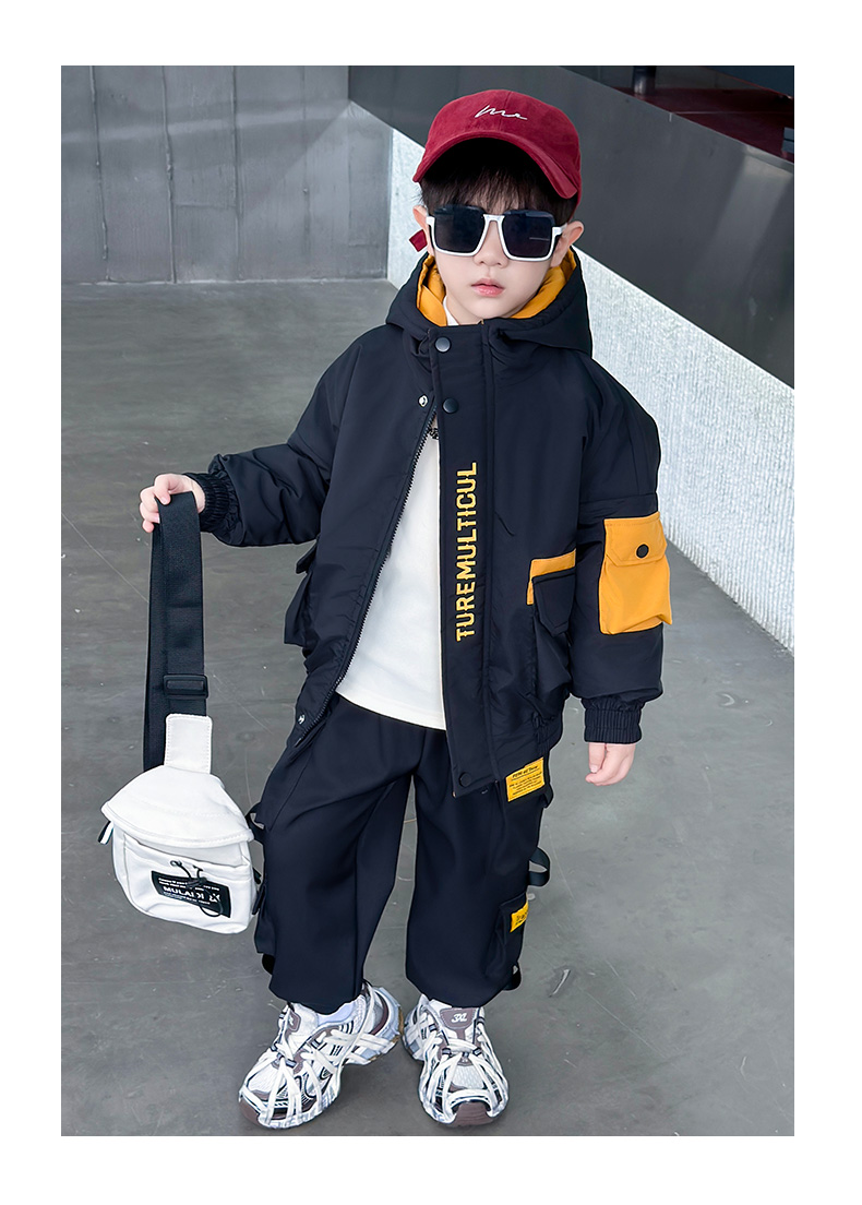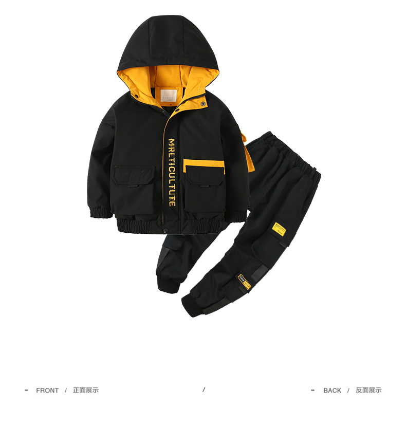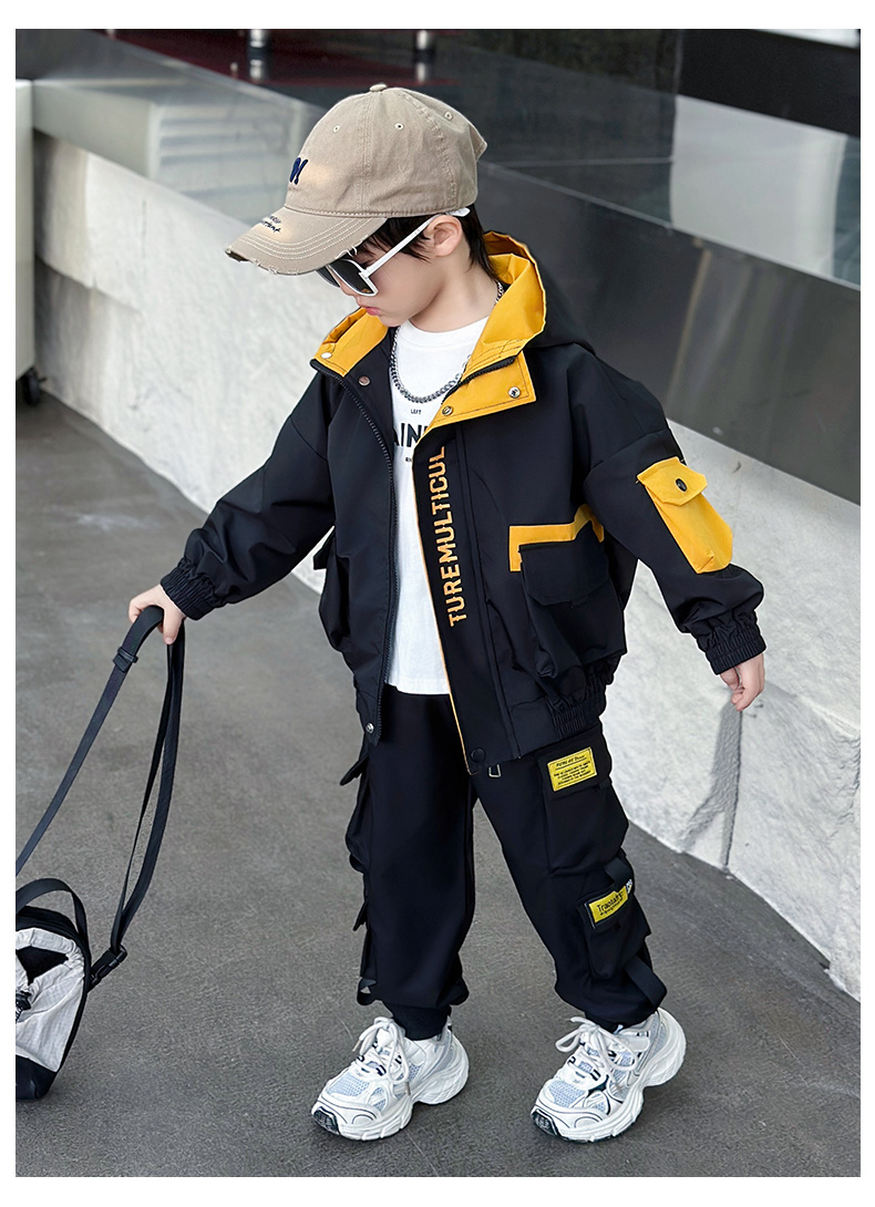 男童套装秋冬2025新款帅气儿童冬装男孩工装外套宝宝加绒两件套潮