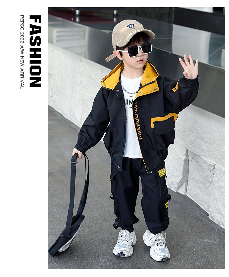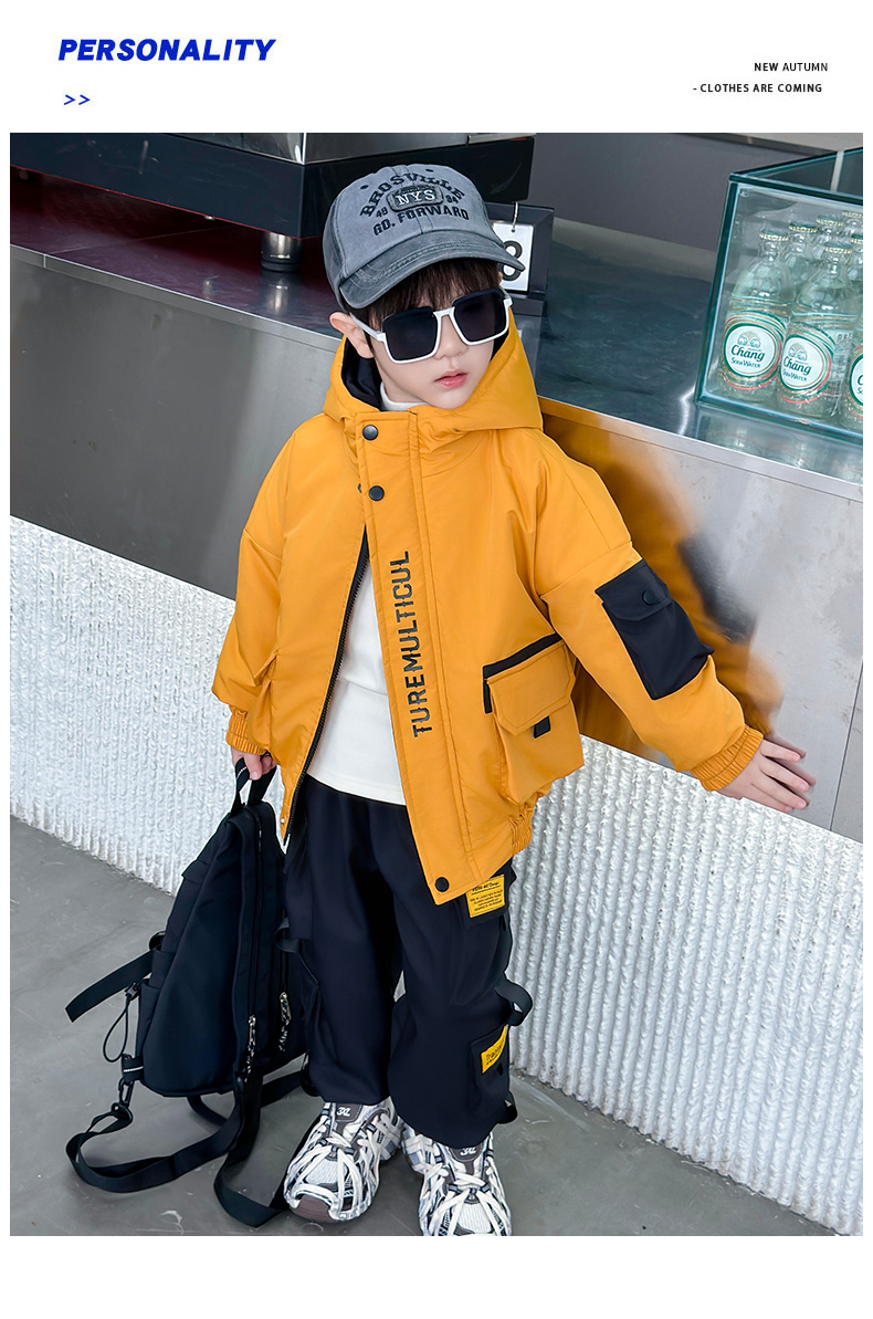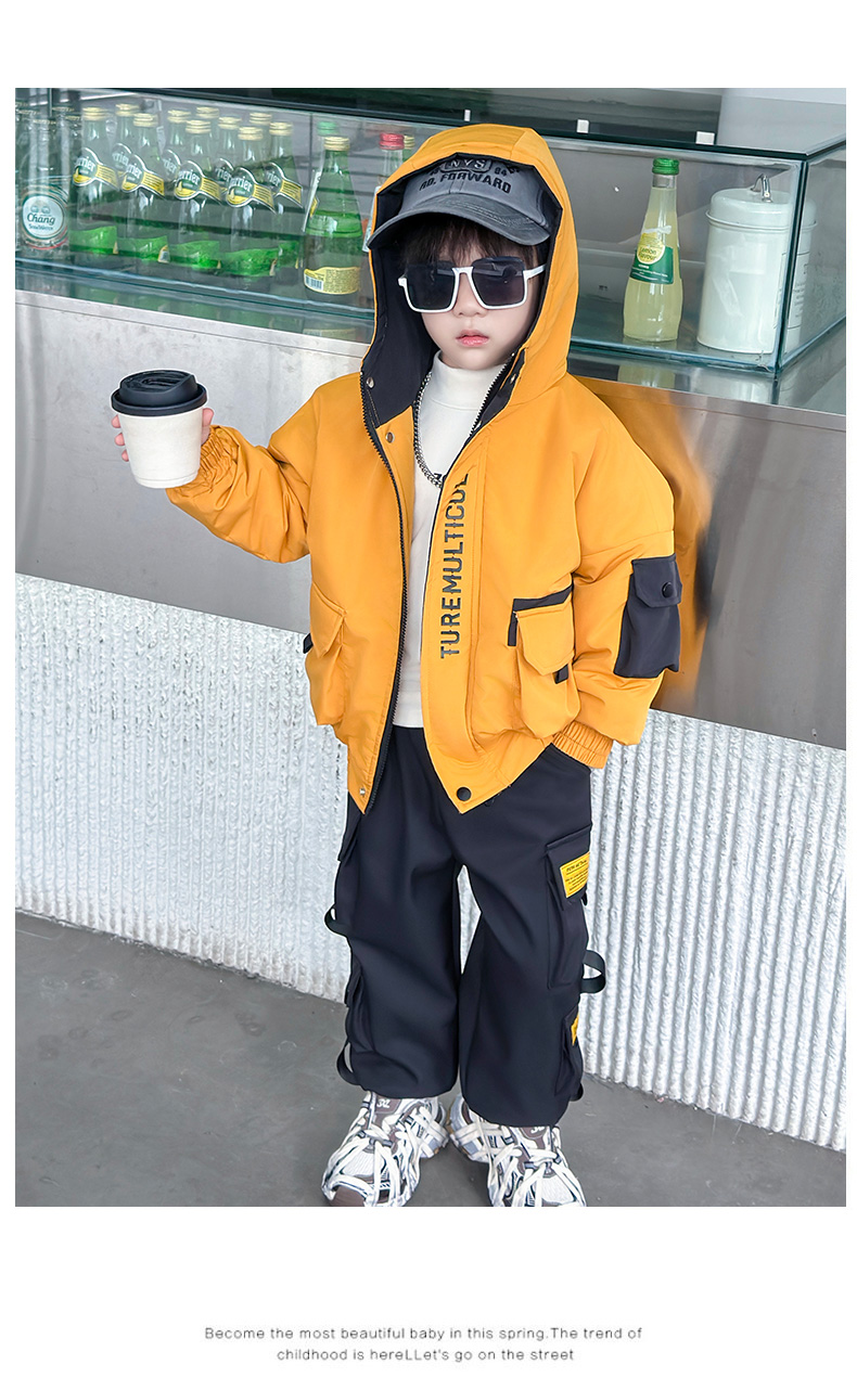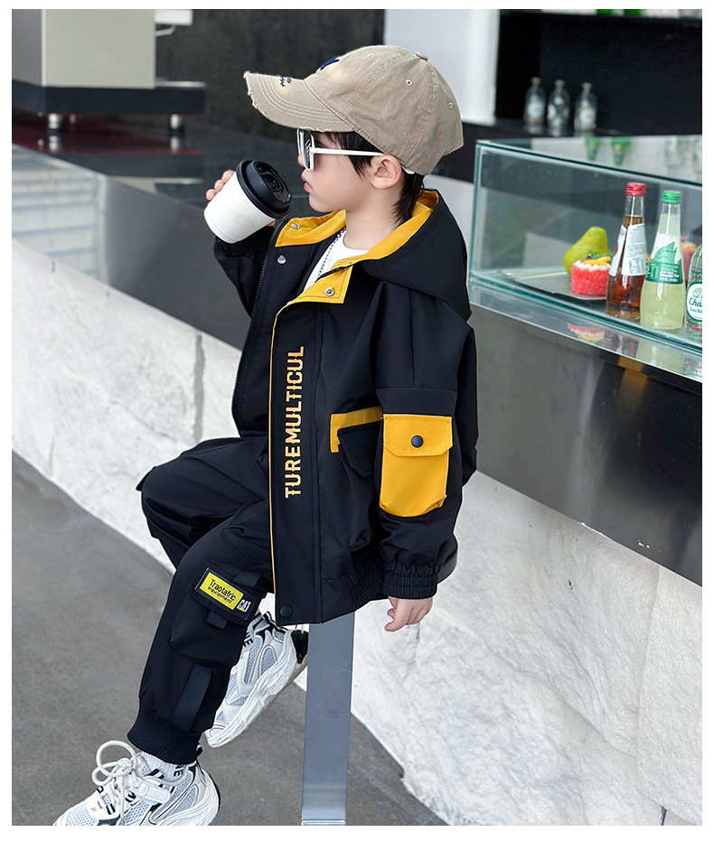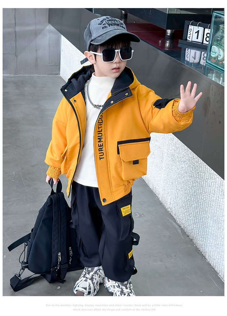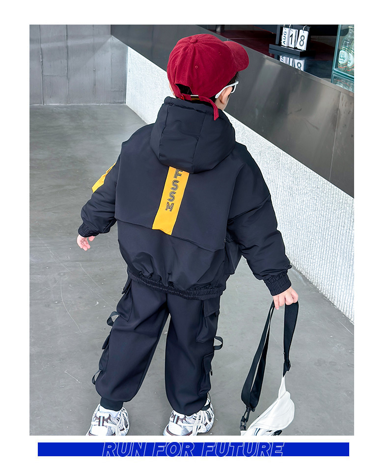 男童套装秋冬2025新款帅气儿童冬装男孩工装外套宝宝加绒两件套潮