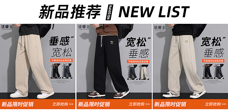 弯刀卫裤男士宽松男裤春秋款2025新款秋季直筒男款休闲长裤子男生
