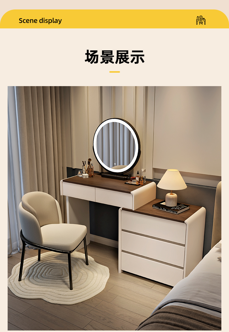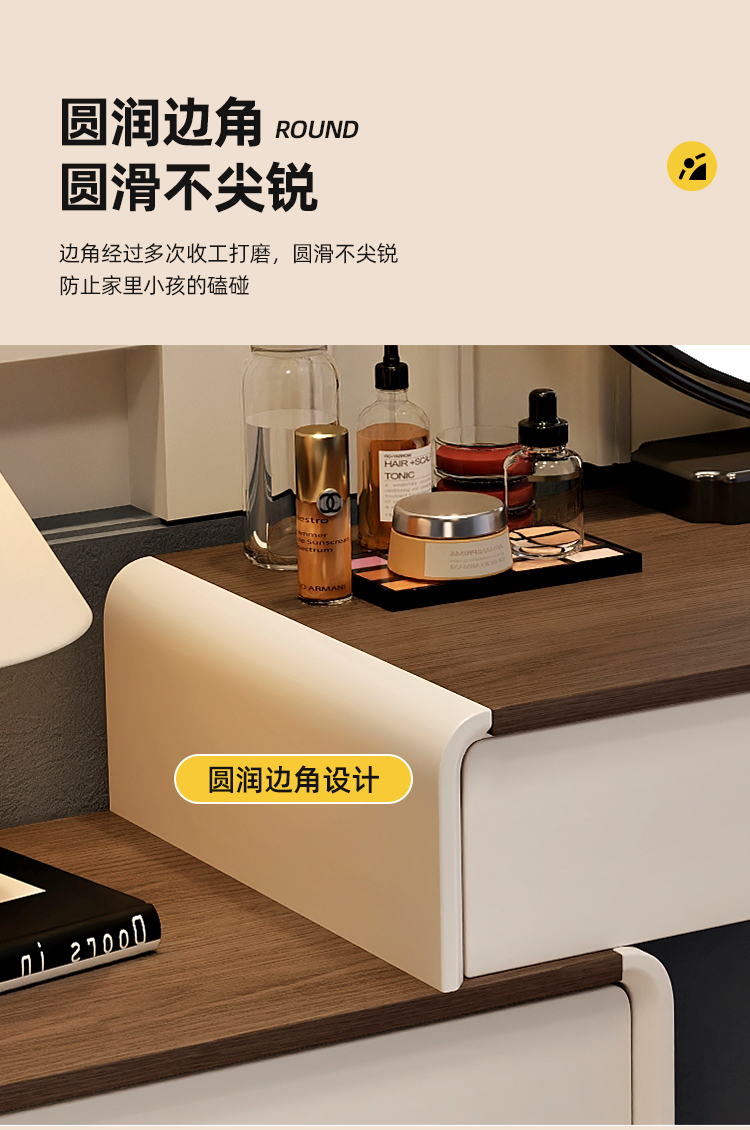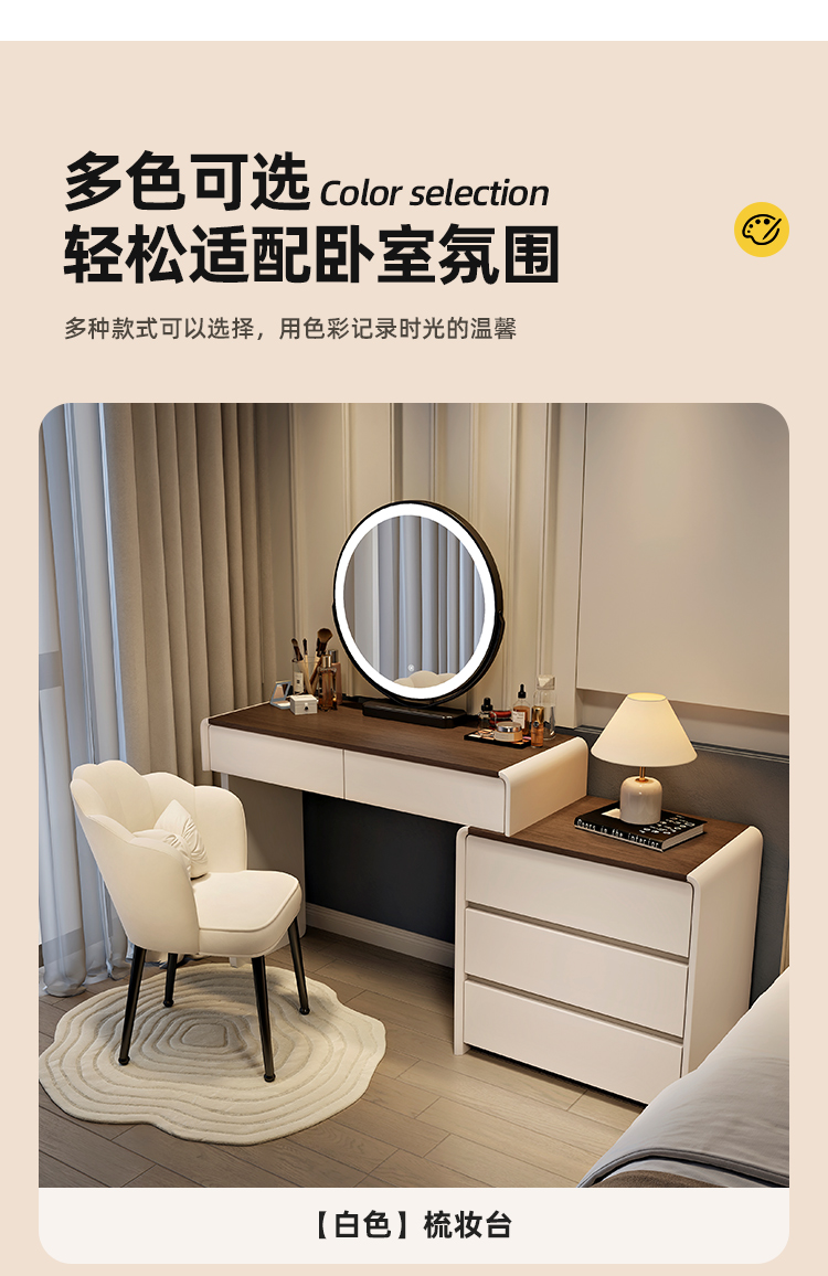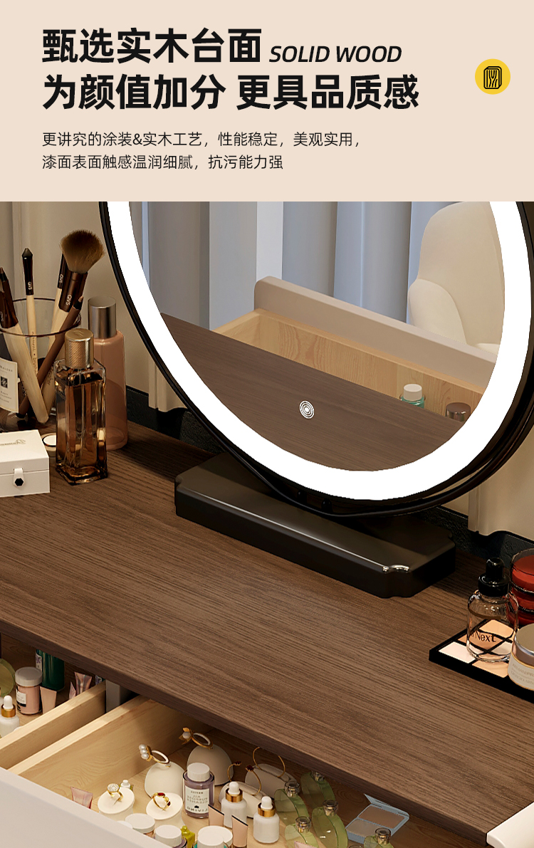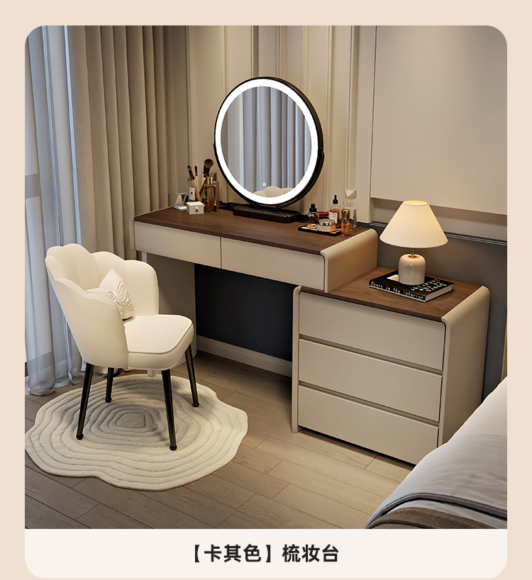 2025新款梳妆台奶油风卧室化妆桌轻奢全实木化妆桌斗柜一体