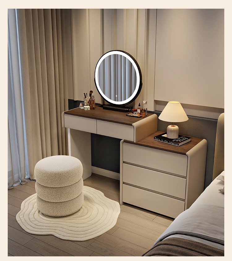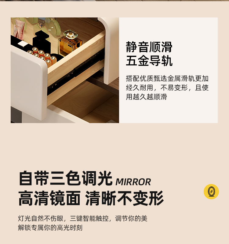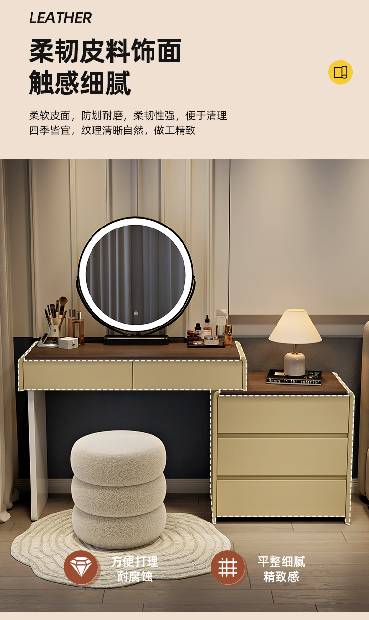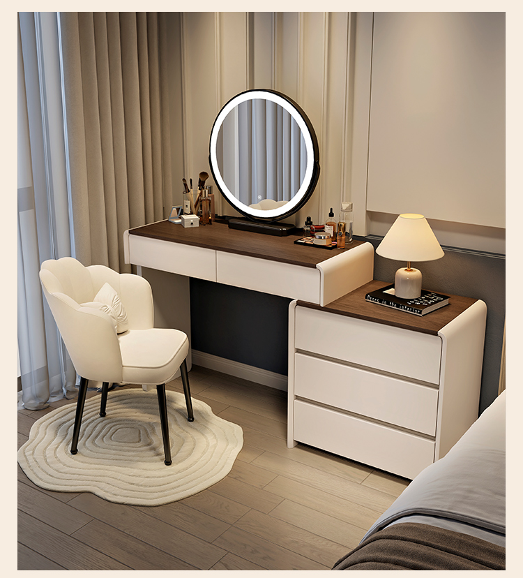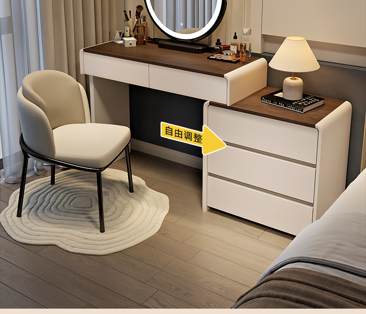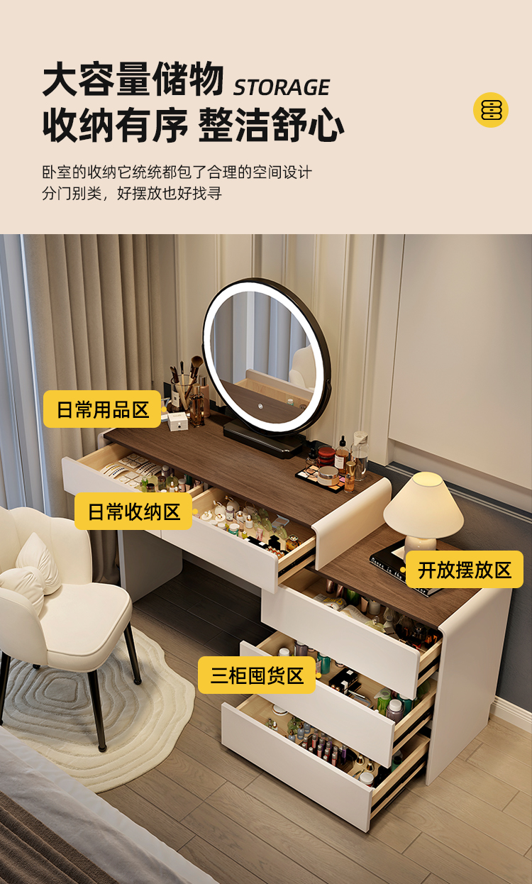 2025新款梳妆台奶油风卧室化妆桌轻奢全实木化妆桌斗柜一体