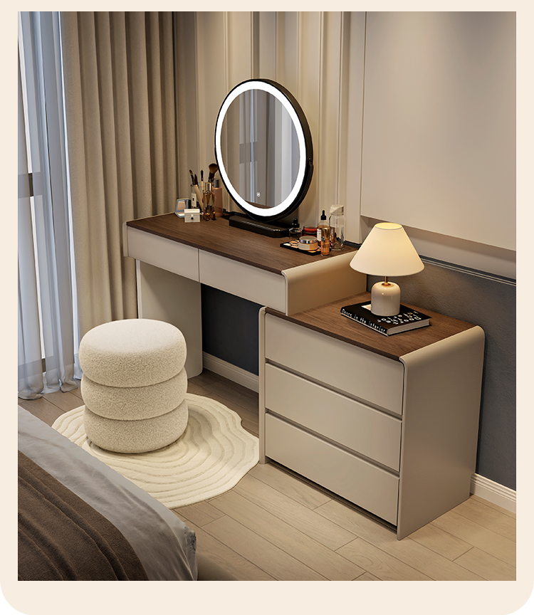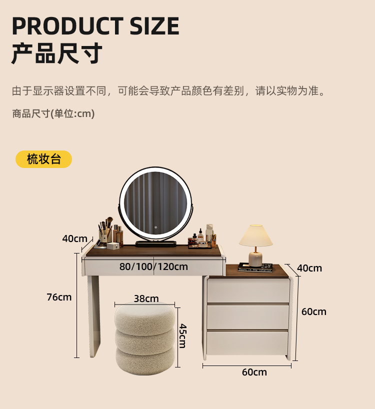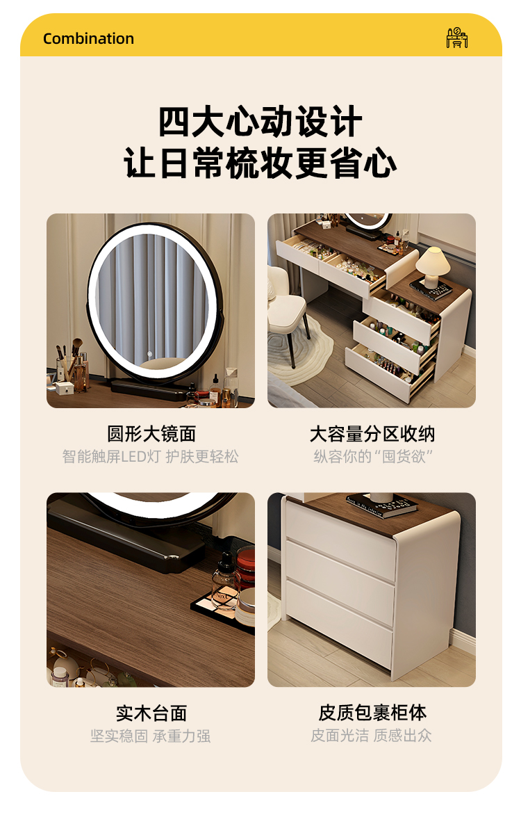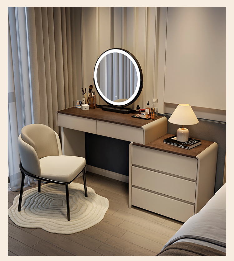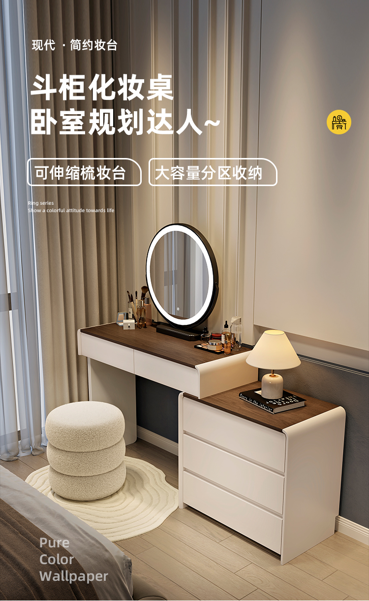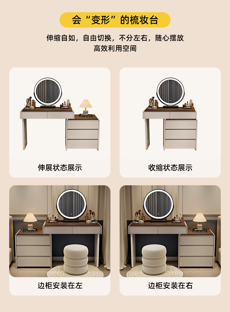 2025新款梳妆台奶油风卧室化妆桌轻奢全实木化妆桌斗柜一体