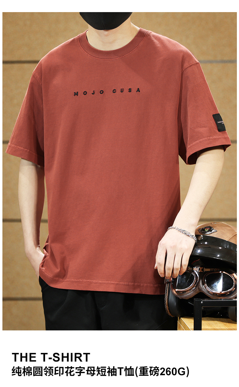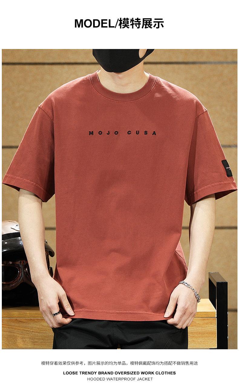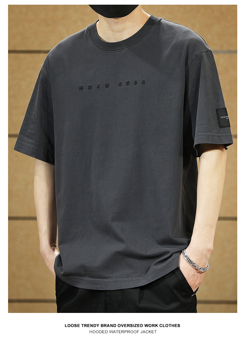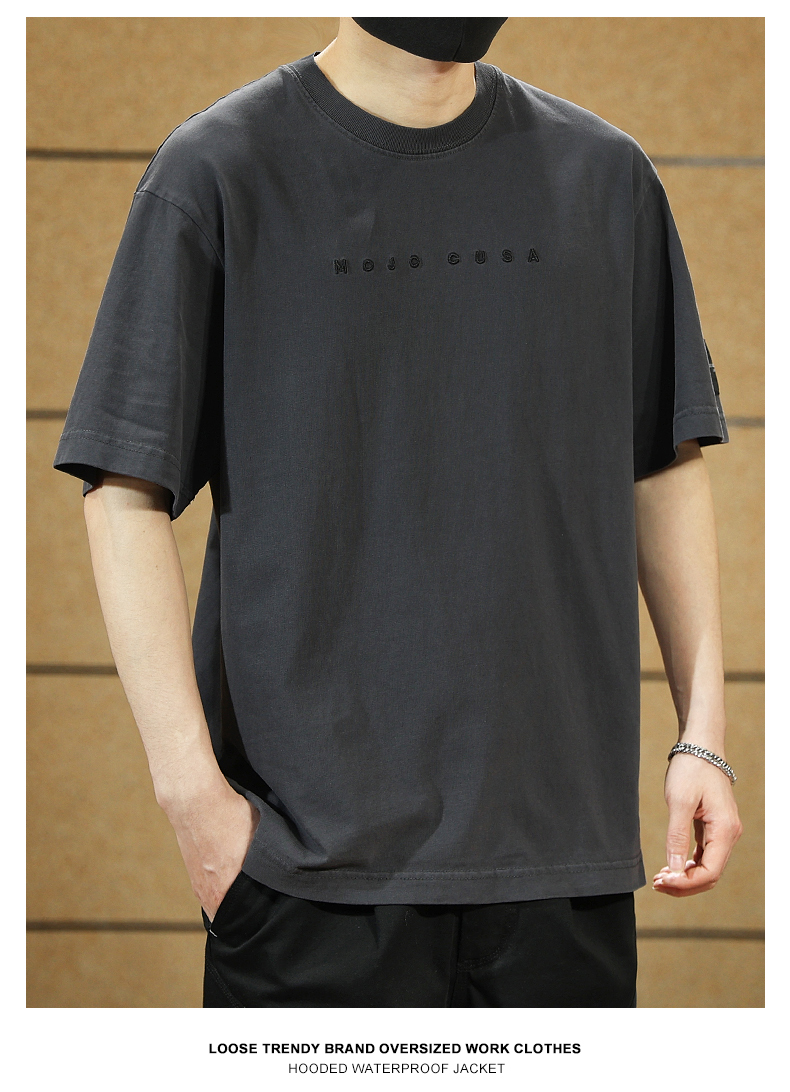 夏季260g重磅短袖t恤男潮牌高密刺绣印花T恤男士纯棉圆领宽松上衣