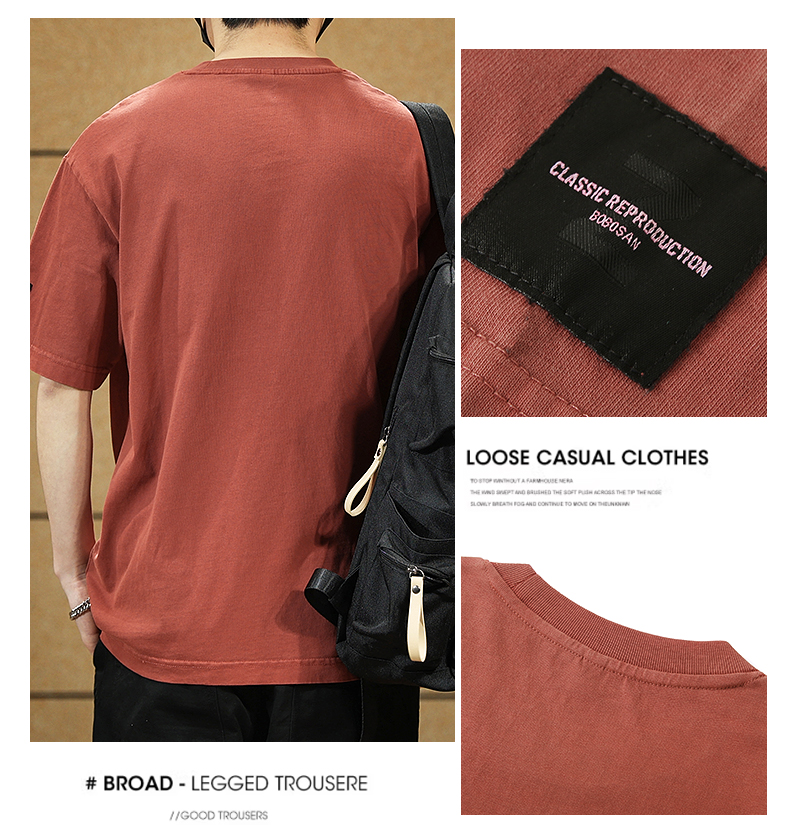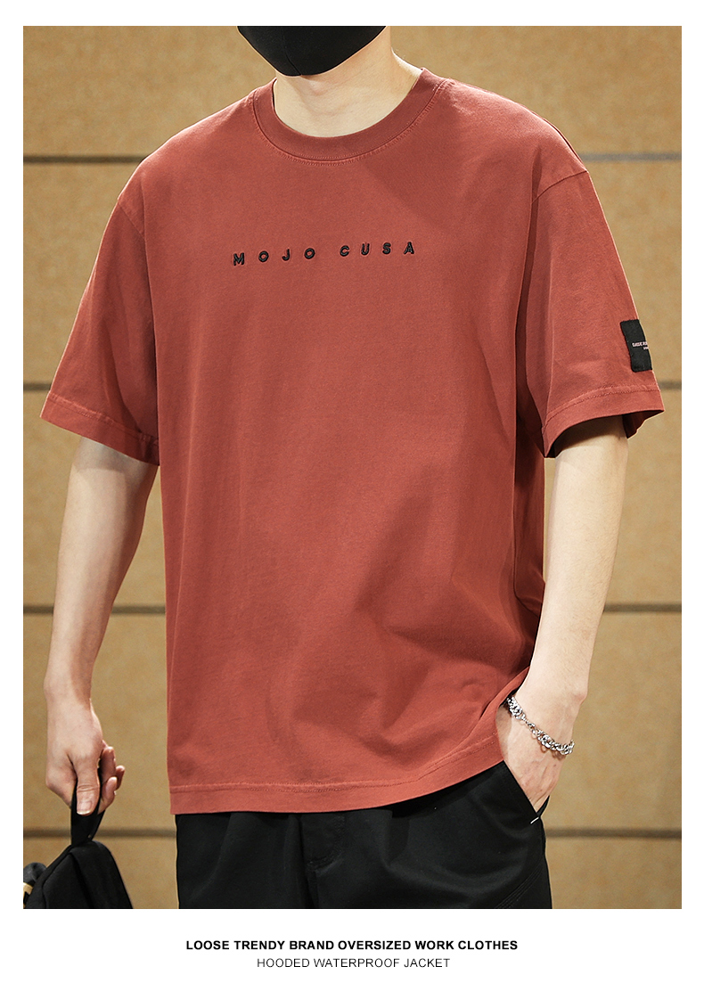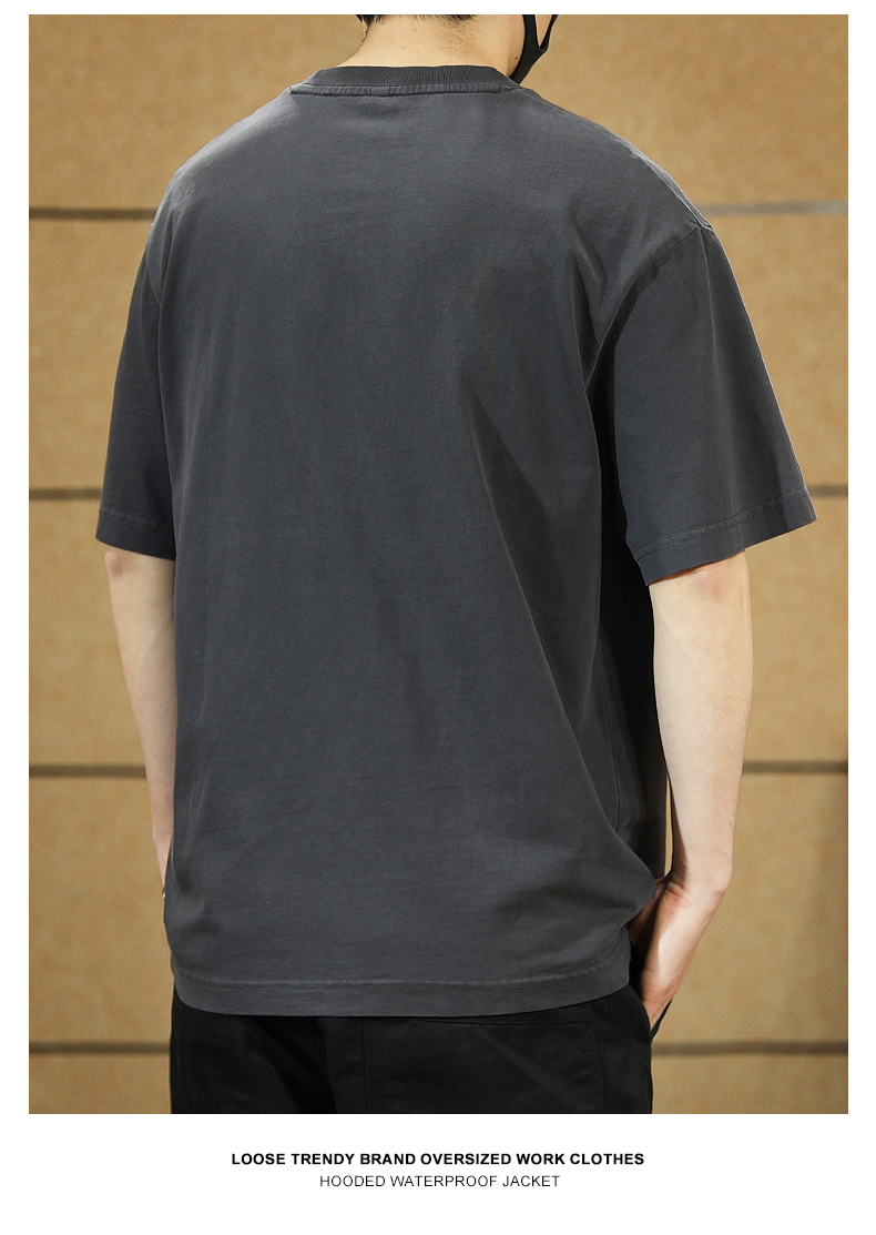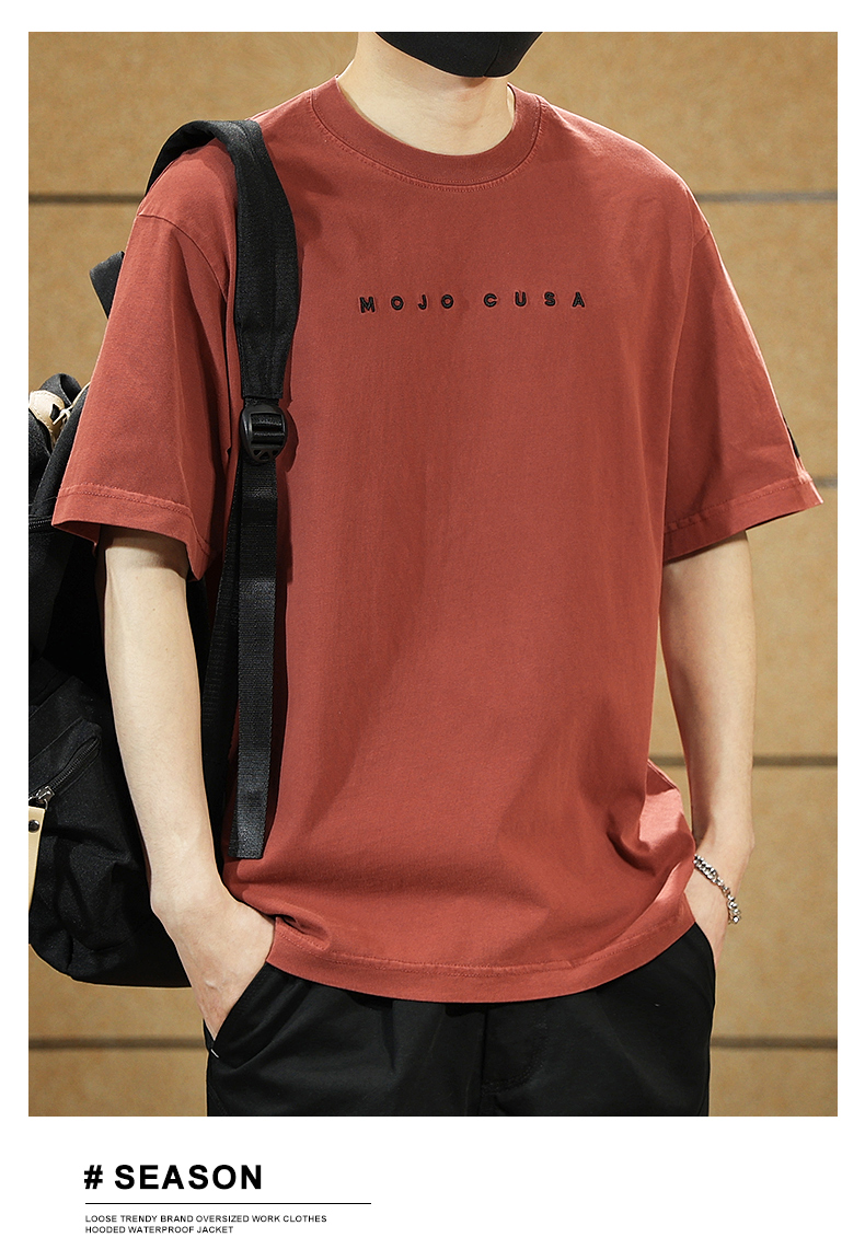 夏季260g重磅短袖t恤男潮牌高密刺绣印花T恤男士纯棉圆领宽松上衣