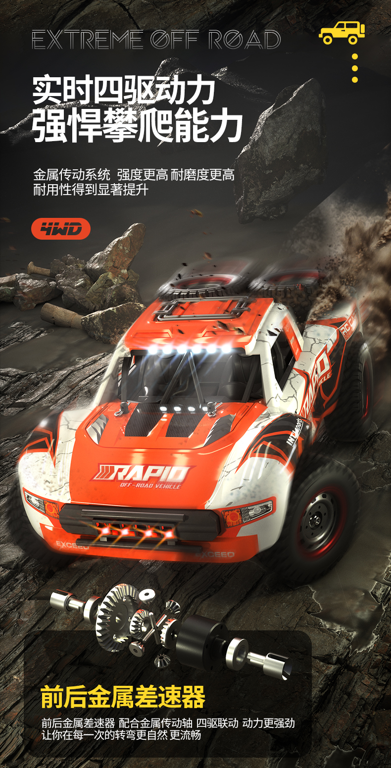 高速短卡rc遥控车专业拉力越野车攀爬四驱漂移成人无刷玩具汽车