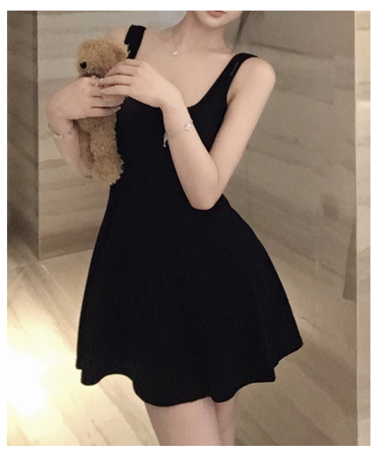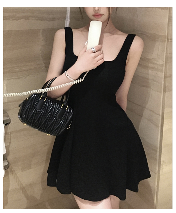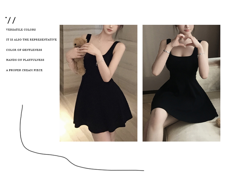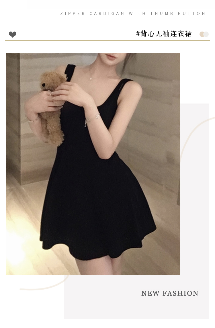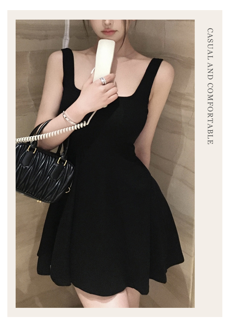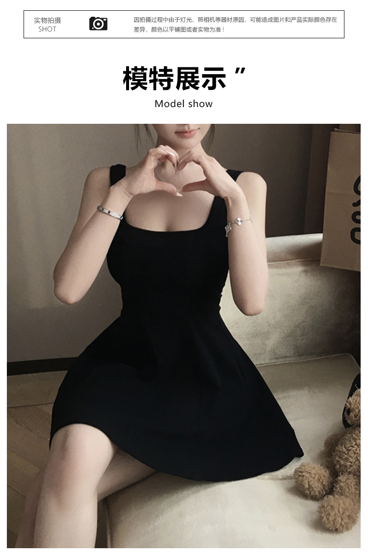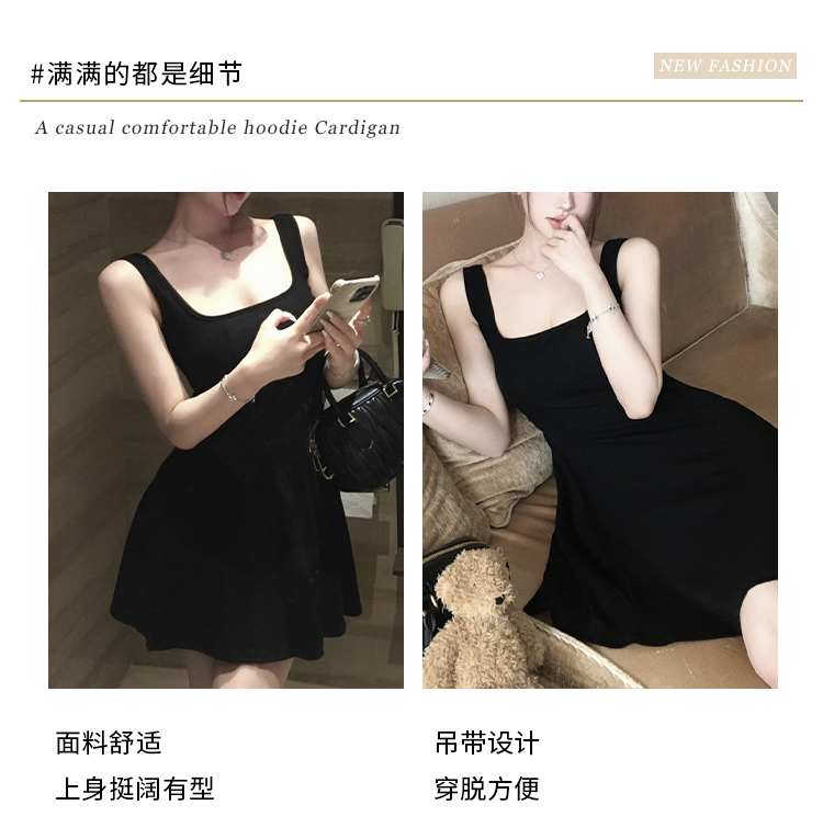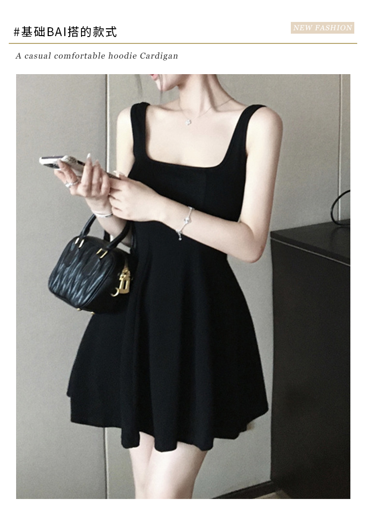 黑色吊带连衣裙女夏日绝美高级法式短裙子夏季赫本风小个子小黑裙