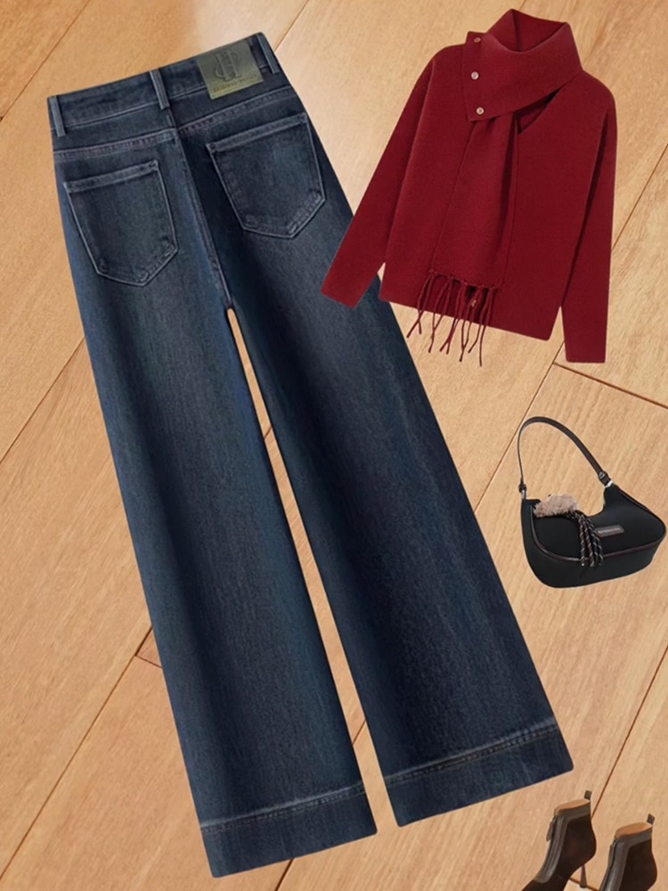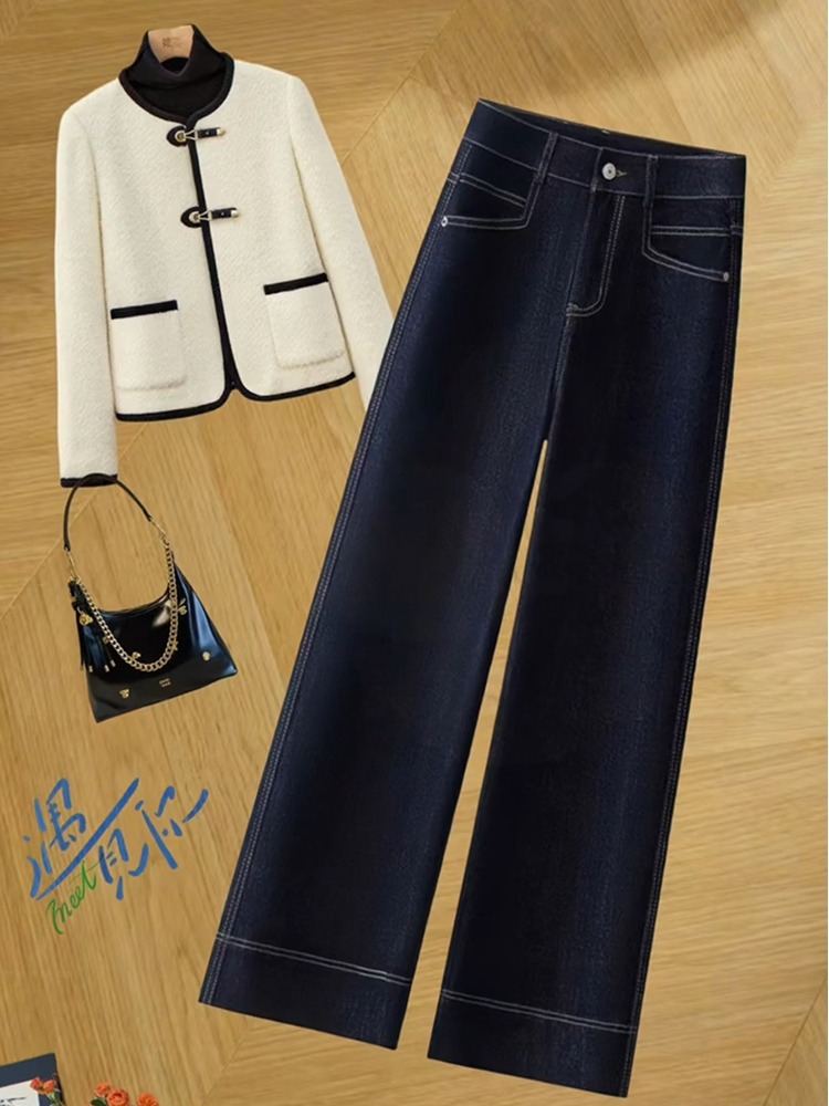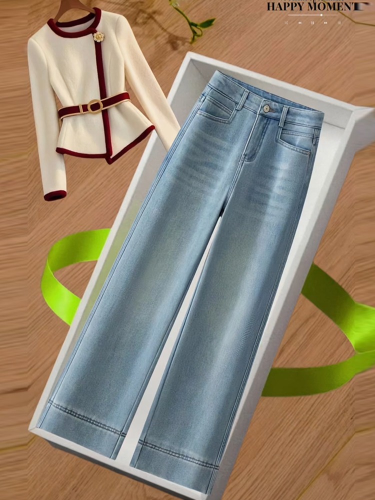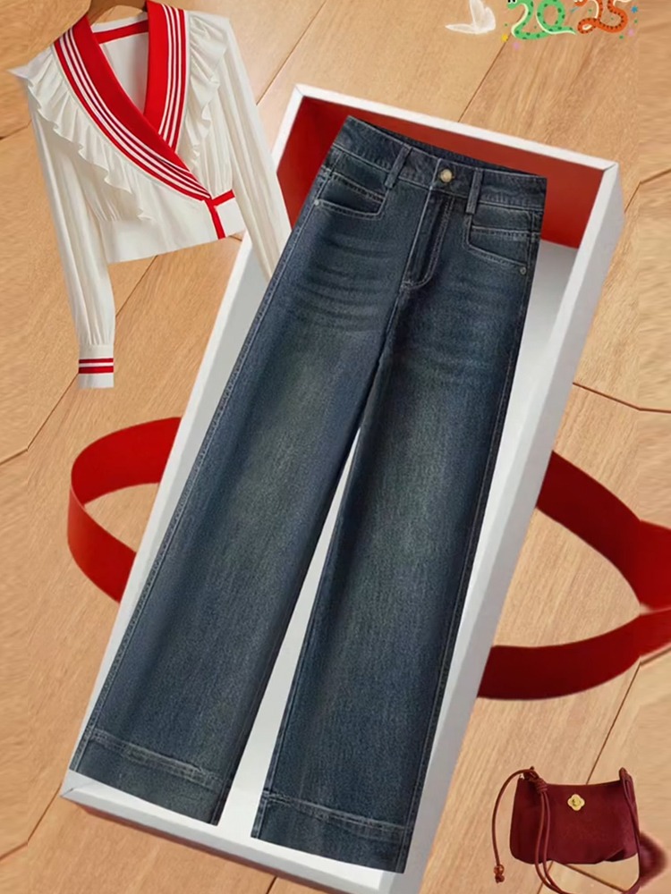 复古窄版阔腿牛仔裤女春秋2025新款高腰显瘦小个子垂感休闲直筒裤