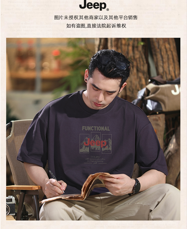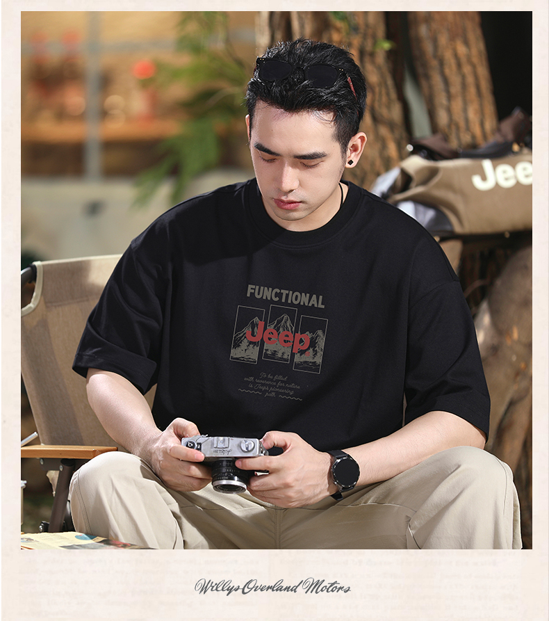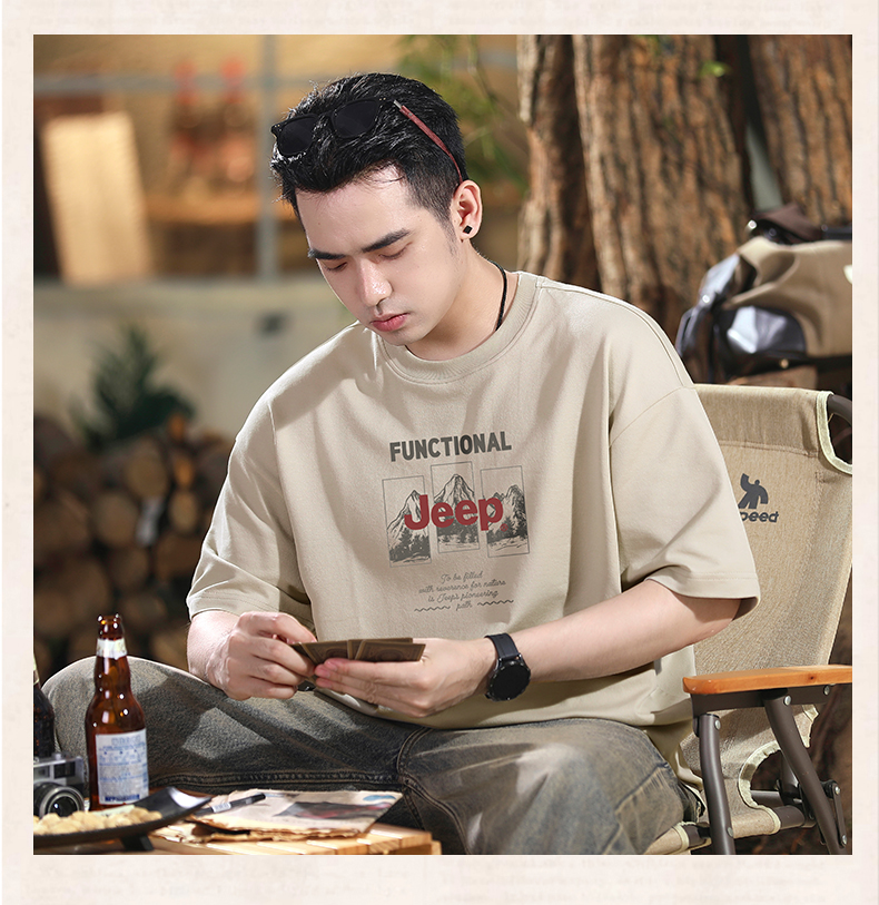 JEEP/吉普美式高街短袖体恤男生2025新款夏季痞帅潮牌印花t恤上衣