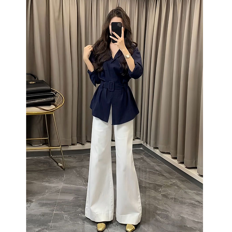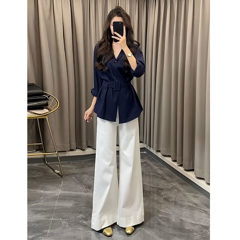 御姐轻奢时尚套装女2025秋季高级感收腰显瘦衬衣高腰阔腿裤两件套
