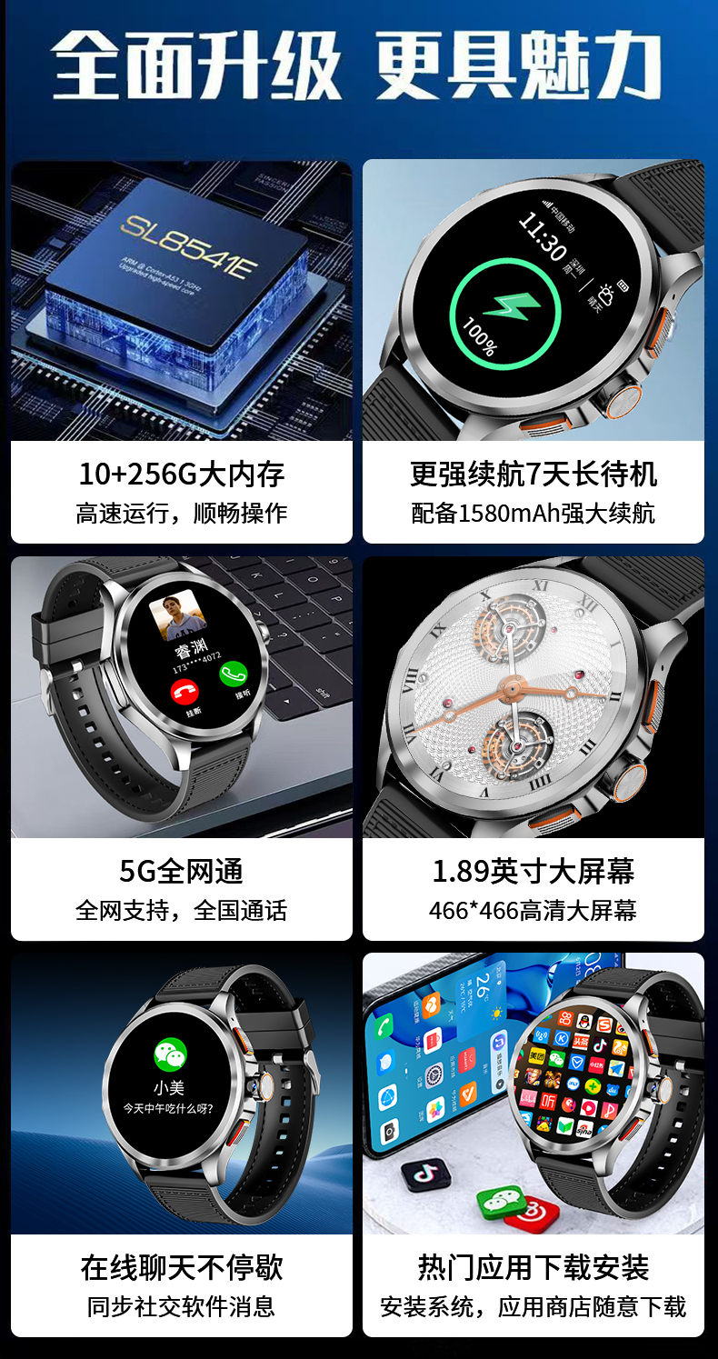 【官方旗舰·双系统】圆屏华强北WATCH GT5智能电话手表可插卡WiFi下载APP多功能NFC成人青少年初高中生专用