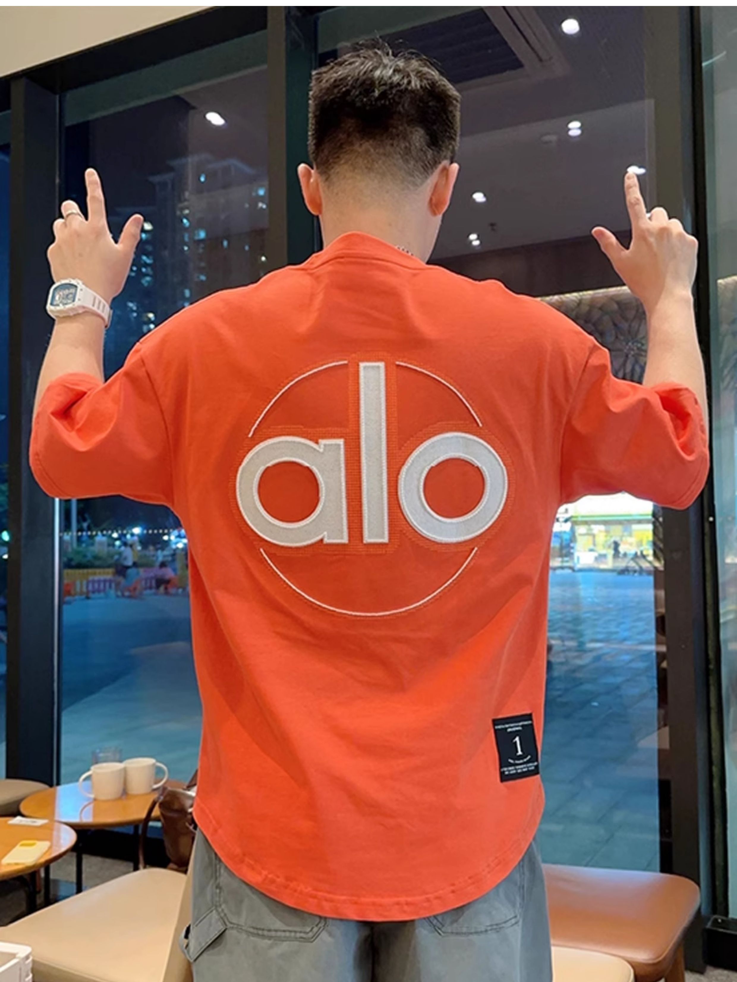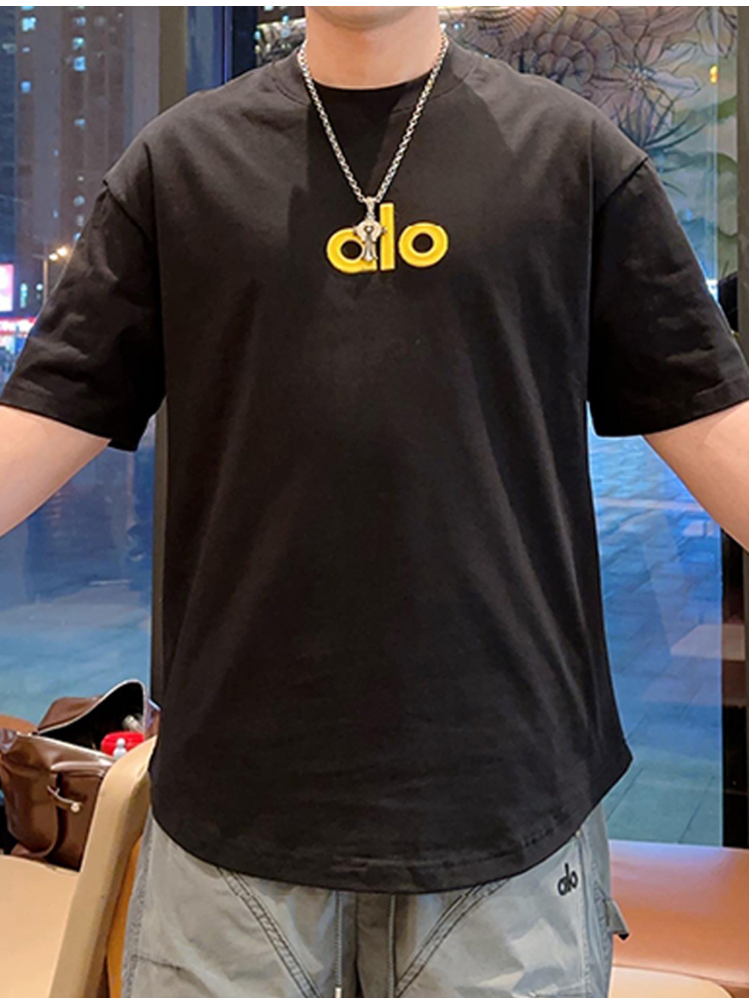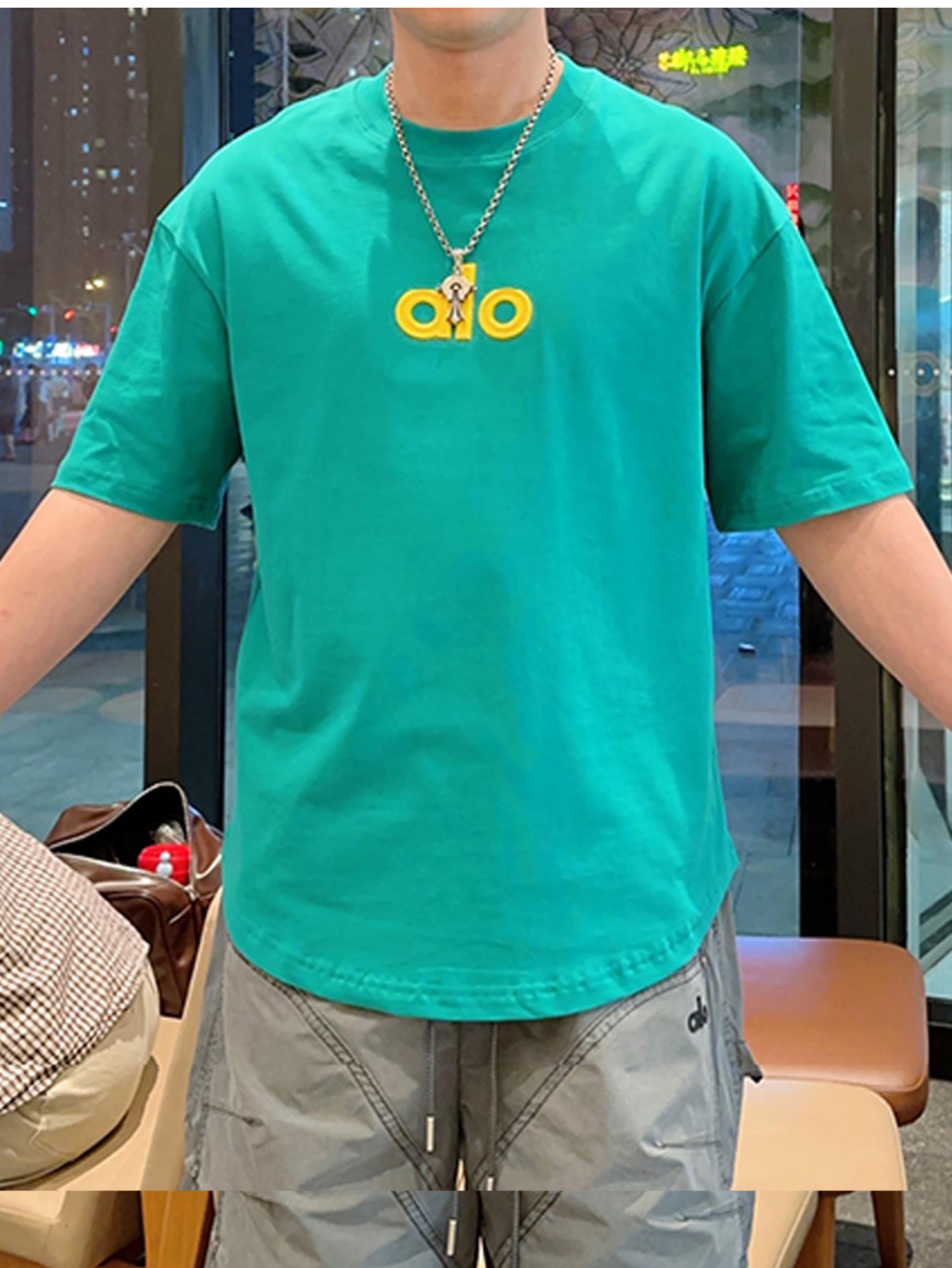 2025春夏新款圆领短袖男刺绣字母美式T恤男潮流时尚百搭上衣男款
