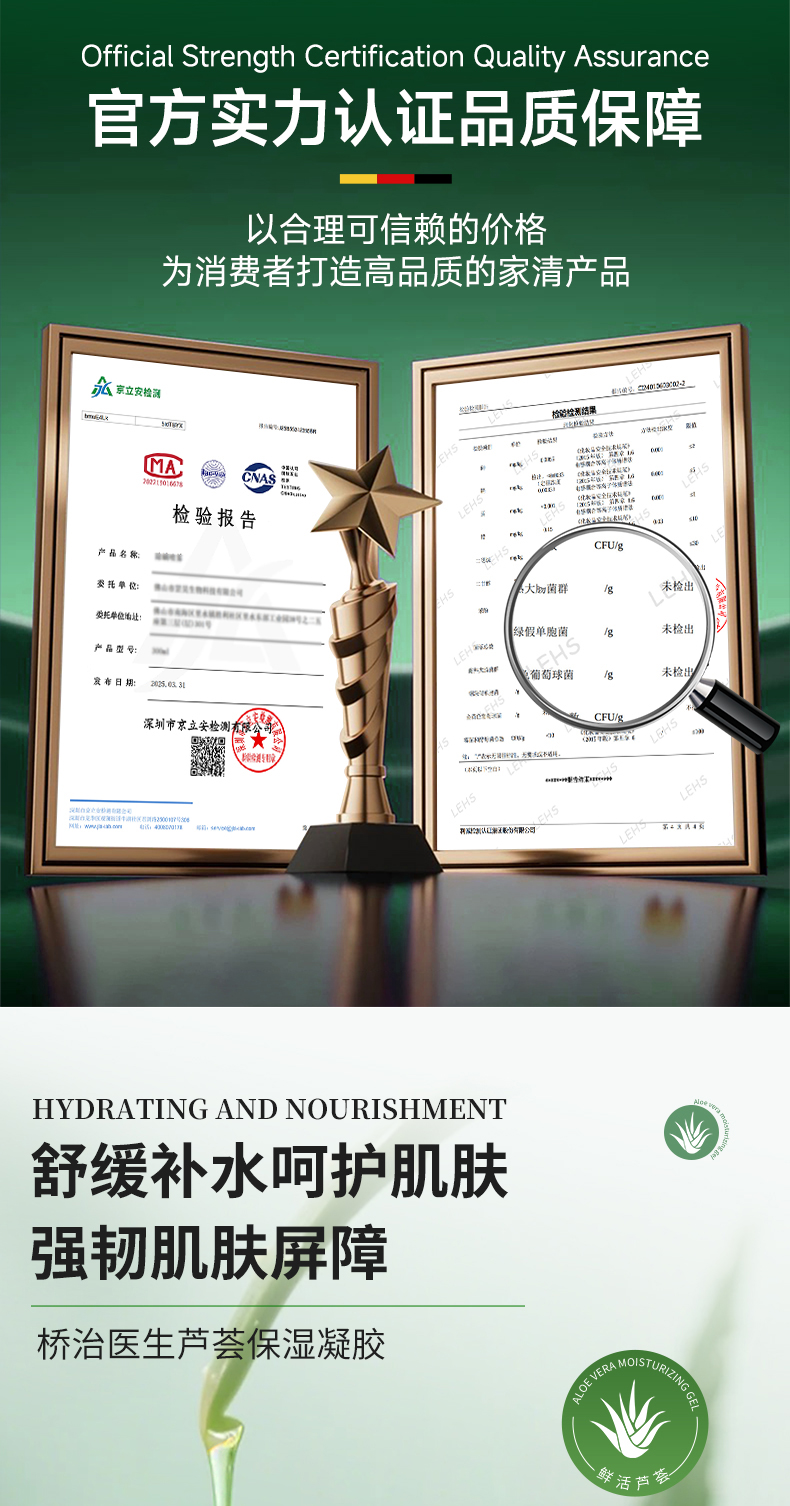 芦荟胶官方旗舰正品补水保湿祛痘印敷女男专用晒后修护凝胶A
