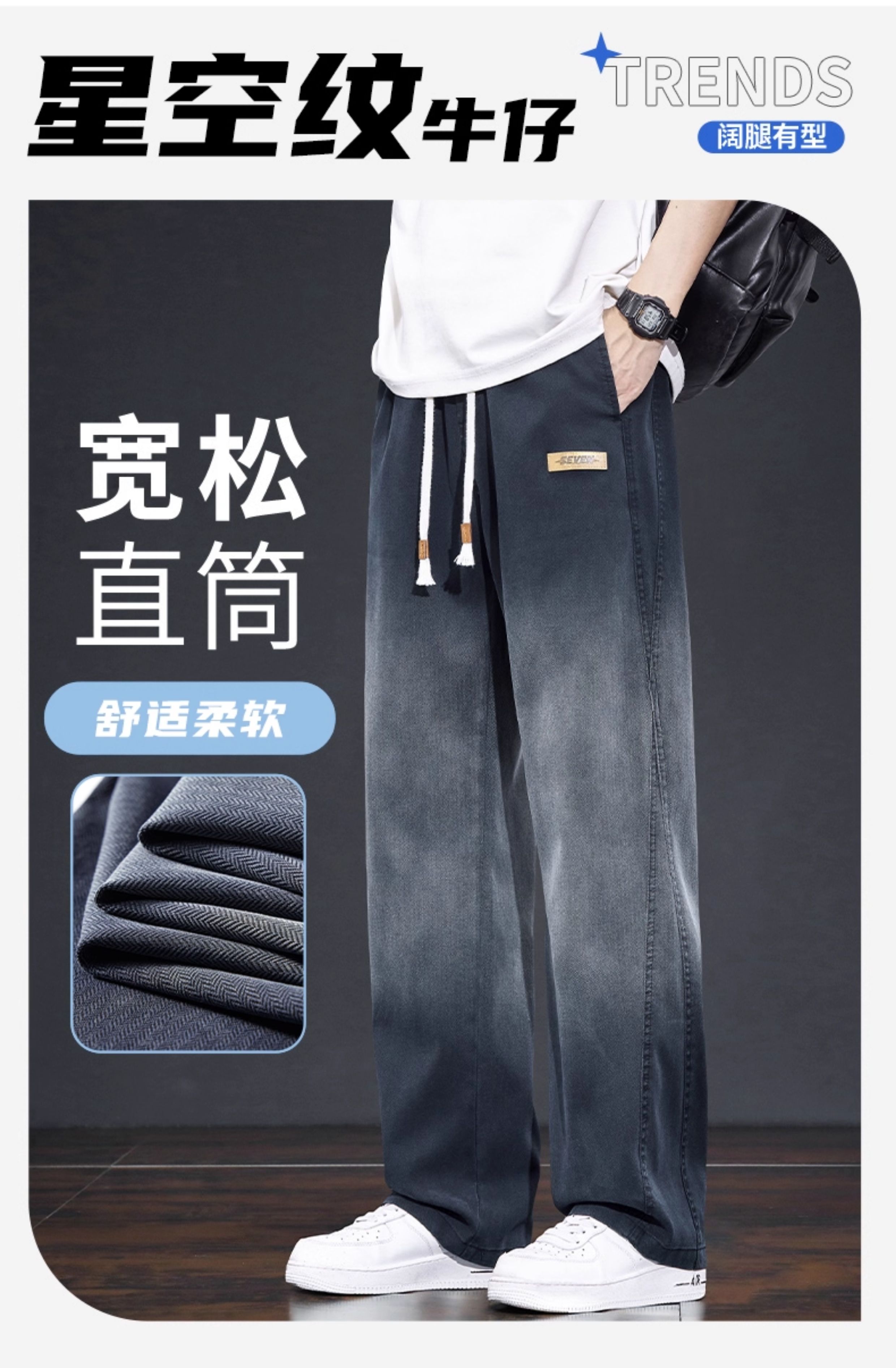 美式牛仔裤男2025秋季新款星空纹渐变直筒宽松潮牌高街休闲长裤子