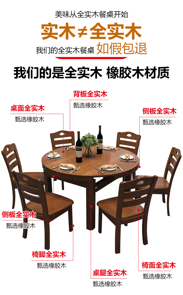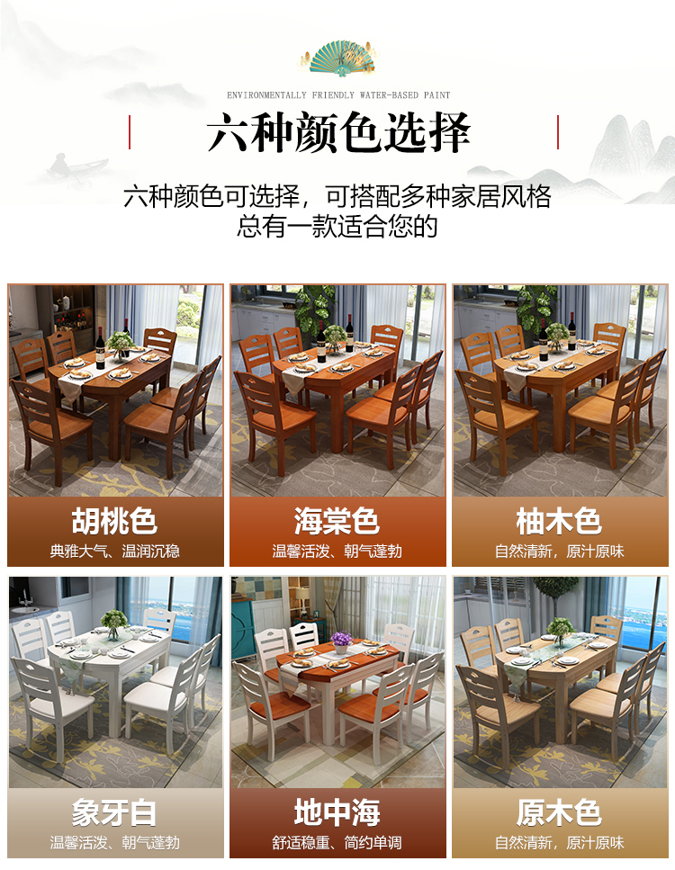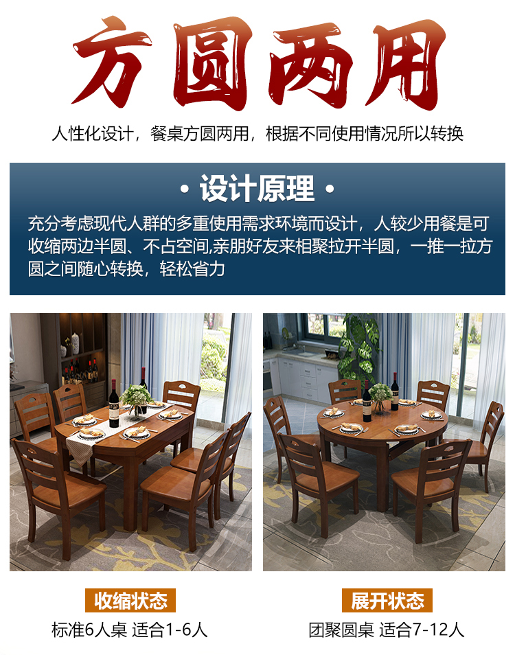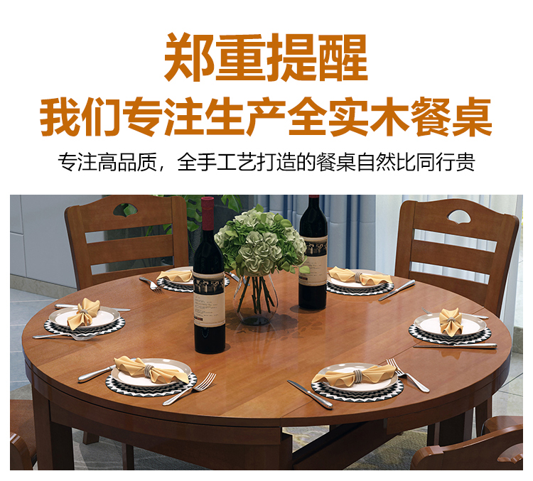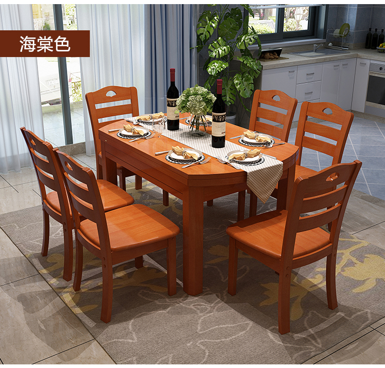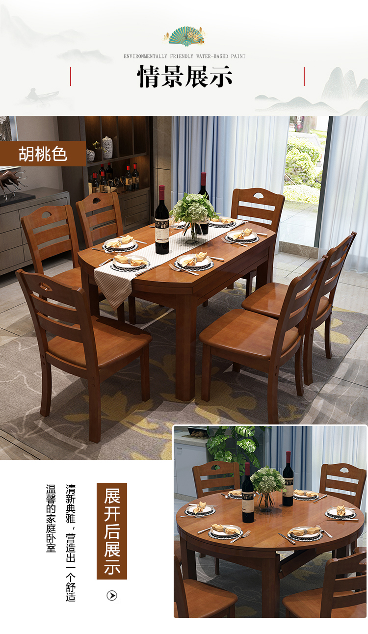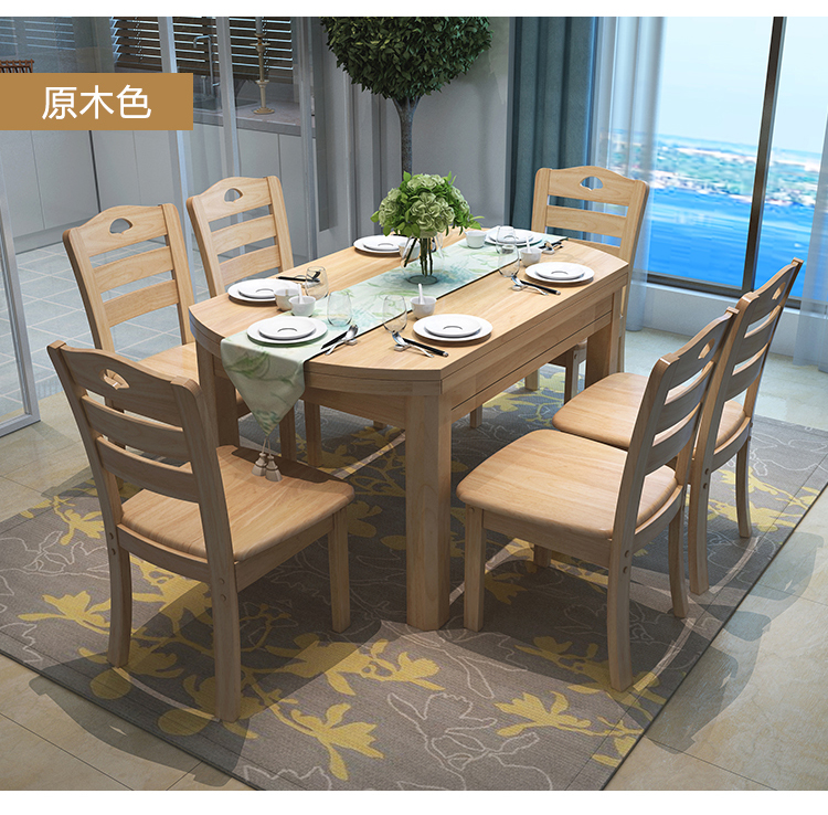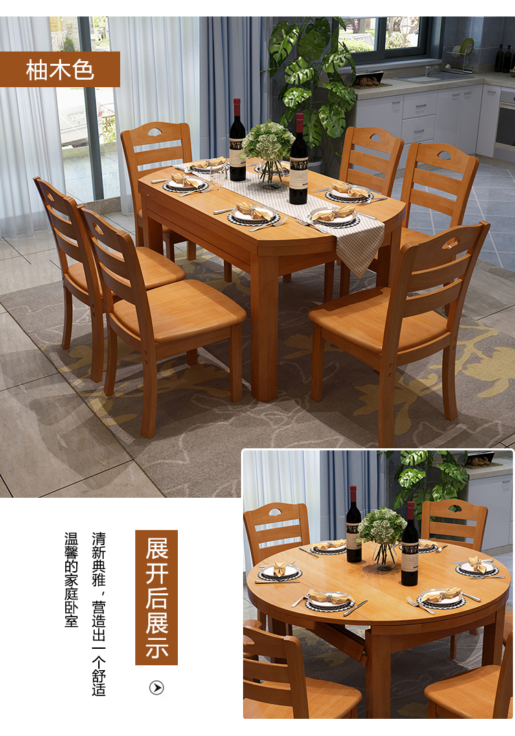 全实木餐桌椅组合家用可伸缩折叠桌饭桌方圆两用小户型可变圆桌子